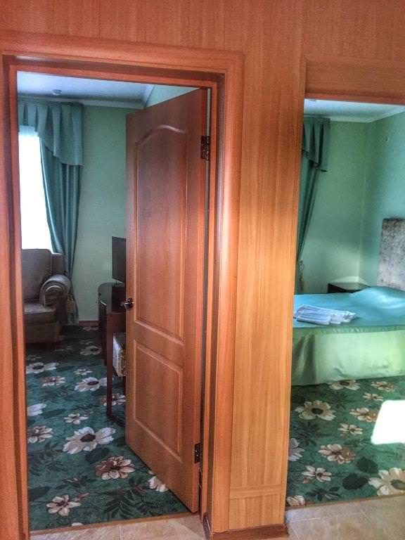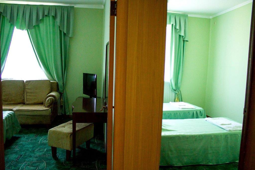 Двухкомнатный номер стандарт семейный общей площадью 49 кв.м. для размещения от 1 до 4х гостей. В номере: двухспальная кровать, две односпальные кровати, диван, телевизор, сейф, кондиционер, мини-холодильник, туалетный столик, собственная ванная комната, туалетно-косметические принадлежности.