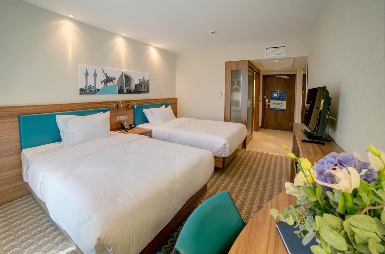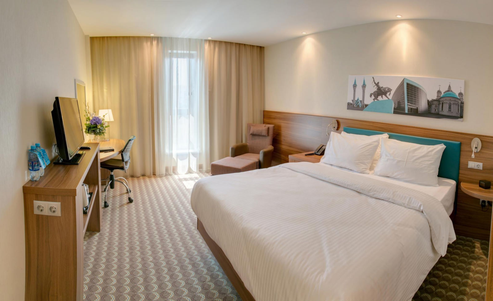 Hampton by Hilton Ufa - это всемирно известный бренд сети отелей Hilton. Тридцать лет работы на рынке и более 2300 отелей по всему миру сделали Hampton by Hilton абсолютным лидером гостиничного бизнеса. Отель Hampton by Hilton расположен в центре Уфы, в 5 минутах езды от спортивной арены «Уфа-Арена». К услугам гостей фитнес-центр, круглосуточная стойка регистрации, лаундж, бесплатный Wi-Fi и бесплатная частная парковка. Номера оснащены кондиционером, электрическим чайником, гладильными принадлежностями и телевизором с плоским экраном и спутниковыми каналами. В ванной комнате предоставляется фен. Гости могут поужинать в ресторане отеля. Кроме этого, здесь работает бар и снэк-бар. В числе прочих удобств экскурсионное бюро и услуги консьержа. Железнодорожный вокзал Уфы расположен в 3,5 км, а международный аэропорт Уфы — в 37 км. Гостям отеля предоставляется бесплатный доступ к беспроводному интернету и бесплатной парковки, в стоимость проживания включен завтрак. Бизнес услуги отеля представлены конференц-залом вместимостью 55 человек с современным оборудованием. Гостям, которые ведут спортивный образ жизни, не придется отказываться от своих привычек – в отеле есть тренажерный зал. Номера отеля оформлены в современном стиле, оборудованы качественной мебелью и большими LED-телевизорами. Из окон номеров открывается отличный вид на город.