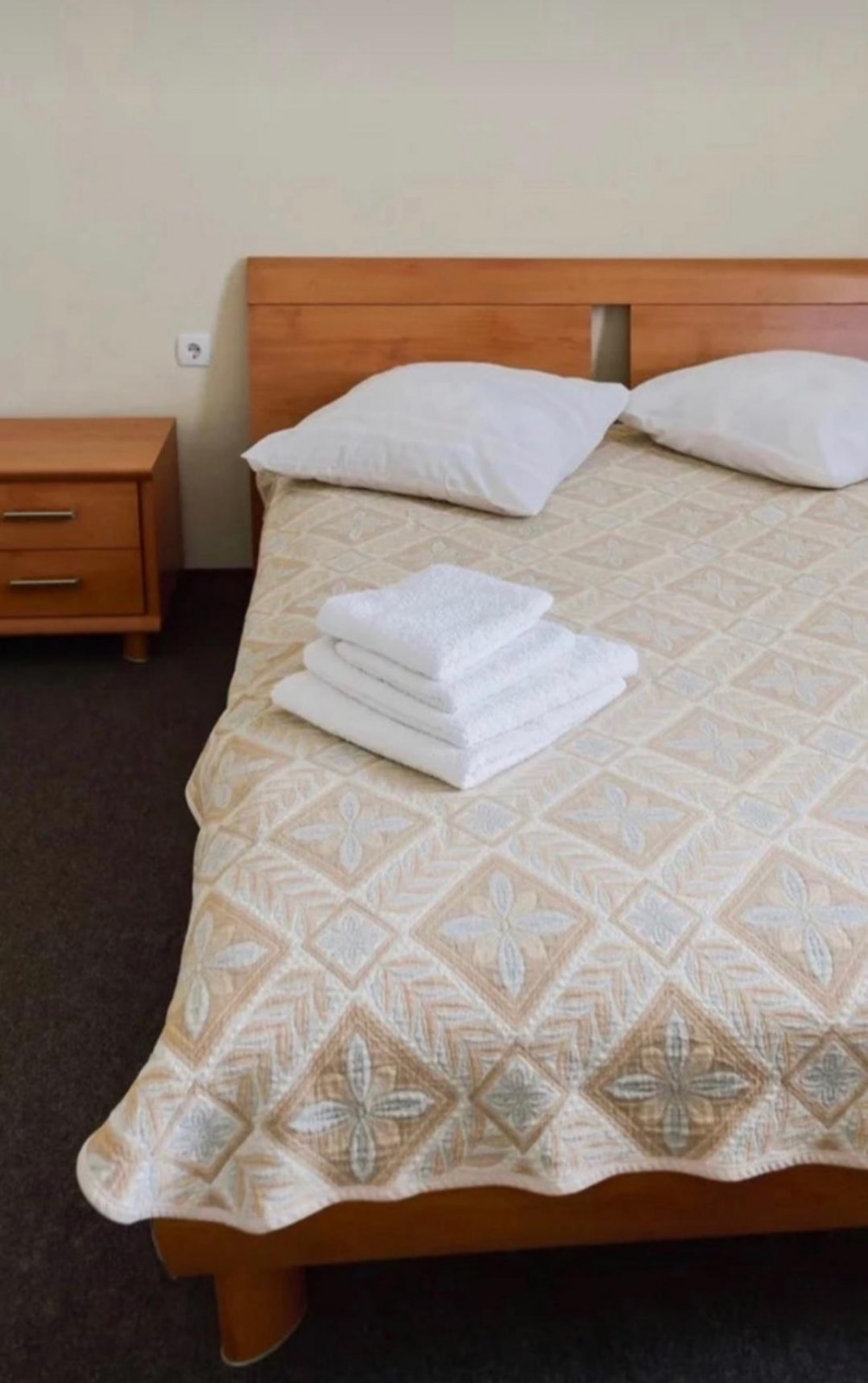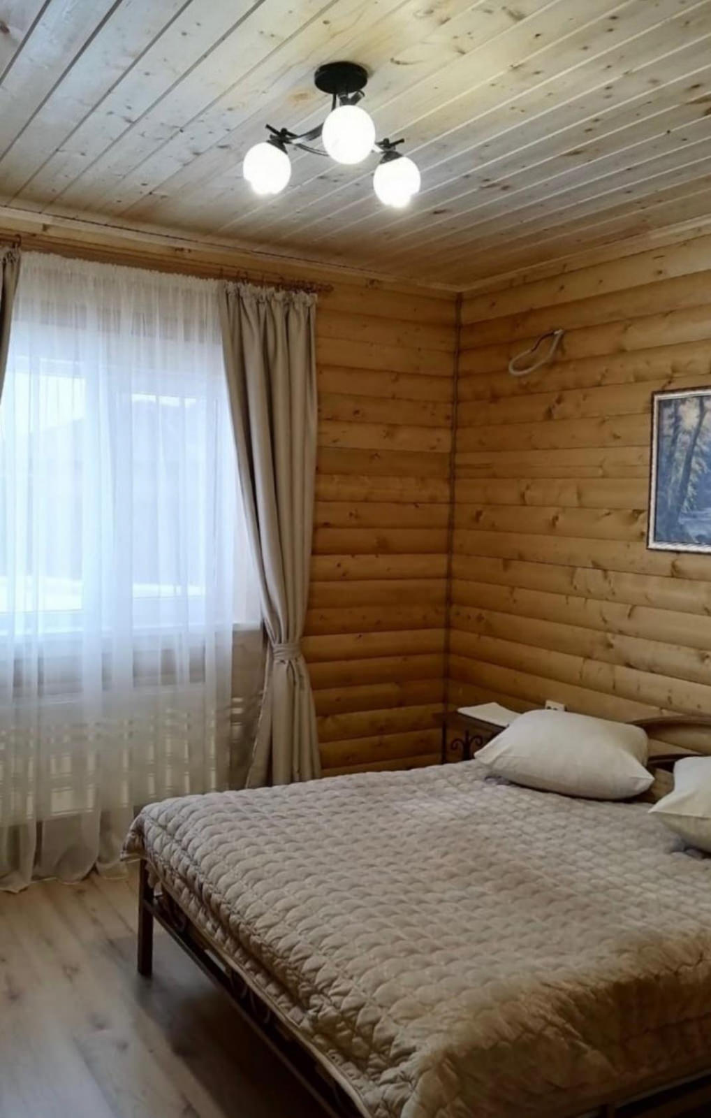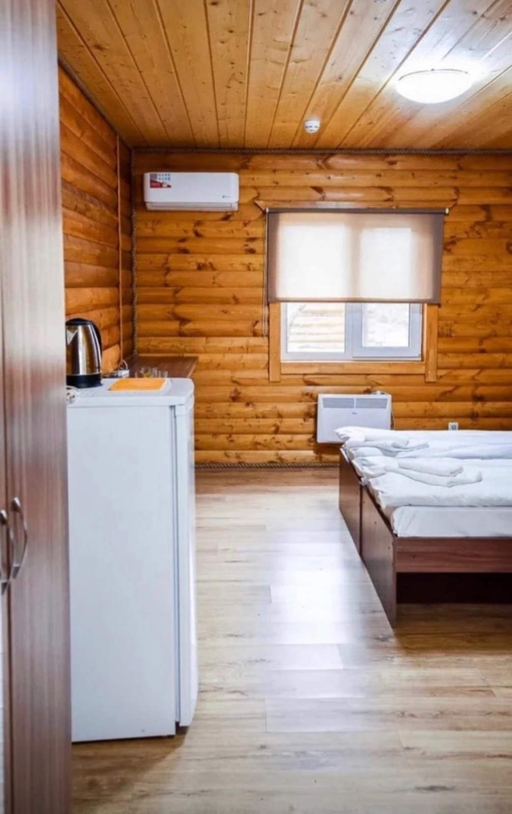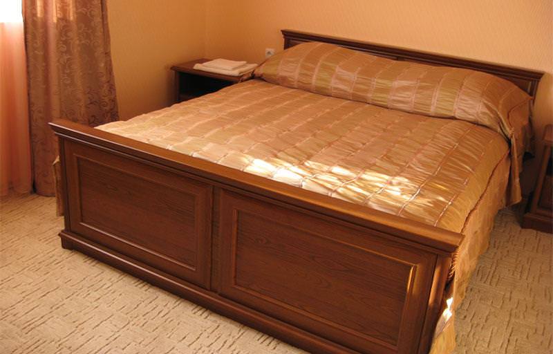 Стандартный двухместный однокомнатный номер-расположен в отдельном доме из сруба с выходом на улицу. В номере: двуспальная кровать, шкаф, две прикроватные тумбочки, журнальный столик, телевизор, холодильник, ванная комната и кондиционер.