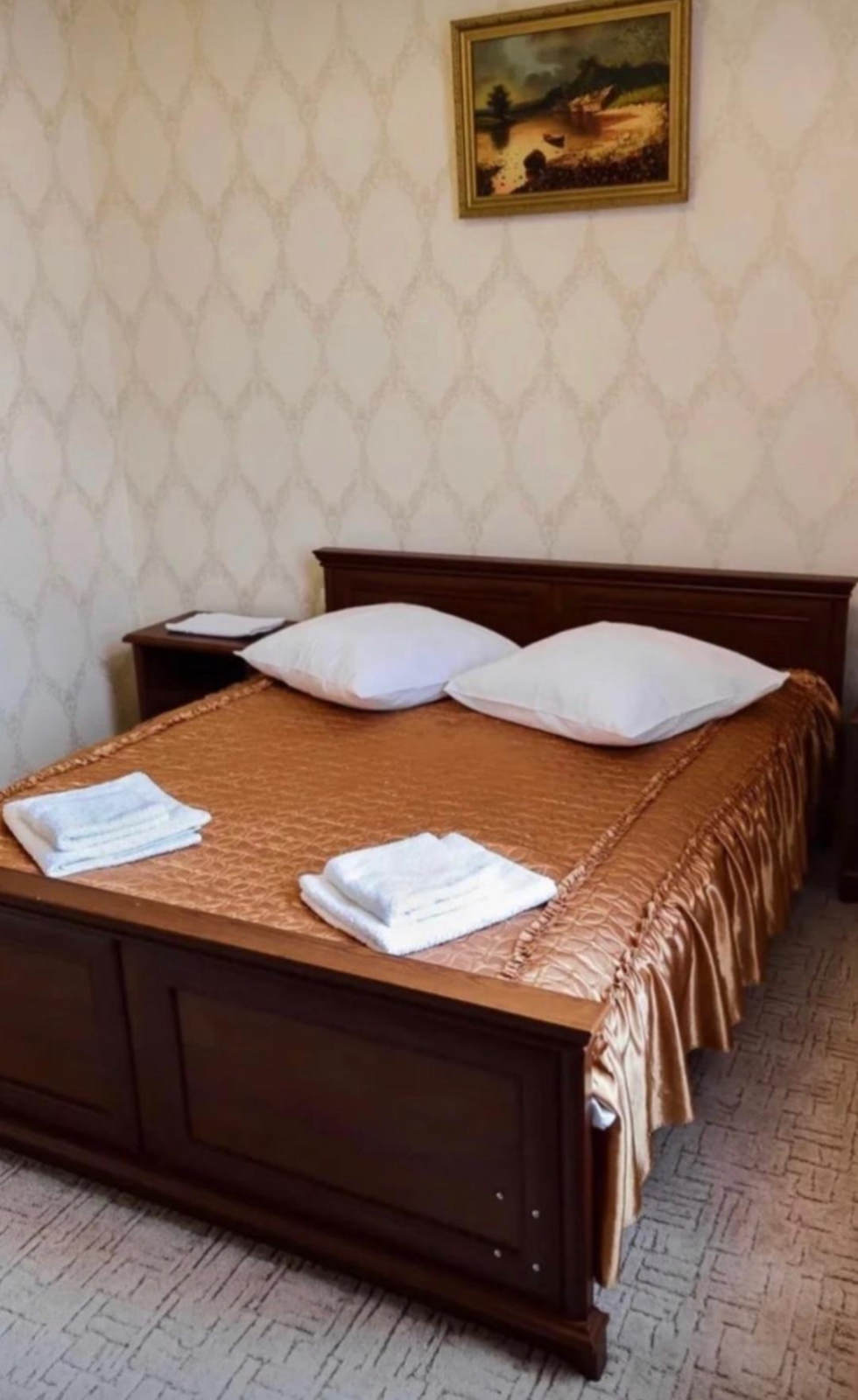 Номер расположен в основном корпусе на втором этаже. Стандартный двухместный однокомнатный номер. В номере: двуспальная кровать, шкаф, две прикроватные тумбочки, журнальный столик, телевизор, холодильник, центральная система отопления и кондиционирования, ванная комната.