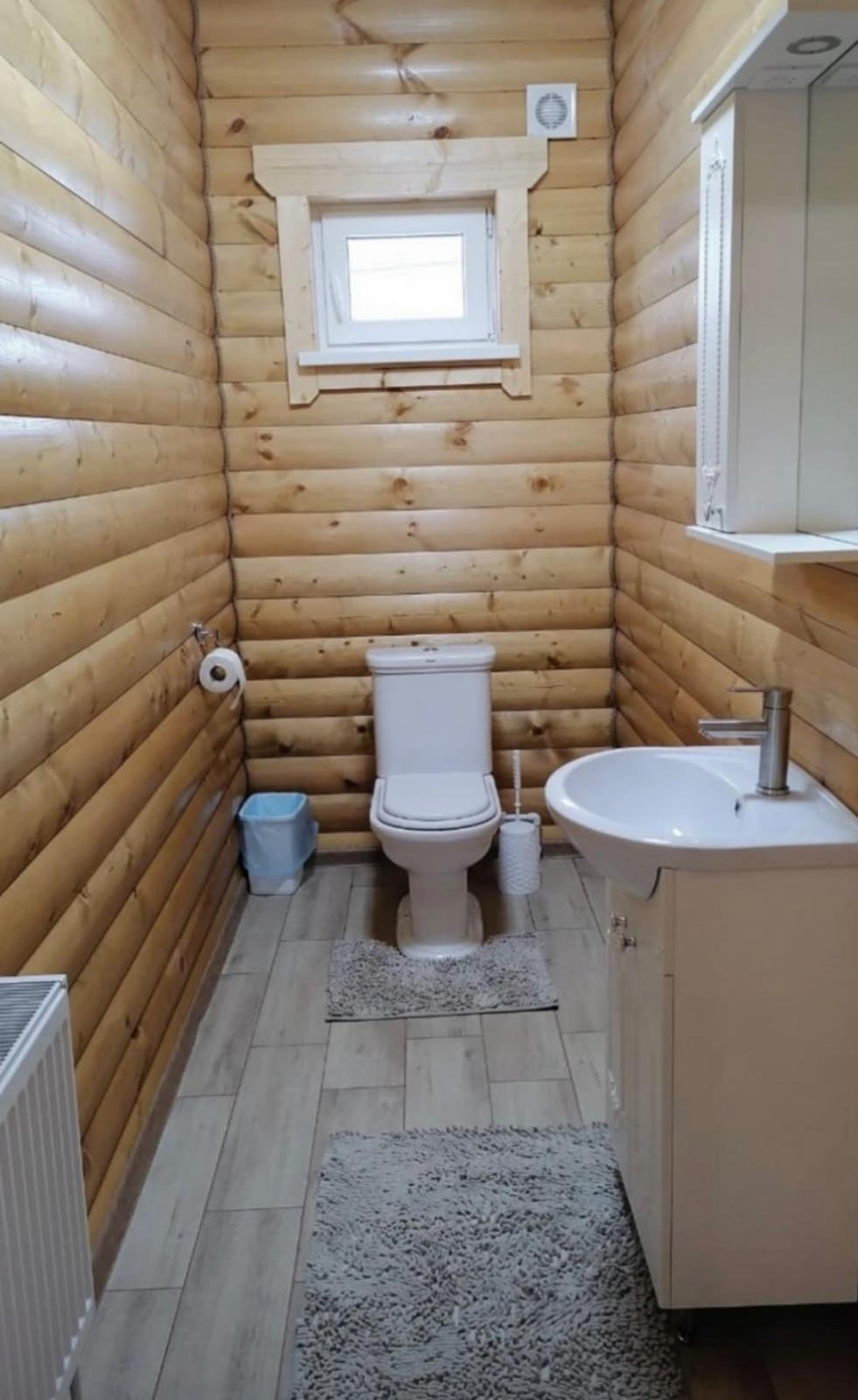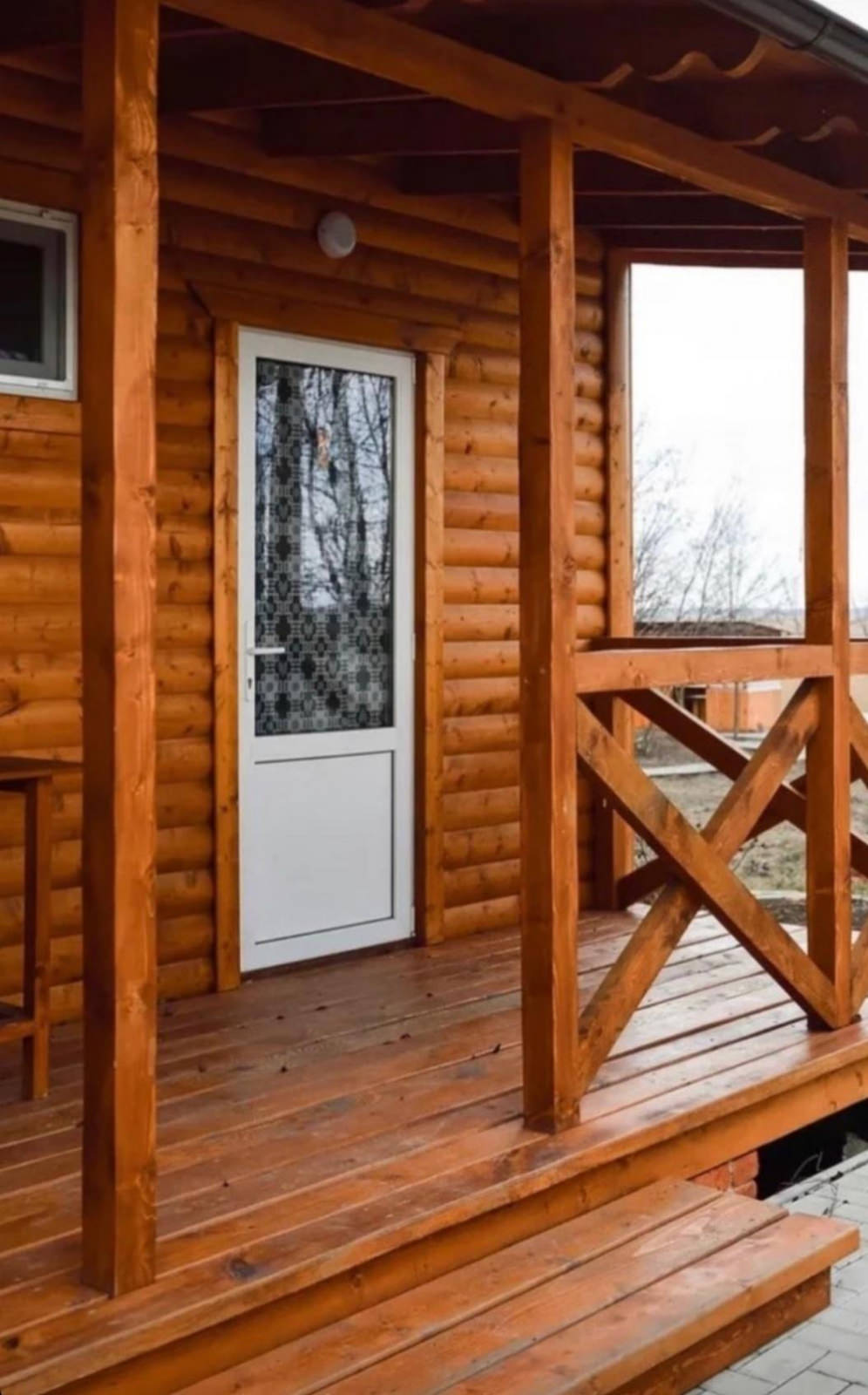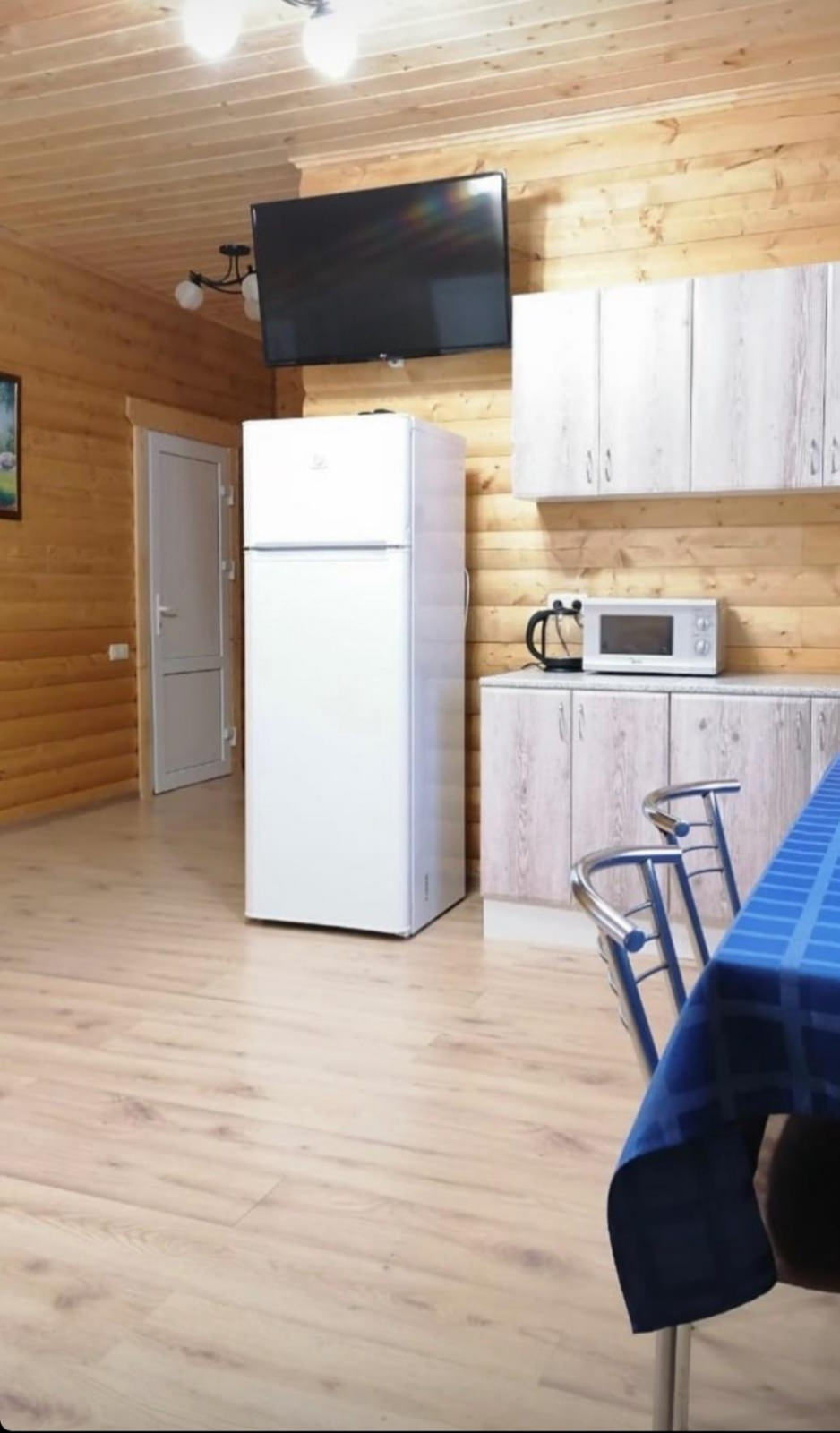 Одноэтажный дом из сруба с небольшой террасой вместимостью до 8 человек. Состоит из 3 спален, кухни и двух санузлов. Дом оборудован удобной кухней с холодильником, микроволновой печью и чайником.