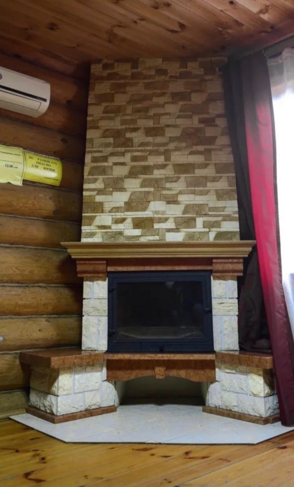 В доме есть гостиная, две спальни, два санузла, кухня, камин, сплит-системы. В гостиной — диван, телевизор, стол. На втором этаже расположены спальни. В кухне - необходимая посуда для самостоятельного приготовления пищи и холодильник.