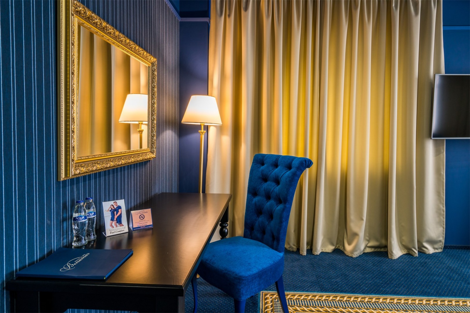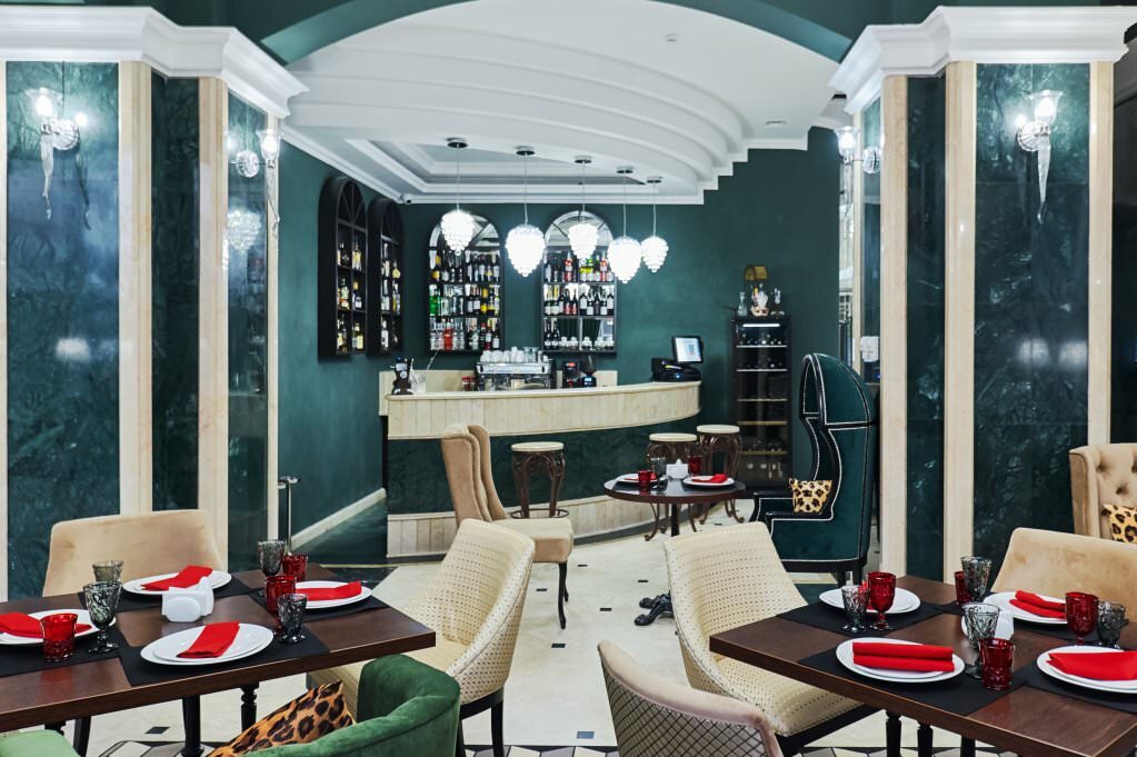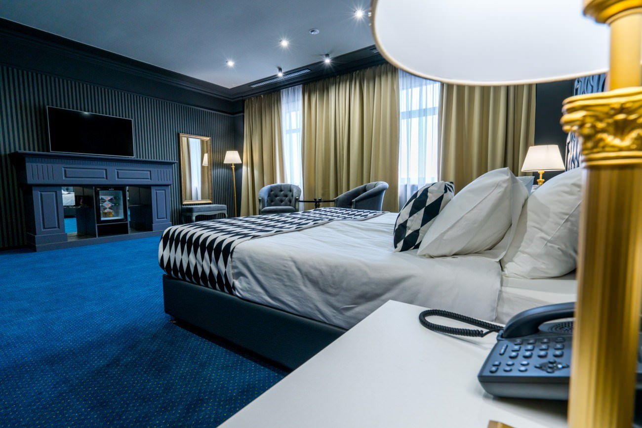 Интерьер гостиницы, выполнен в неоклассическом стиле с элементами авангарда, сочетает в себе элегантность с ярким акцентом для Вашего идеального комфорта.