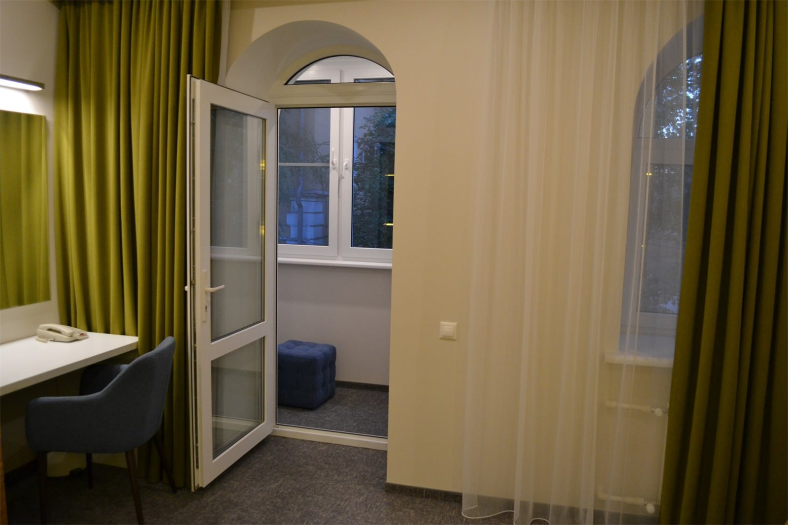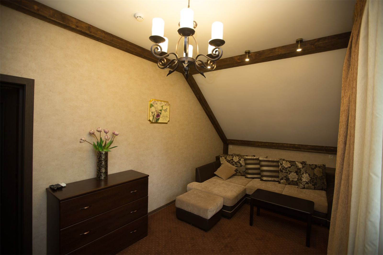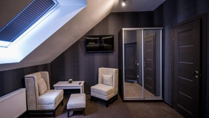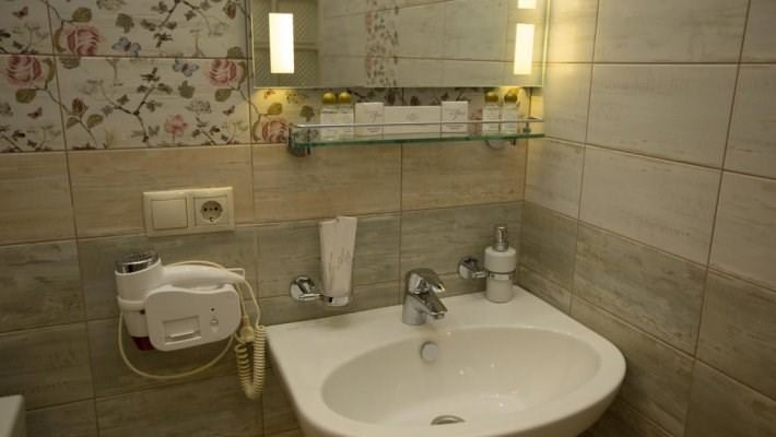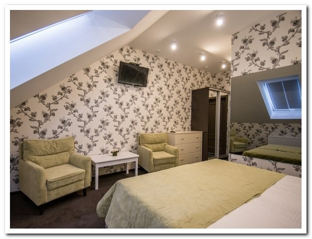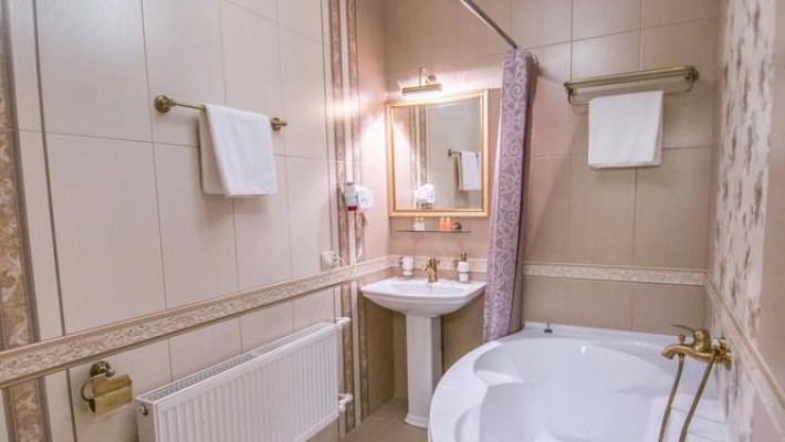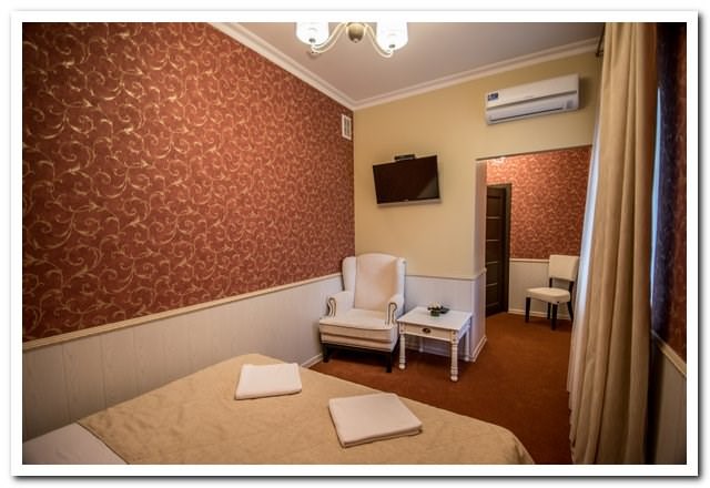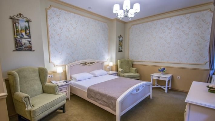 Люкс в стиле Прованс. В числе прочих удобств — телевизор с плоским экраном; собственная ванная комната укомплектована тапочками и туалетно-косметическими принадлежностями.