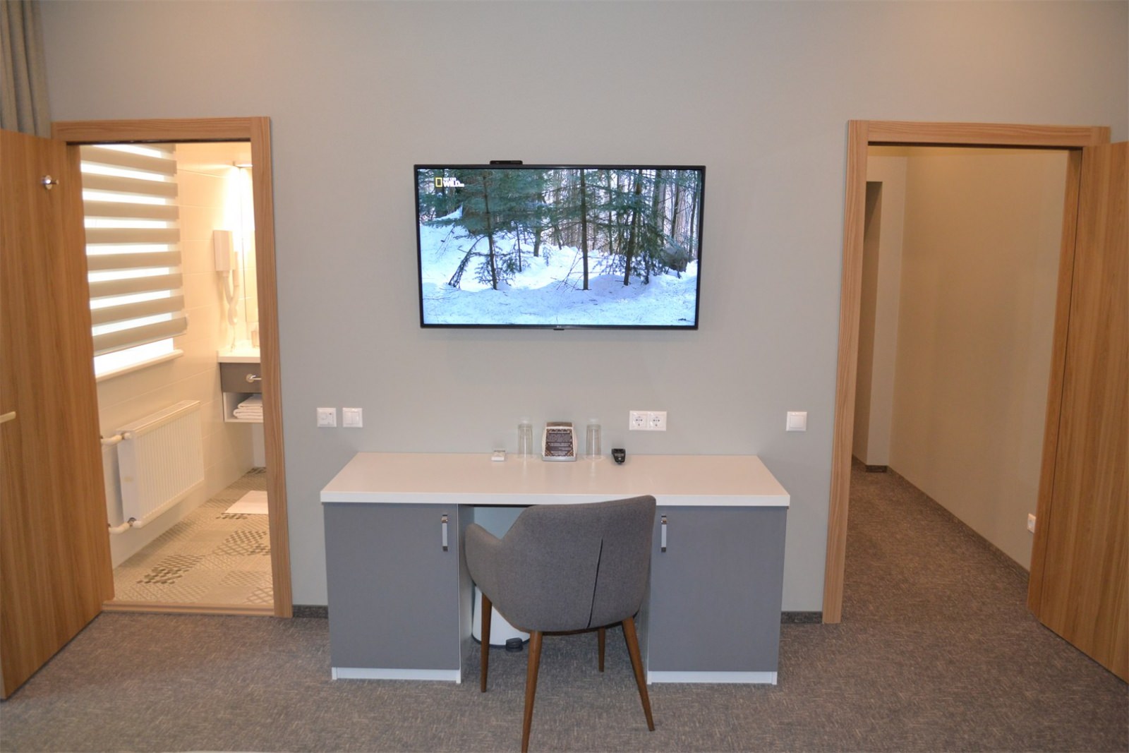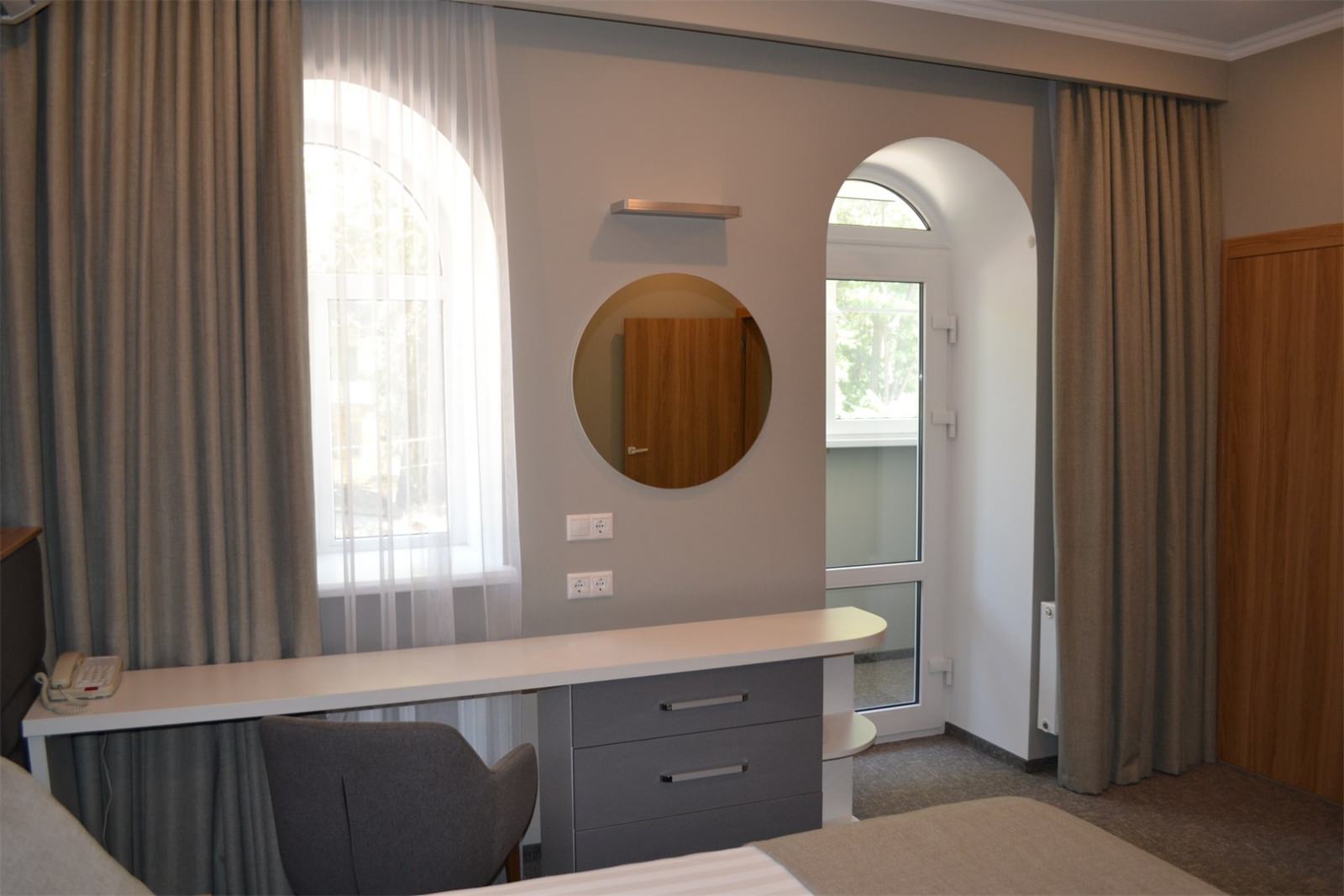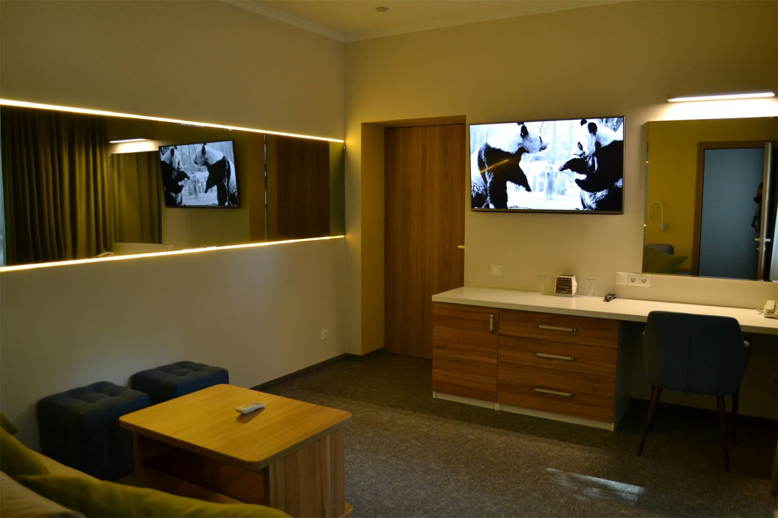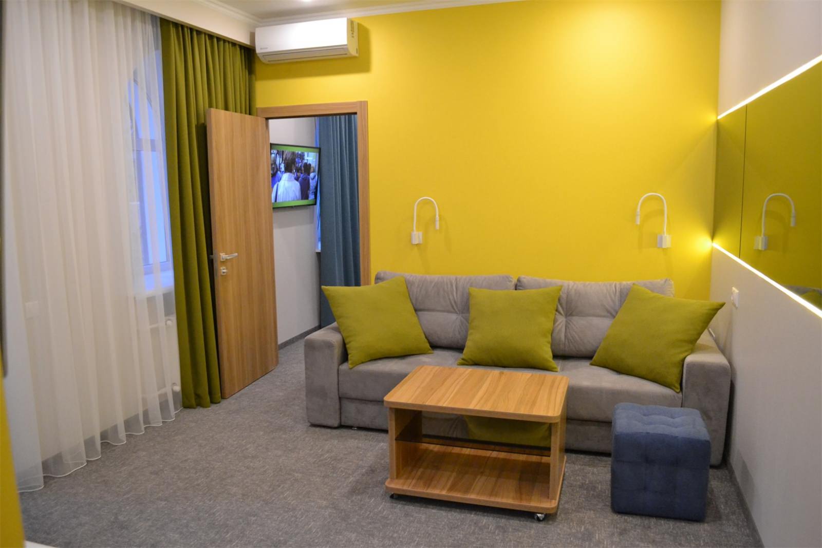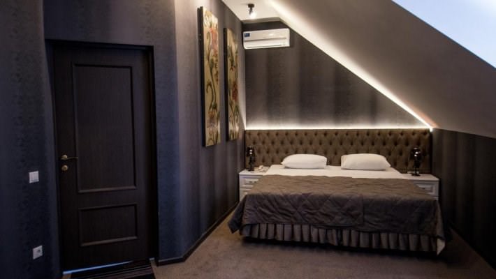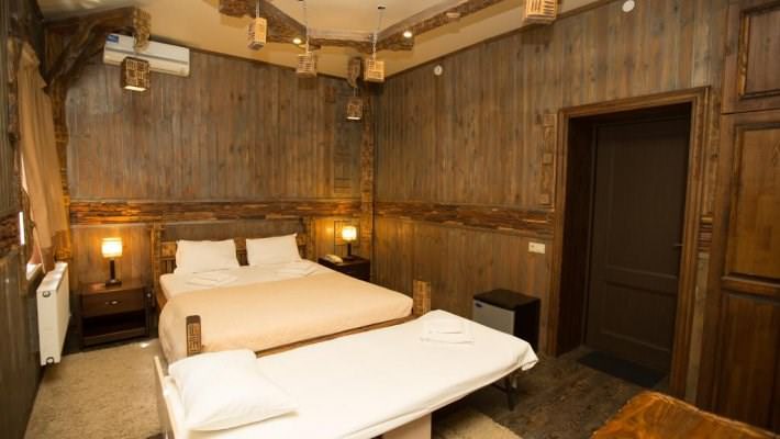 Звукоизолированный двухместный номер с 1 кроватью. В числе удобств — кондиционер и телевизор со спутниковыми каналами. Интерьер отделан экологичными материалами, включая натуральное дерево и камень.