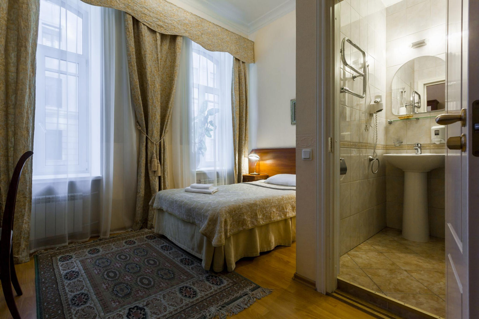 Площадь комнаты: 12 кв. метров Услуги и удобства: Рабочий стол, Отопление, Москитная сетка, Душ, Фен,, Туалет, Телевизор, Телефон Размер кровати — Односпальная, ширина 120 см