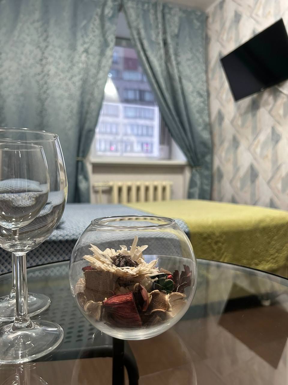 В студии свой санузел, душевая. В комнате: телевизор, бесплатный wi-fi, двуспальная кровать, микроволновая печь, чайник, посуда, тапочки, полотенца, гель для душа, шампунь, фен.