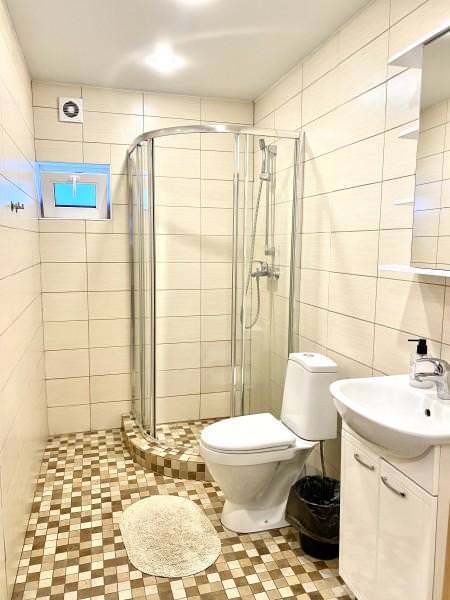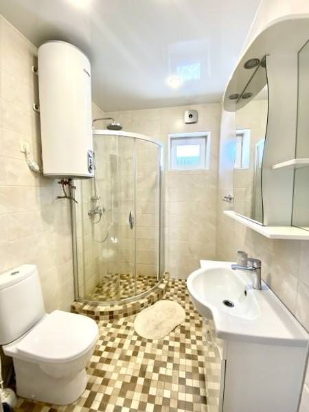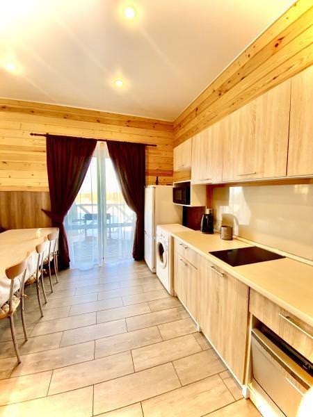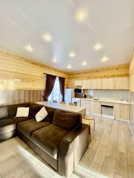 В коттедже две отдельные спальни и кухня-гостиная с раскладным широким диваном. Коттедж снабжен всем необходимым для самого комфортного отдыха: • Светлая и просторная душевая комната • Огромный зал позволяет проводить семейные и дружеские мероприятия • Коттедж обогревается теплыми полами • На кухне есть микроволновка • Имеется стиральная машинка • ТВ со спутниковыми каналами • Огромная терраса • Мангал возле дома Коттедж находится на большой отдельной территории и имеет свою парковку.