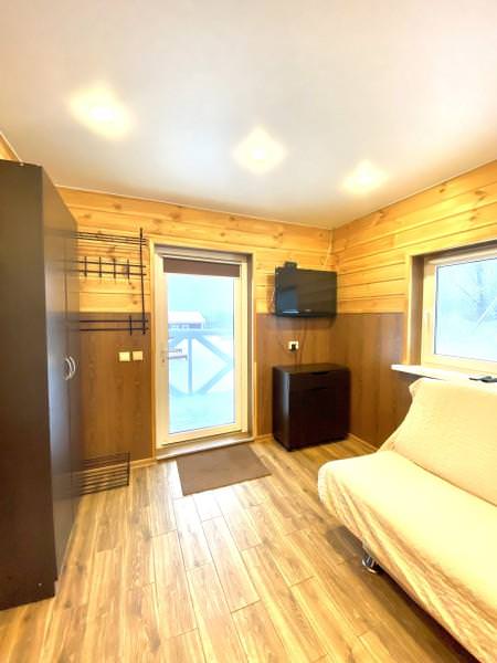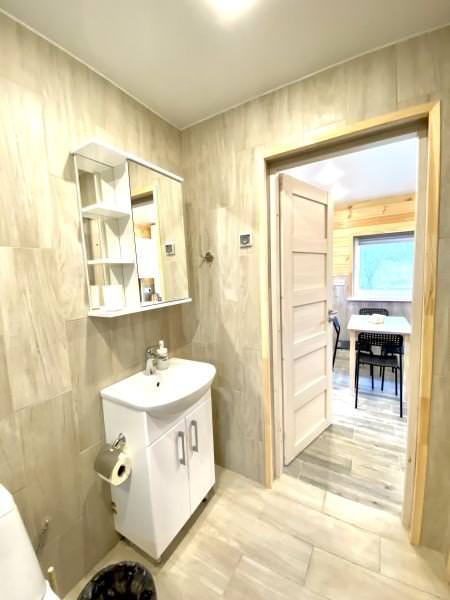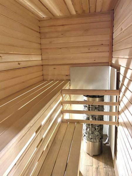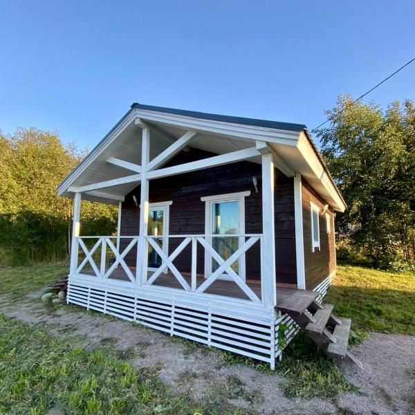 В коттедже одна отдельная спальня и кухня-гостиная с раскладным диваном. Также в коттедже имеется сауна. Коттедж снабжен всем необходимым для самого комфортного отдыха: Светлая и просторная душевая комната. На кухне есть микроволновка. Имеется стиральная машинка. ТВ со спутниковыми каналами. Небольшая терраса для душевных посиделок. Мангал возле дома. Коттедж находится на большой отдельной территории и имеет свою парковку.