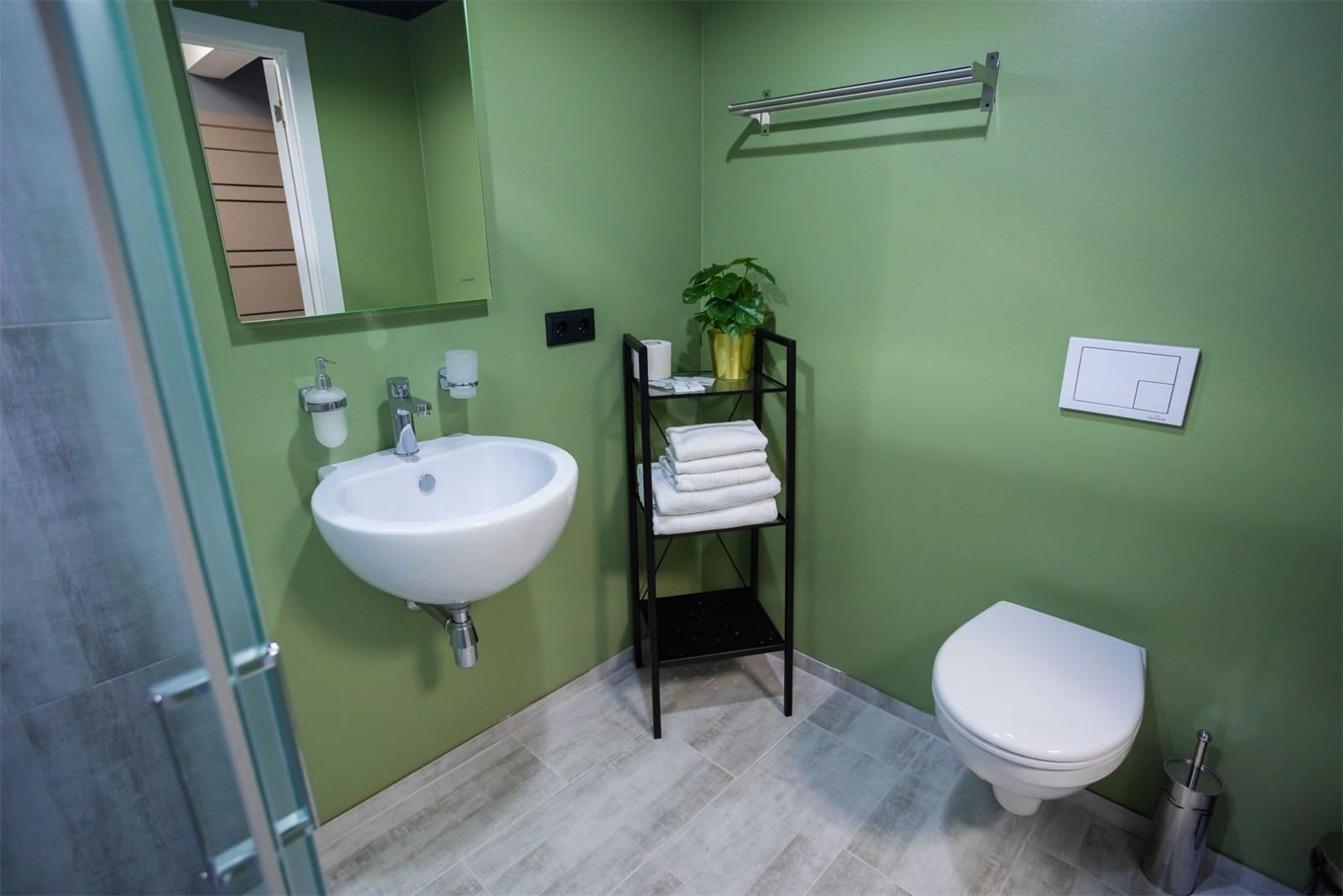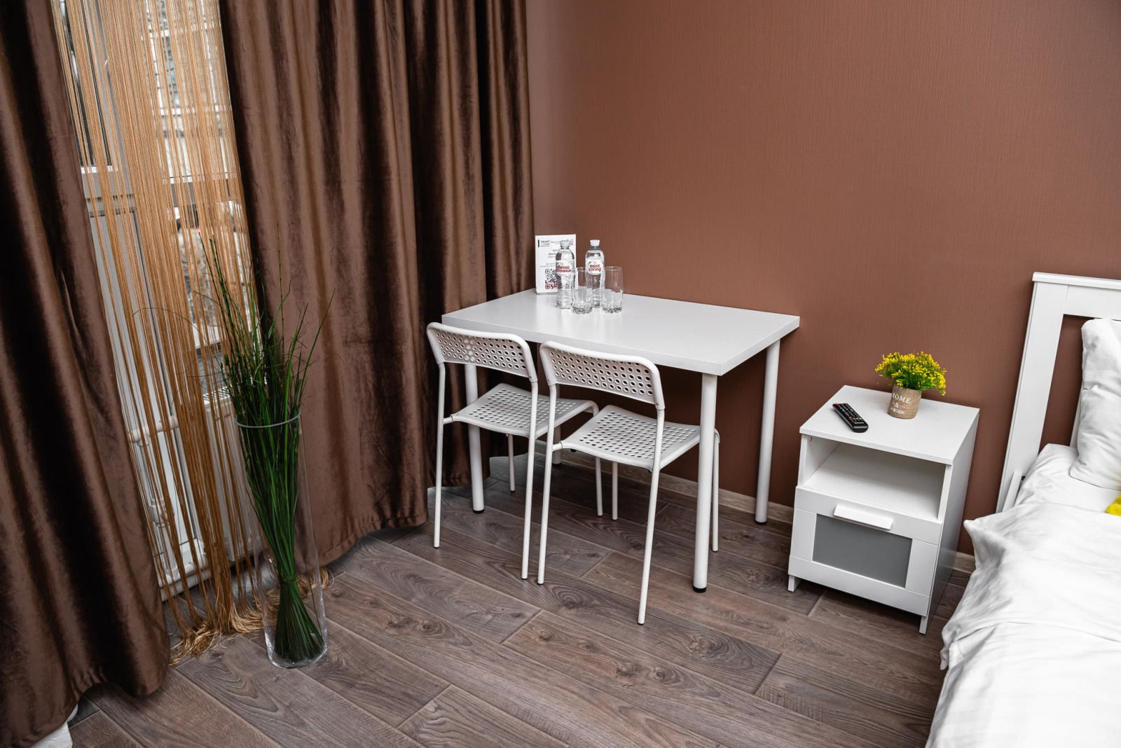 Просторный двухместный номер Комфорт с одной двуспальной кроватью и собственной ванной комнатой, выполнен в светлых тонах, может быть использован для проживания семьи с ребенком. Есть возможность установить дополнительно детскую кровать. Номер оснащен всем необходимым для комфортного проживания: рабочая зона, wi-fi, плазменный ТВ, место для хранения вещей. В ванной комнате: душ, тапочки, фен, полотенца, средства личной гигиены. Номер Комфорт более просторный по сравнению с номером Стандарт.