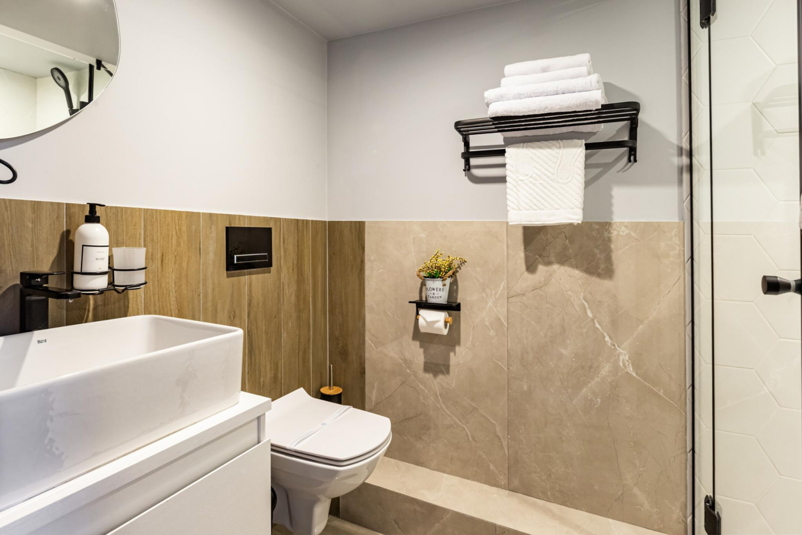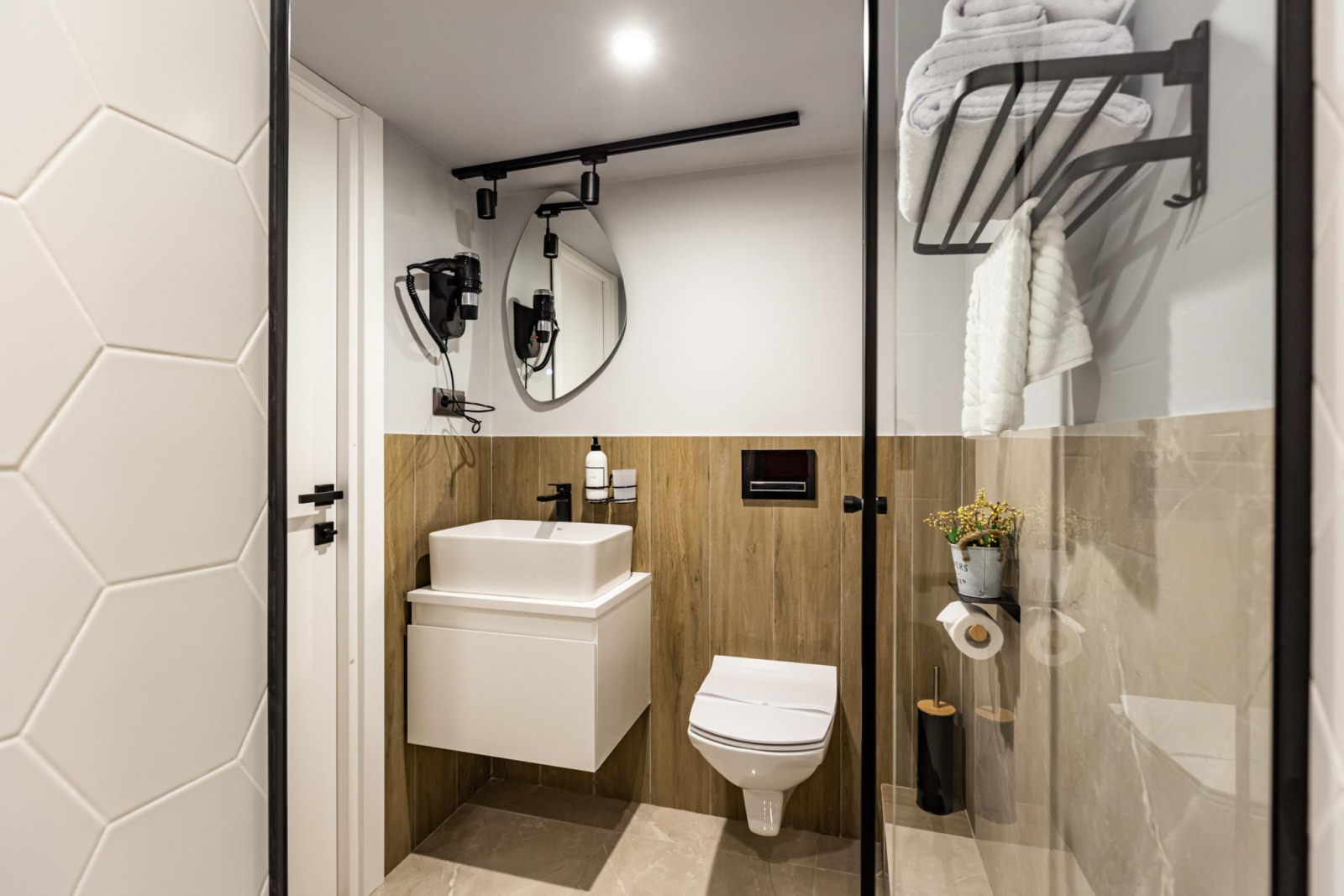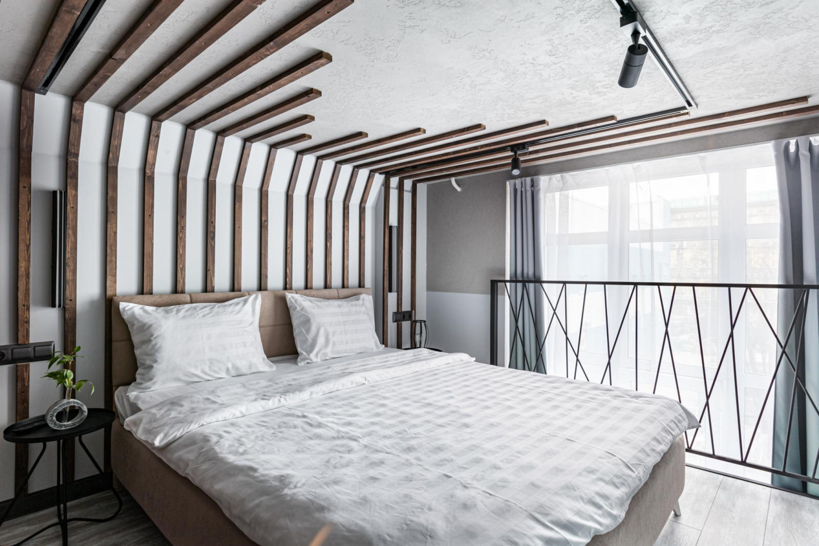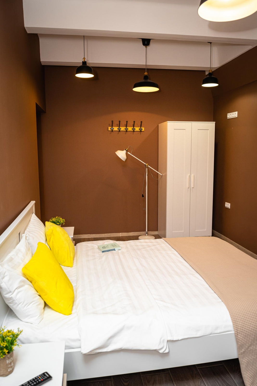 Элегантно оформленные двухуровневые апартаменты оснащены всем необходимым для комфортного проживания троих гостей. Апартаменты отвечают всем высоким требованиям размещения. Двухуровневые апартаменты оснащены одной двуспальной кроватью (160*200) на втором этаже, внизу расположена кухонная зона со всем необходимым и односпальный диван (90*200). Кухня оснащена посудой, столовыми приборами, чайником, индукционной плитой, холодильником, микроволновой печью. В ванной комнате: душ, тапочки, фен, полотенца, средства личной гигиены.