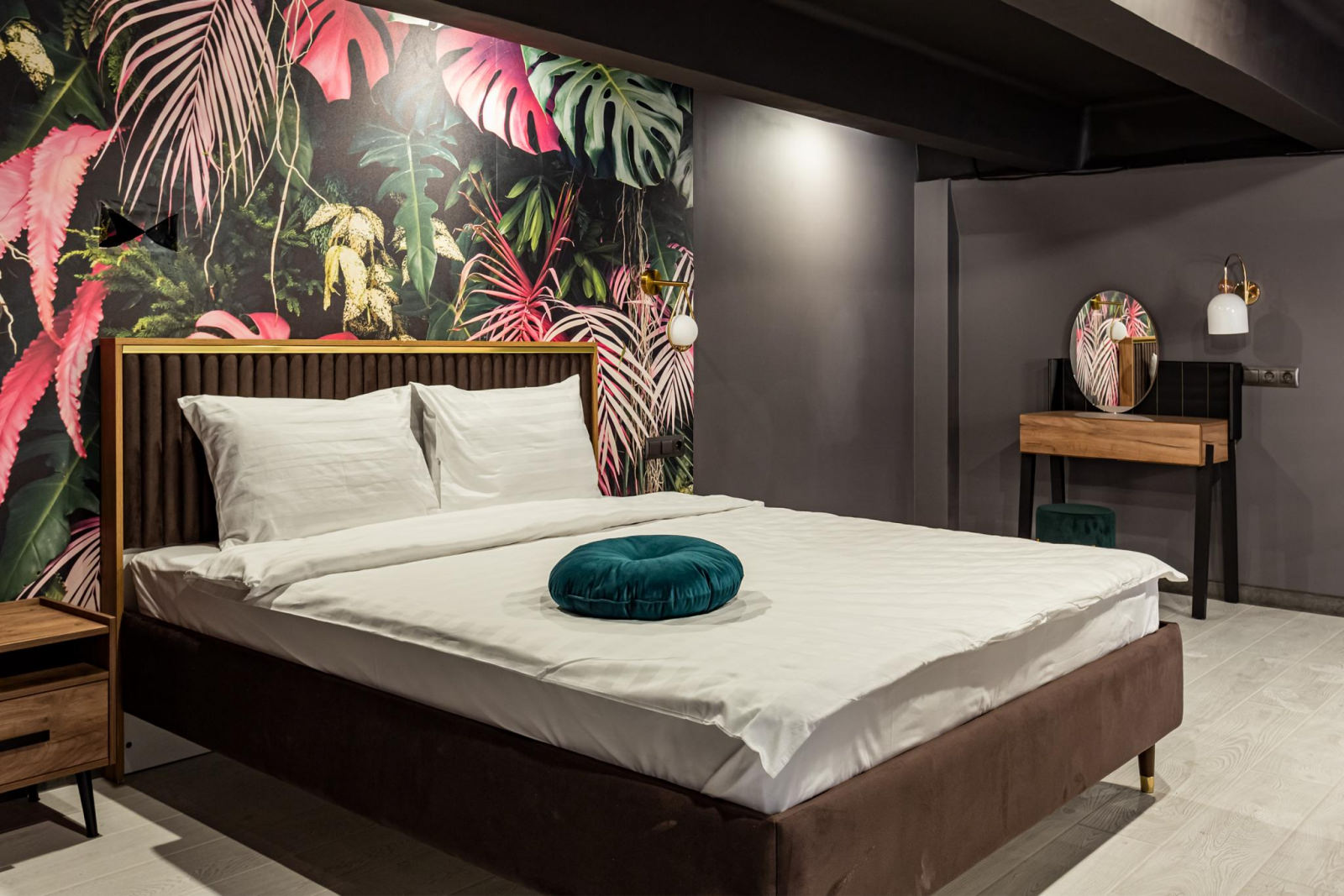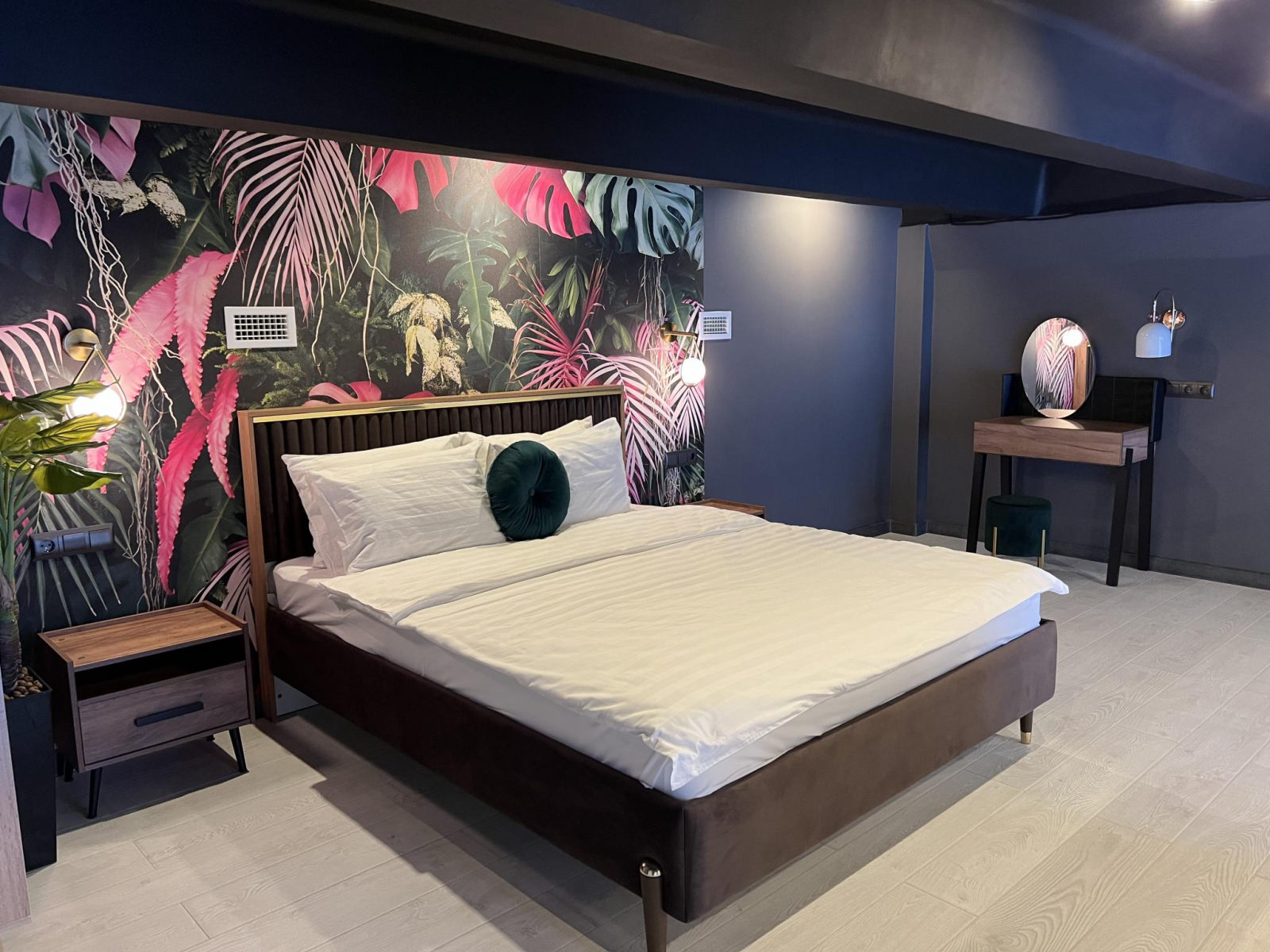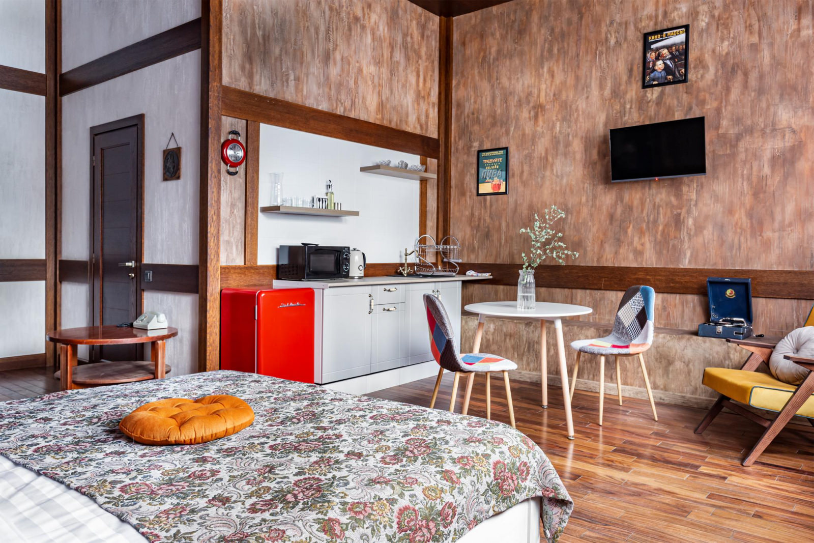 Апартаменты по мотивам 90-х годов для двоих, где можно предаться ностальгии, набраться сил и начать двигаться дальше. Здесь вы сможете поставить пластинку на патефоне и погрузиться в атмосферу 70х, поиграть в денди на ламповом телевизоре, посмотреть фильм на видеокассете с тем самым переводом или включить современную ТВ плазму со смарт TV - масса впечатлений. Мы нашли тот самый телевизор с кружевной салфеткой и видиком, хрусталь (не в серванте, а для пользования. Бабушке говорить не будем) и патефон с лучшими пластинками. Мы постарались продумать все, чтобы вернуть вас в квартиру где вы выросли. Апартаменты оснащены современной техникой, которая ловко спряталась за чайным сервизом в горошек. Приезжайте за эмоциями.