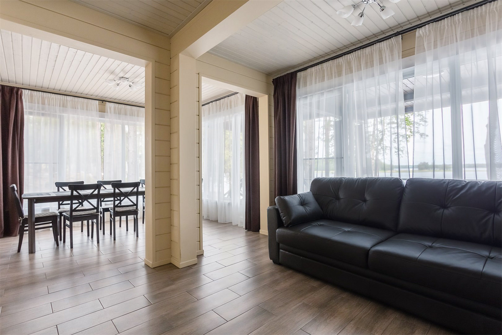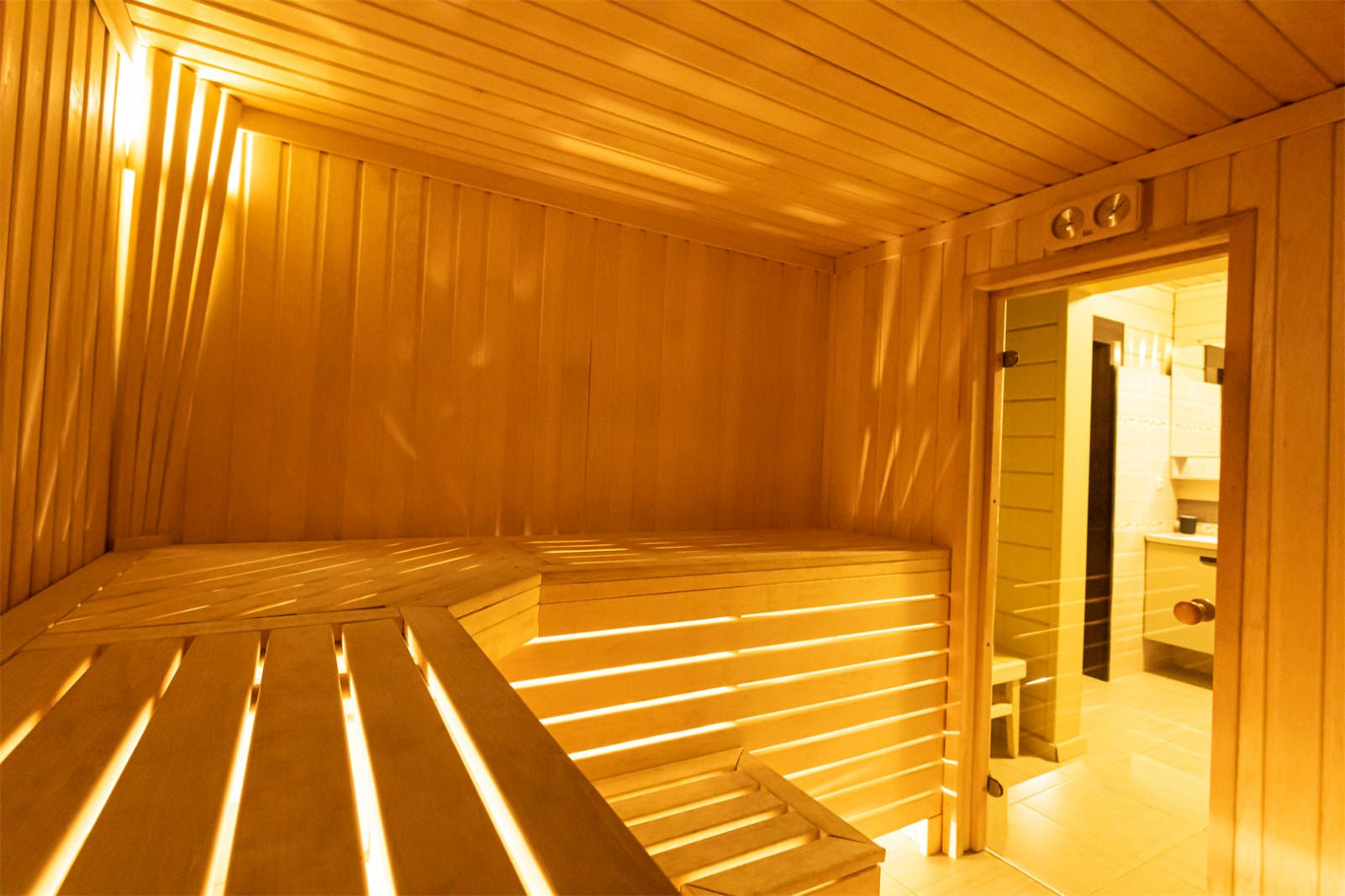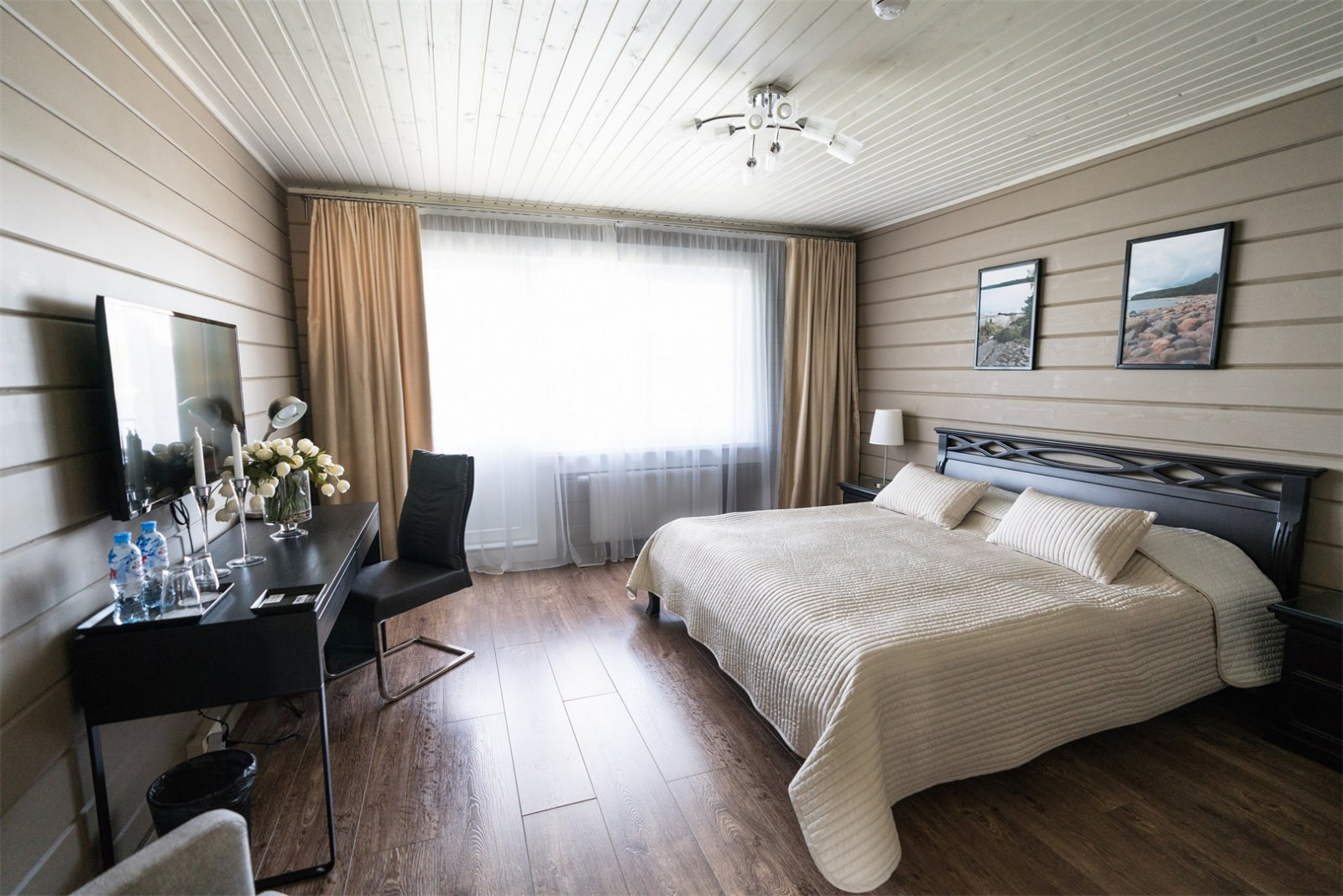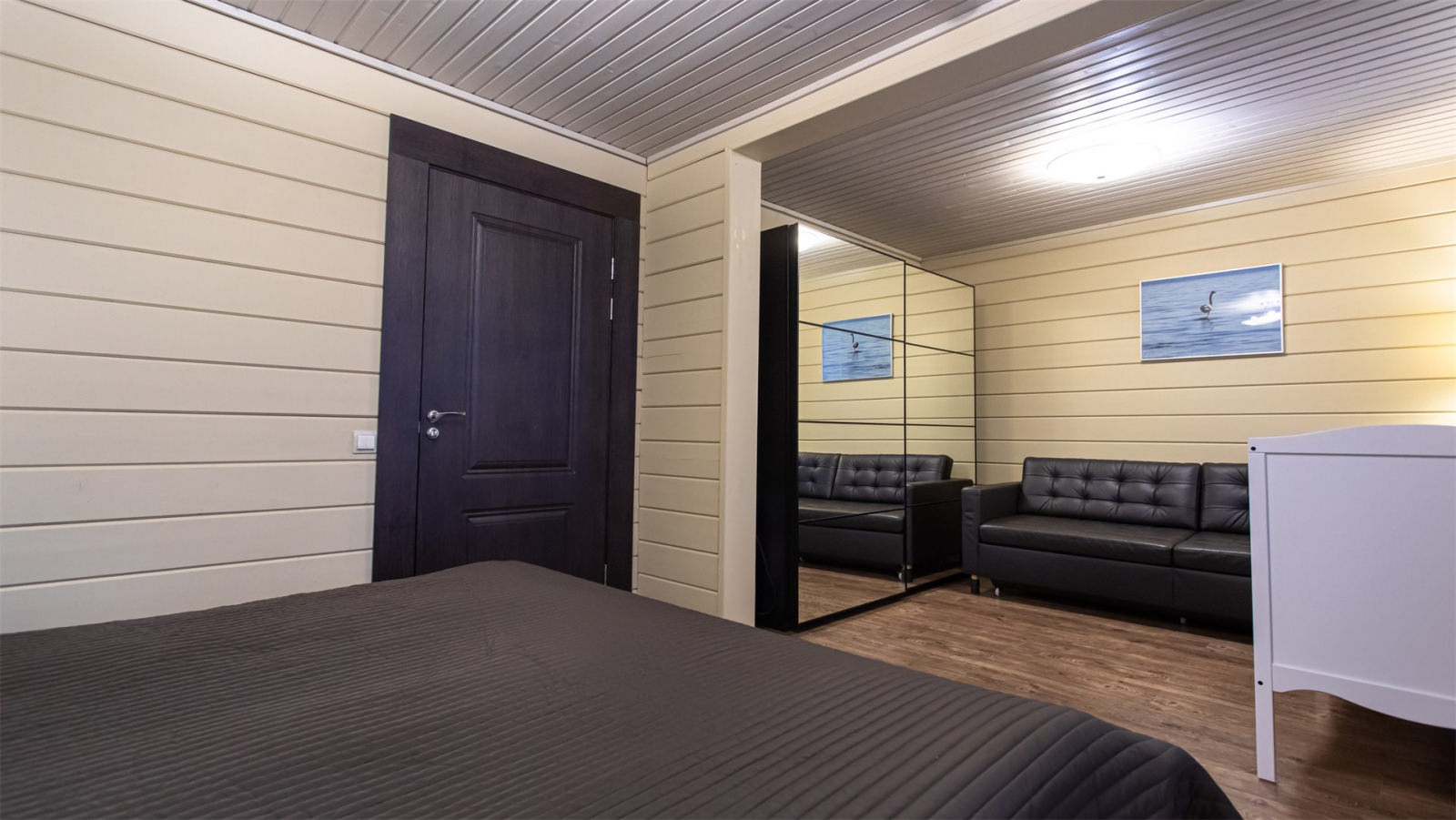 Каждый коттедж-дуплекс (116 м2) выполнен в скандинавском стиле, сочетающем элегантную классику с современными элементами декора и высоким уровнем комфорта. Все номера оборудованы на первом этаже теплыми полами. В каждом из номеров к услугам гостей: - Высокоскоростной WiFi интернет, LCD телевизор с большим выбором кабельных каналов и возможностью просмотра кинофильмов через интернет - На каждом этаже просторная ванная комната, оборудованная душевой кабиной с гидромассажным и тропическим душем; - Стиральная машина - Косметика и туалетные принадлежности, халаты и тапочки - Высококачественное постельное белье - Террасса, оснащенная удобной мебелью - Балкон в каждой спальне - Кухня оснащена холодильником, посудомоечной машиной, индукционной плитой с духовым шкафом, электрическим чайником, микроволновой печью,посудой - Сауна для одновременнного посещения 2-их человек