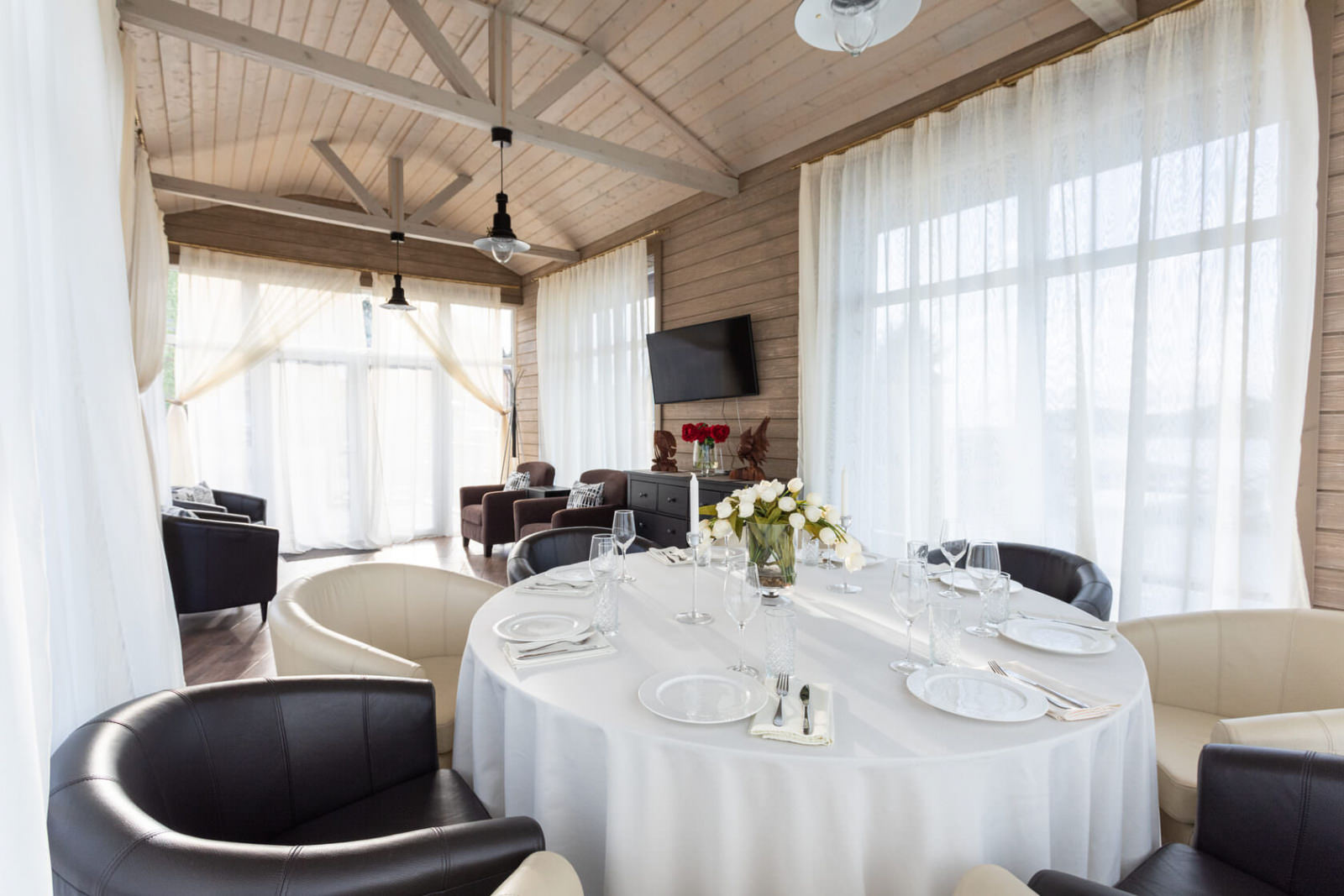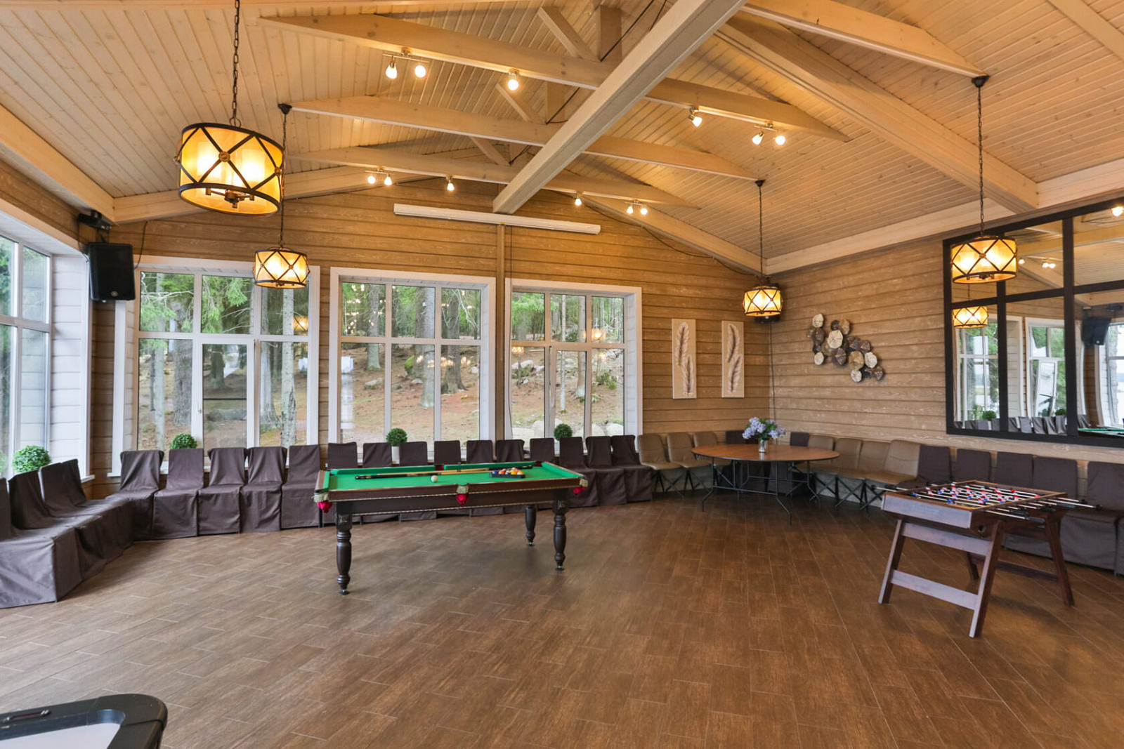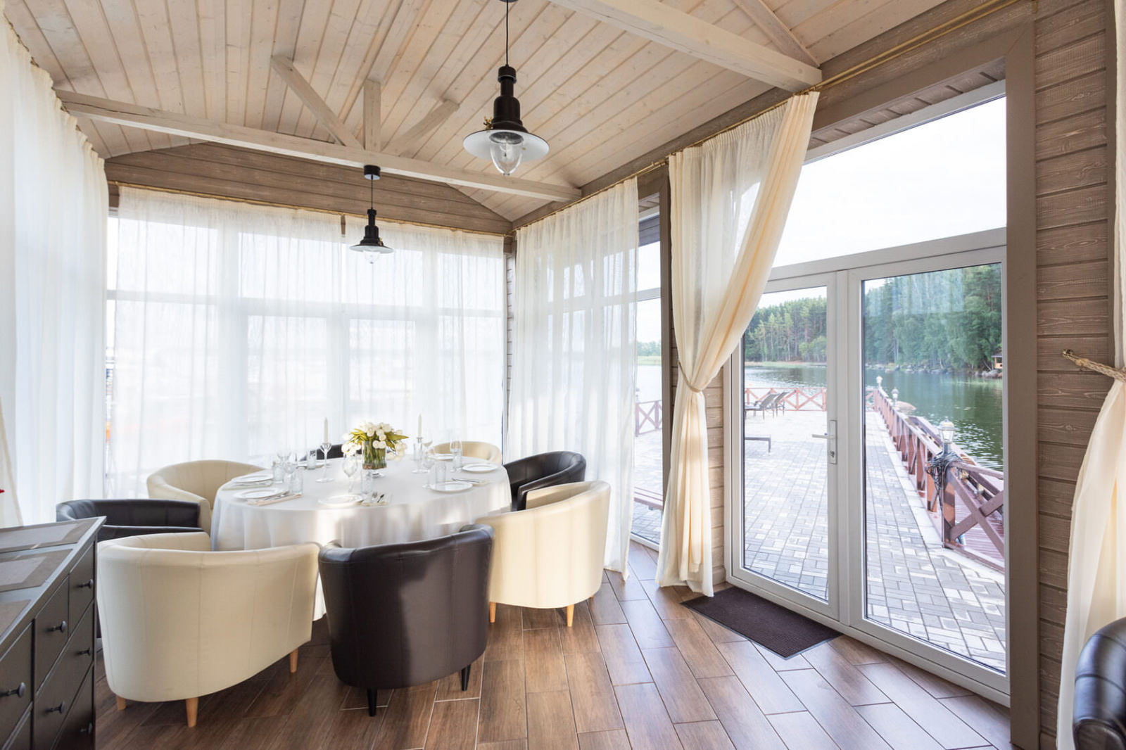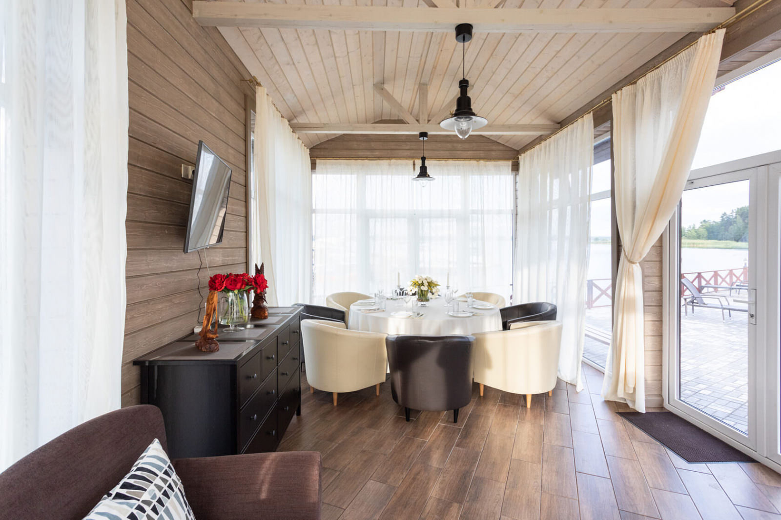 Каждый коттедж-дуплекс (116 м2) выполнен в скандинавском стиле, сочетающем элегантную классику с современными элементами декора и высоким уровнем комфорта. Все номера оборудованы на первом этаже теплыми полами. В каждом из номеров к услугам гостей: - Высокоскоростной WiFi интернет, LCD телевизор с большим выбором кабельных каналов и возможностью просмотра кинофильмов через интернет - На каждом этаже просторная ванная комната, оборудованная душевой кабиной с гидромассажным и тропическим душем; - Стиральная машина - Косметика и туалетные принадлежности, халаты и тапочки - Высококачественное постельное белье - Террасса, оснащенная удобной мебелью - Балкон в каждой спальне - Кухня оснащена холодильником, посудомоечной машиной, индукционной плитой с духовым шкафом, электрическим чайником, микроволновой печью,посудой - Сауна для одновременнного посещения 2-их человек
