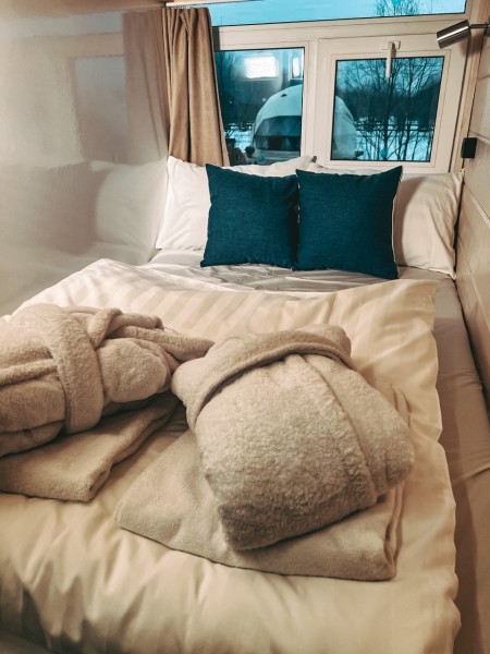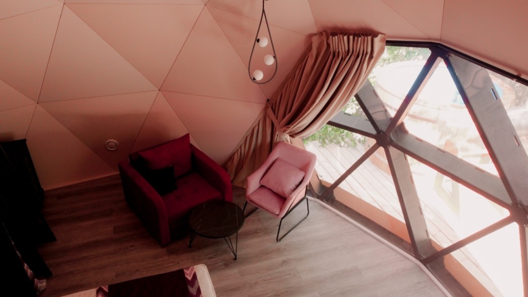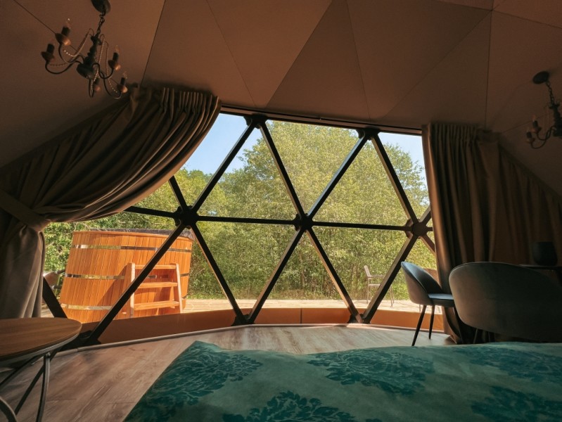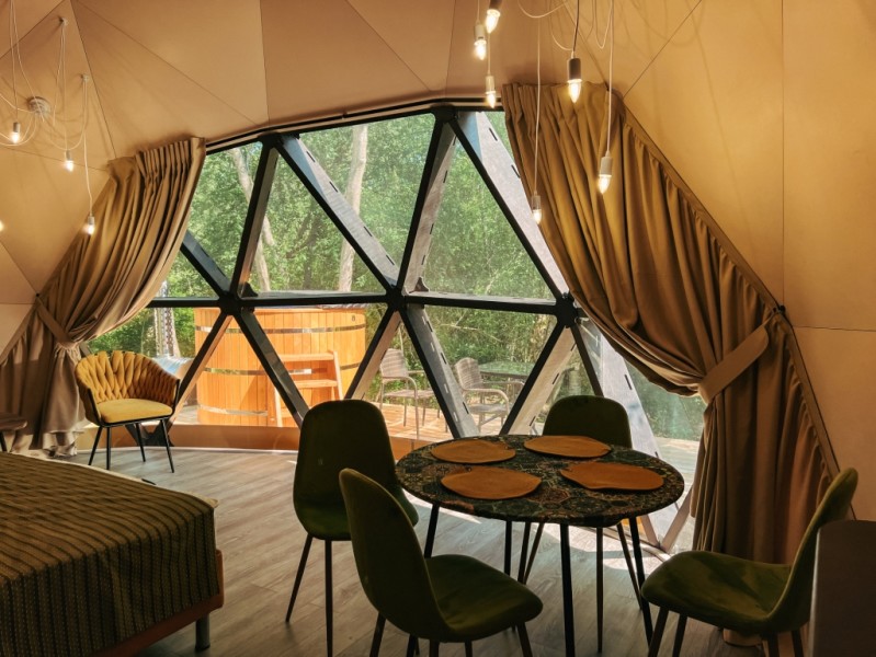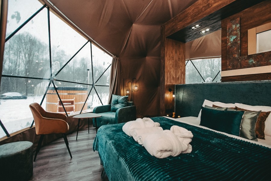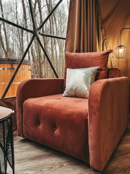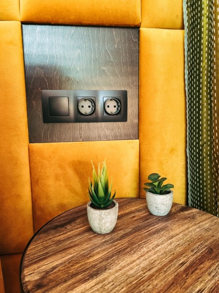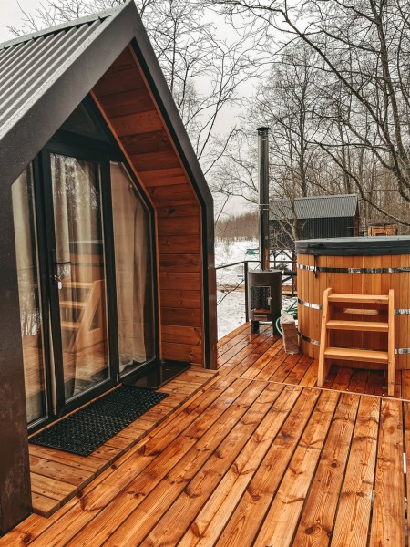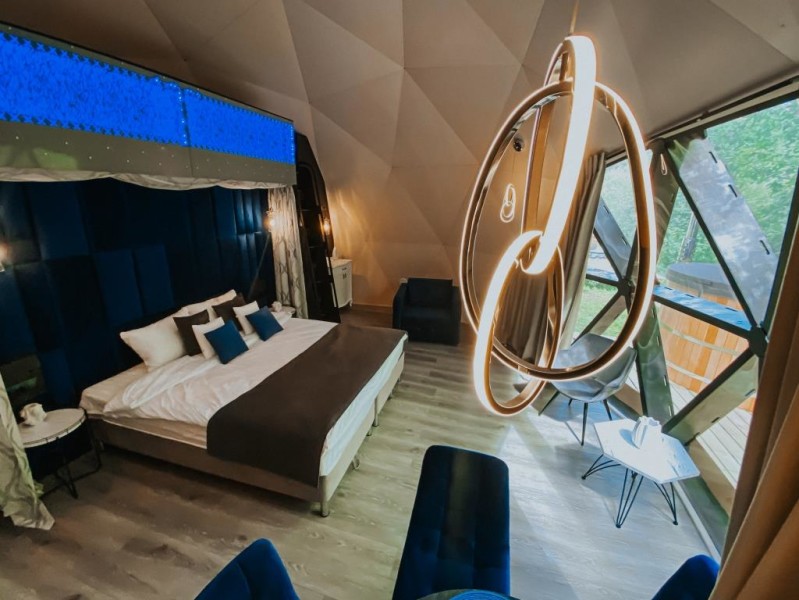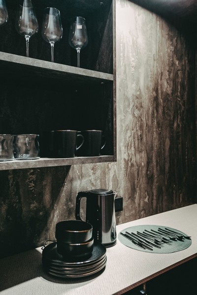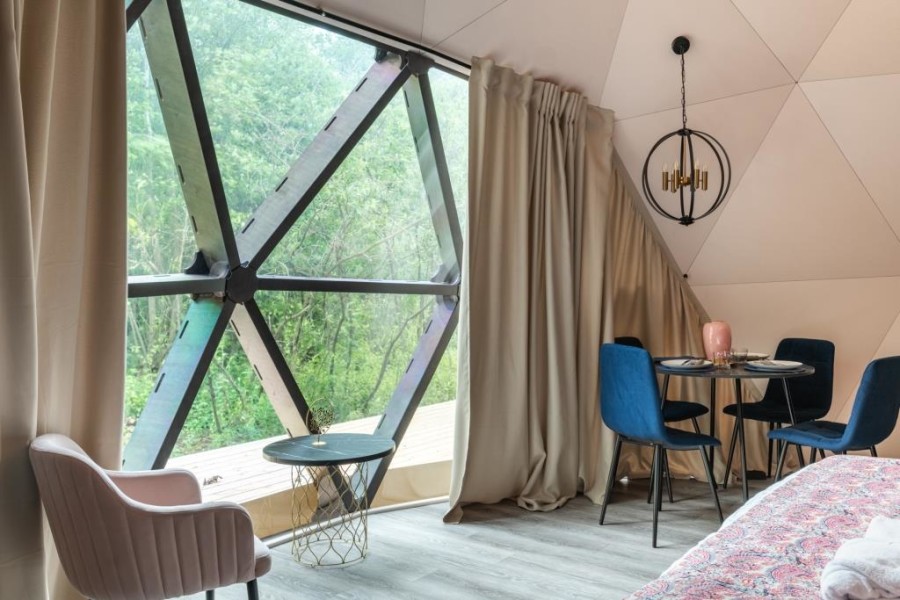 Площадь номера - 60 кв.м. 4 осн. места. Мебель: вешалка, диван, зеркало, кровать двуспальная, стол, стулья, шкаф. Мини-кухня. Оборудование: микроволновая печь, мини-холодильник, набор посуды, телевизор ЖК, чайный набор посуды, электрочайник. Санузел: с душевой кабиной, тапочки, туалетные принадлежности, фен, халат. Сервис: Wi-Fi бесплатно, мини-бар, смена полотенец, смена постельного белья, уборка номера. Терраса.