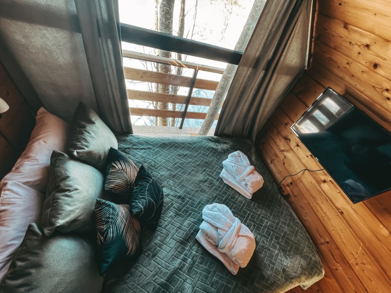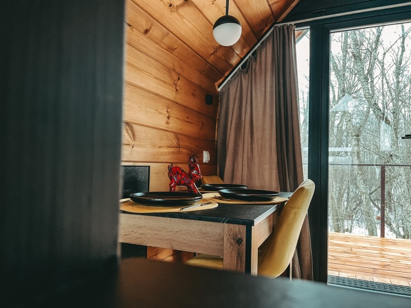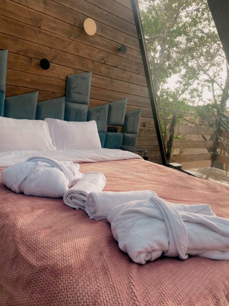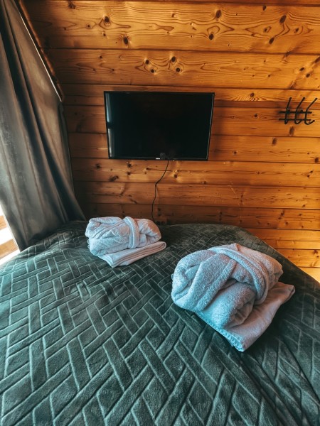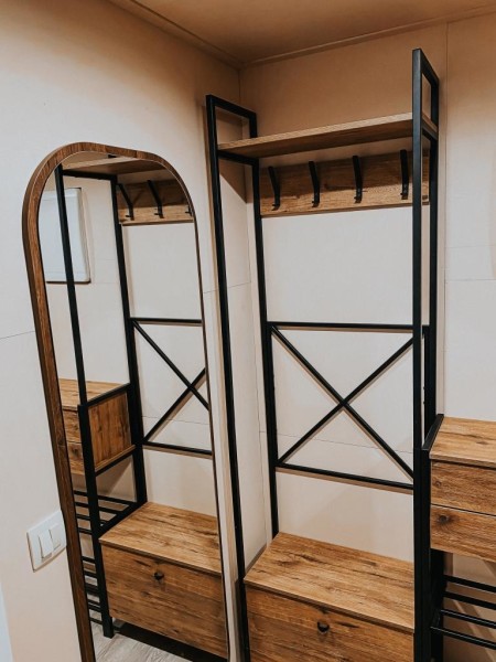 Площадь номера - 46 кв.м. 3 осн. места. Мебель: вешалка, зеркало, кровати полутороспальные, стол, стулья, шкаф. Мини-кухня. Оборудование: микроволновая печь, мини-холодильник, набор посуды, чайный набор посуды, электрочайник. Санузел: с душевой кабиной, тапочки, туалетные принадлежности, фен, халат. Сервис: Wi-Fi бесплатно, мини-бар, смена полотенец, смена постельного белья, уборка номера. Терраса.