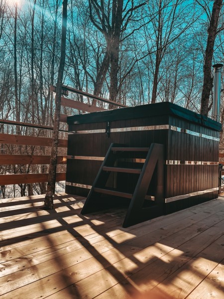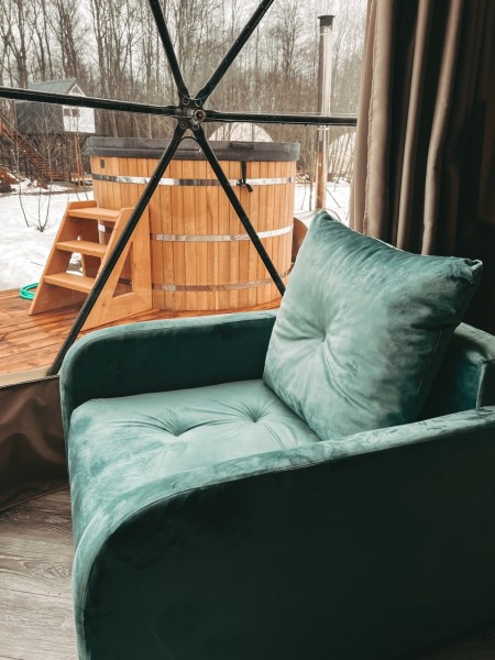 Площадь номера - 50 кв.м. 4 осн. места. Мебель: вешалка, зеркало, кресло-кровать, кровать двуспальная, кровать детская, прикроватные тумбочки, стол, стулья, шкаф. Оборудование: кондиционер, мини-холодильник, обогреватель, чайный набор посуды, электрочайник. Санузел: с джакузи, с душем, тапочки, туалетные принадлежности, фен, халат. Сервис: Wi-Fi бесплатно, смена полотенец, смена постельного белья, уборка номера. Терраса.