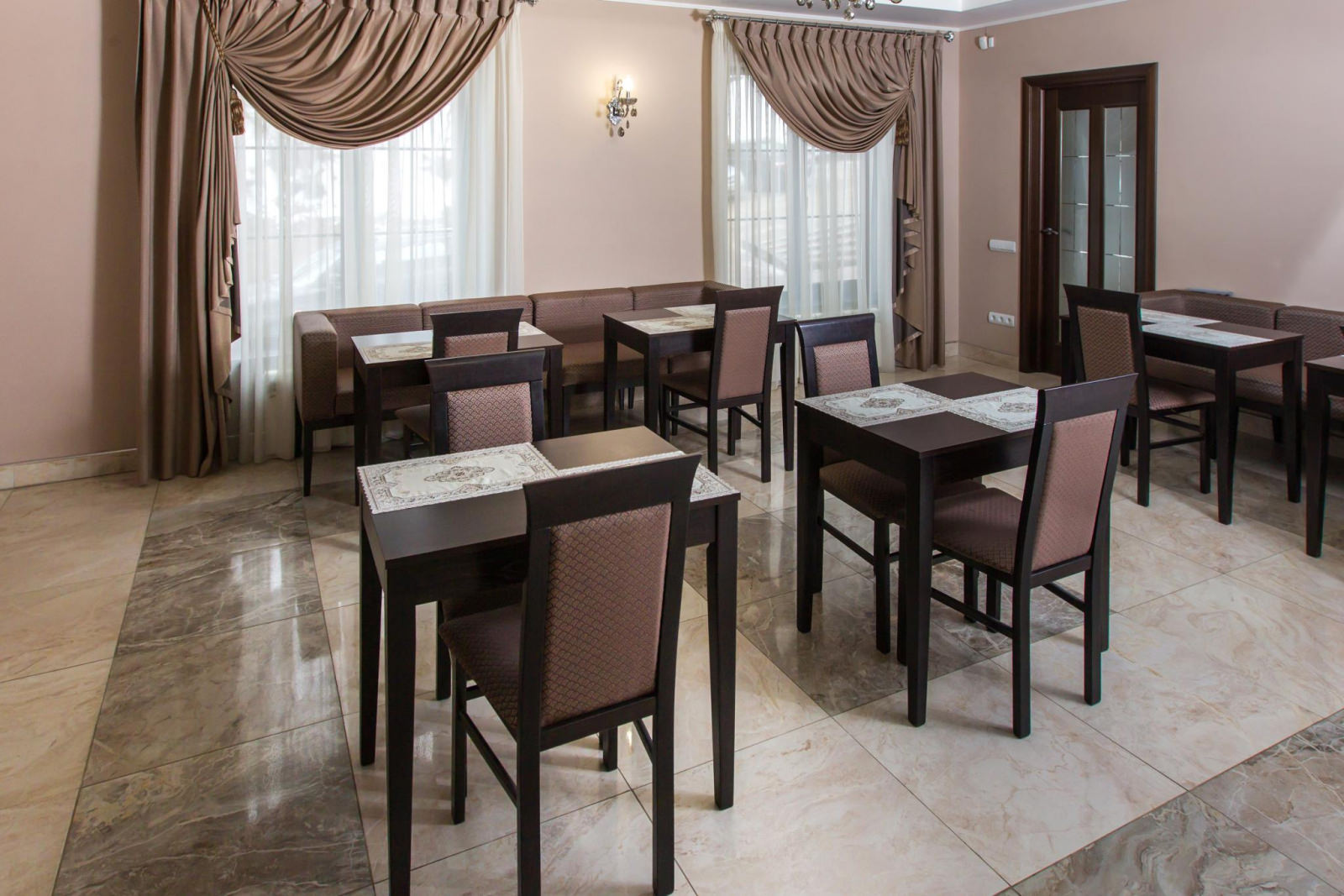 Двухместный улучшенный номер с двуспальной кроватью, плазменным телевизором, кабельным телевидением, холодильником, интернетом wi-fi, набором уютной мебели, комфортными санузлами с душевой кабиной и индивидуальными принадлежностями.