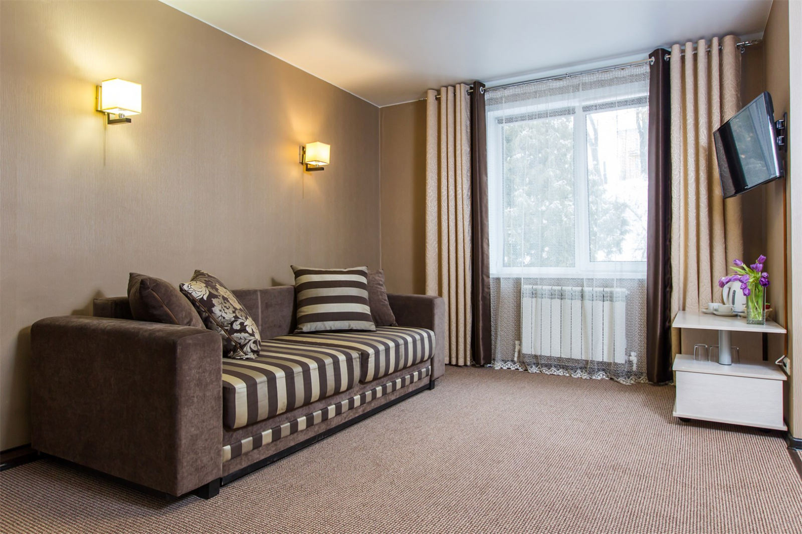 Улучшенный двухместный номер с двумя раздельностоящими кроватями, плазменным телевизором, кабельным телевидением, холодильником, интернетом wi-fi, набором уютной мебели, комфортными санузлами с душевой кабиной и индивидуальными принадлежностями.