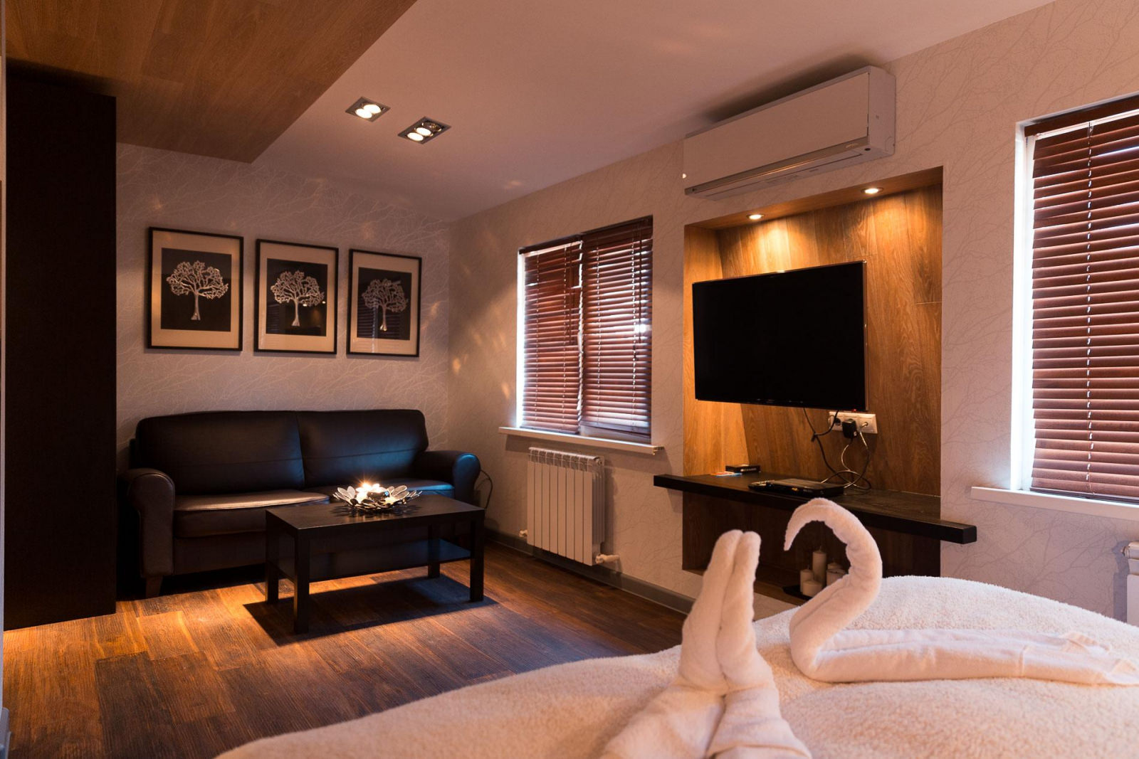 Люкс с гостиной зоной с диваном, телевизором с плоским экраном и спутниковыми каналами, а также DVD-плеером. Имеется кофемашина и холодильник. В собственной ванной комнате с ванной предоставляется фен и бесплатные туалетно-косметические принадлежности.