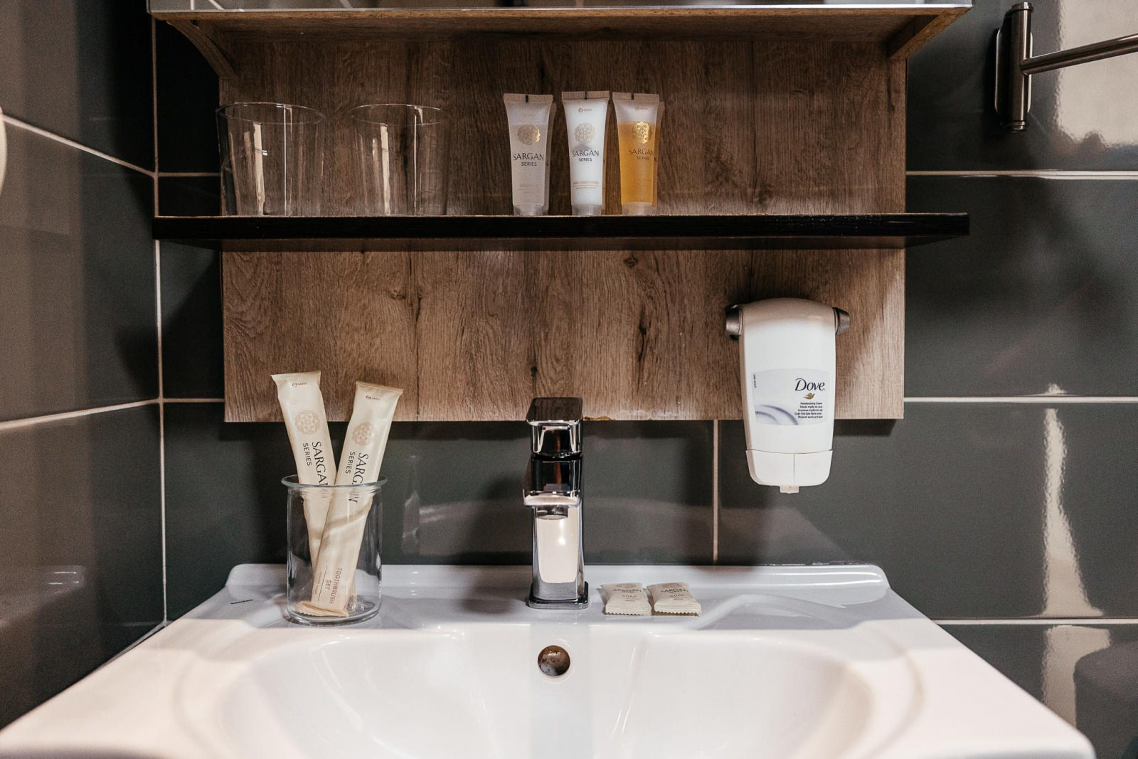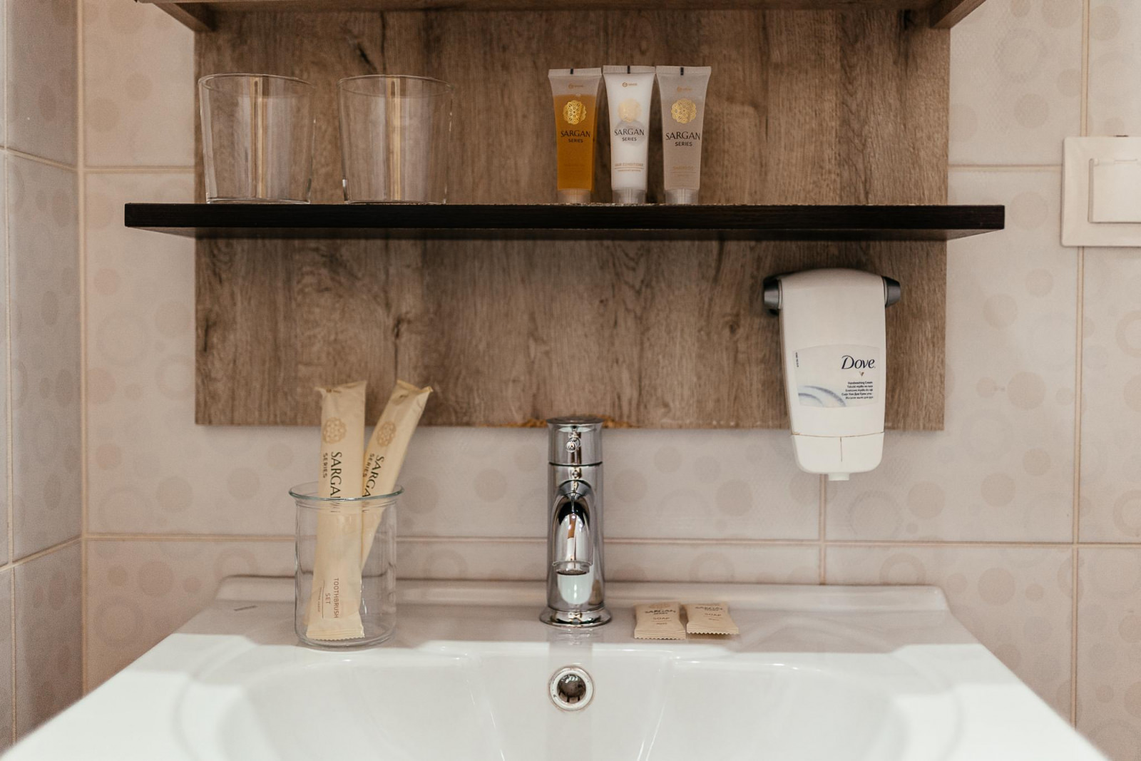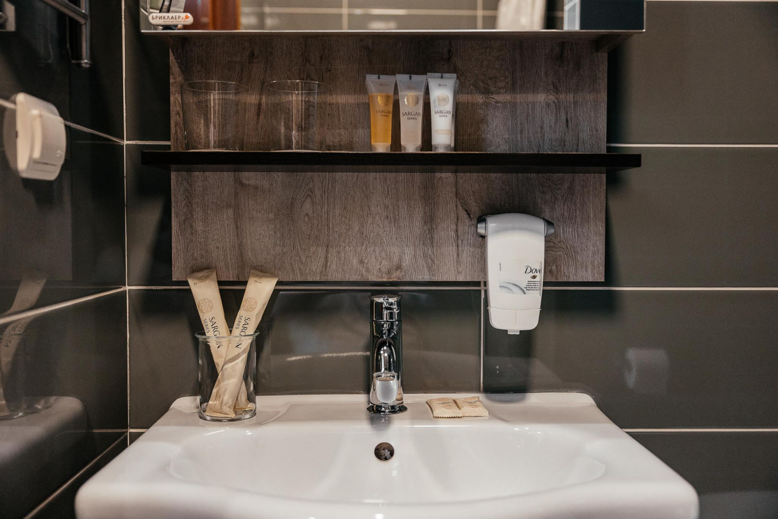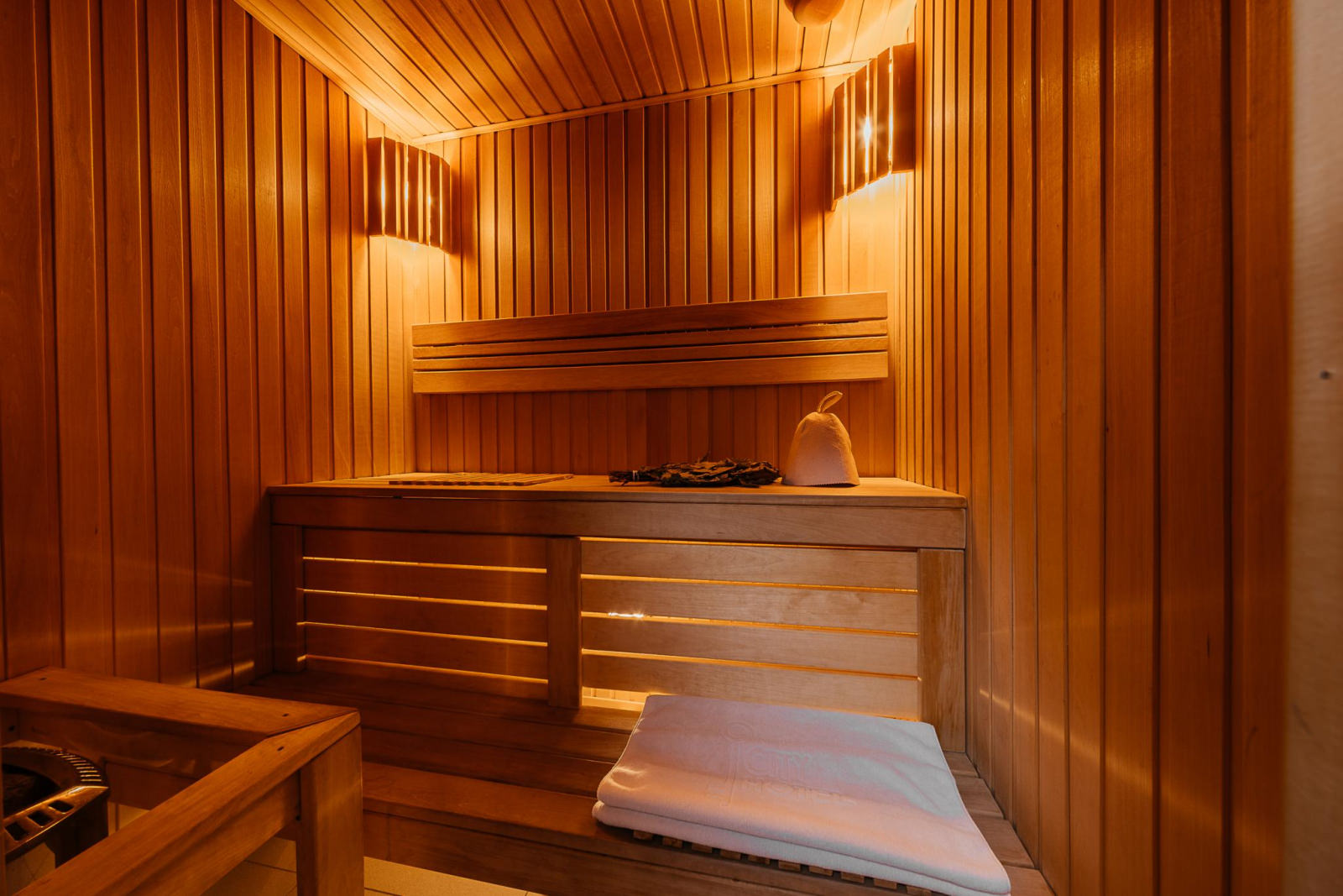 «Люкс с сауной» - номер площадью 24-26 м² с собственной сауной. Ванная комната оборудована душем, раковиной для умывания, туалетом, феном, набором полотенец, косметическими принадлежностями: зубным набором, гелем, шампунем. Спальное место оборудовано ортопедическим матрасом (160x200) и постельным бельем премиум-класса. Для удобства номер оснащён будильником, кондиционером, холодильником, микроволной печью и жидкокристаллическим телевизором с цифровым телевидением. Бесплатный Wi-Fi в номере и на территории гостиницы. Уборка номеров и смена полотенец проводится ежедневно. Номер для некурящих. Если Вы забыли дома какие-либо предметы личной гигиены, то позвоните в службу приёма и размещения, и мы будем рады бесплатно предложить Вам набор для бритья, расчёску, косметический набор, шапочку для душа, швейный набор, беруши, одноразовые защитные маски.