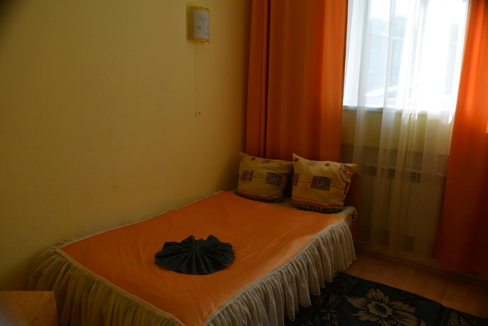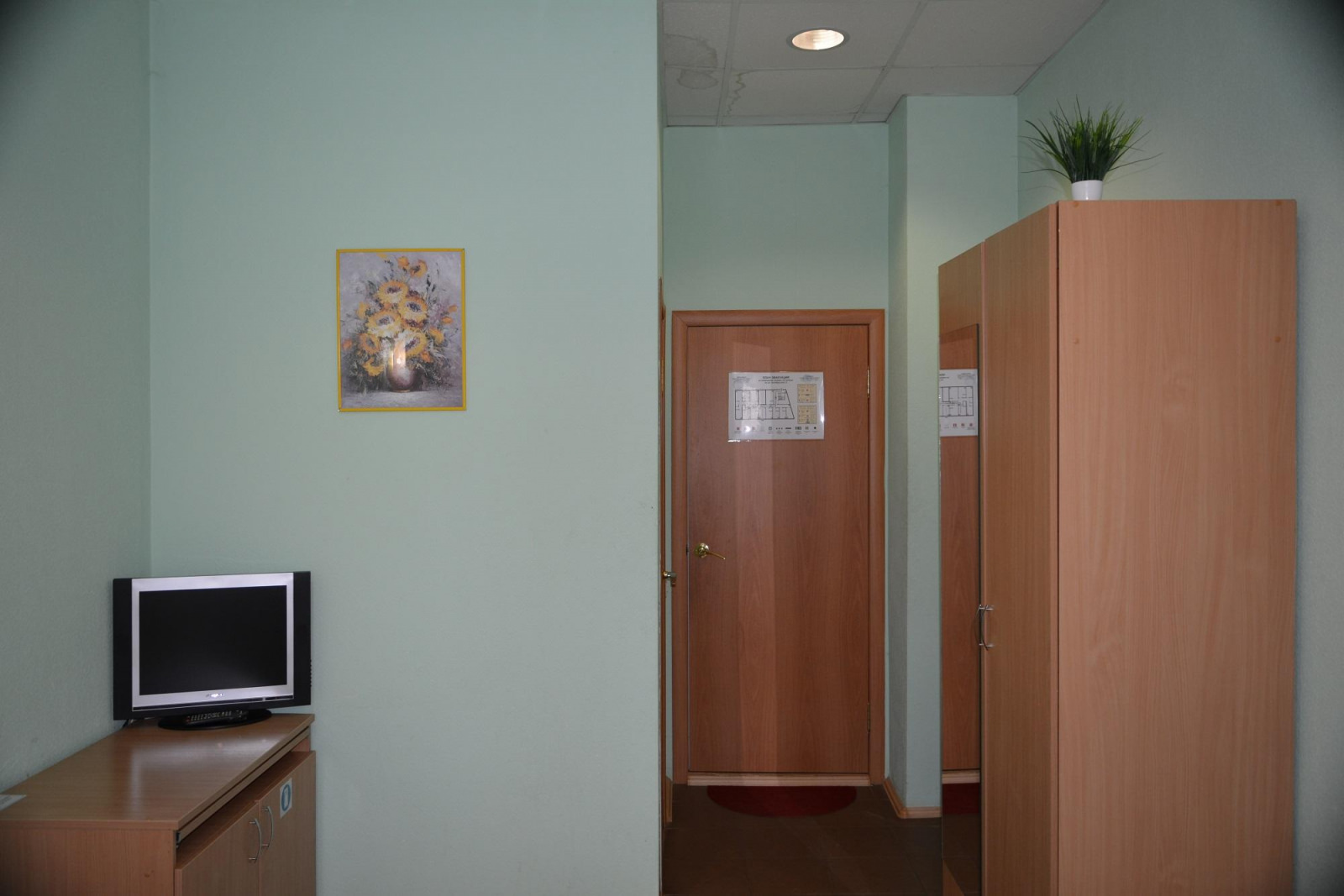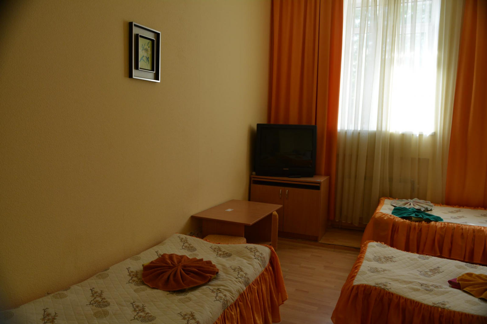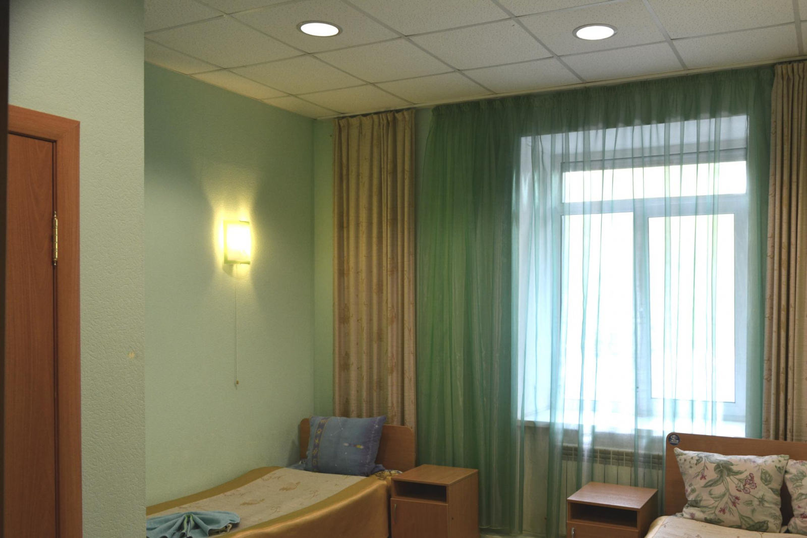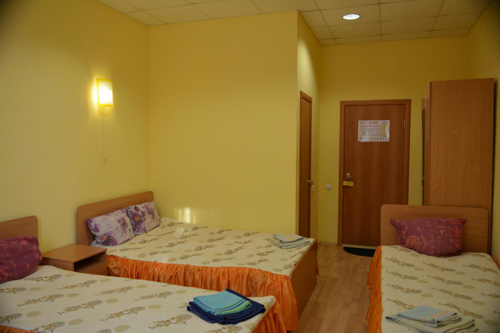Большой номер с 2-мя односпальными кроватями. В номере телевизор, стол, прикроватная тумбочка, шкаф с зеркалом. Душевая и санузел не в самом номере, а рядом через дверь. Общая большая кухня со всеми приборами и посудой, питьевая вода, чай, Wi-Fi.