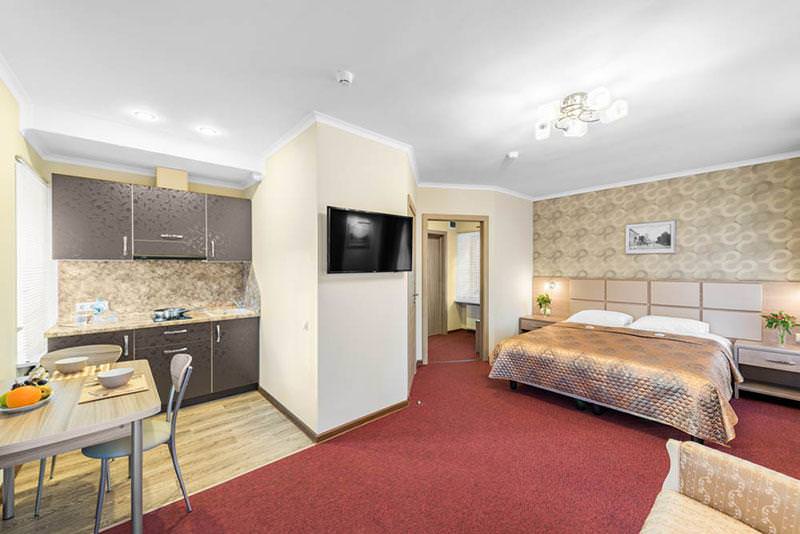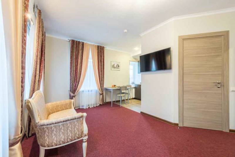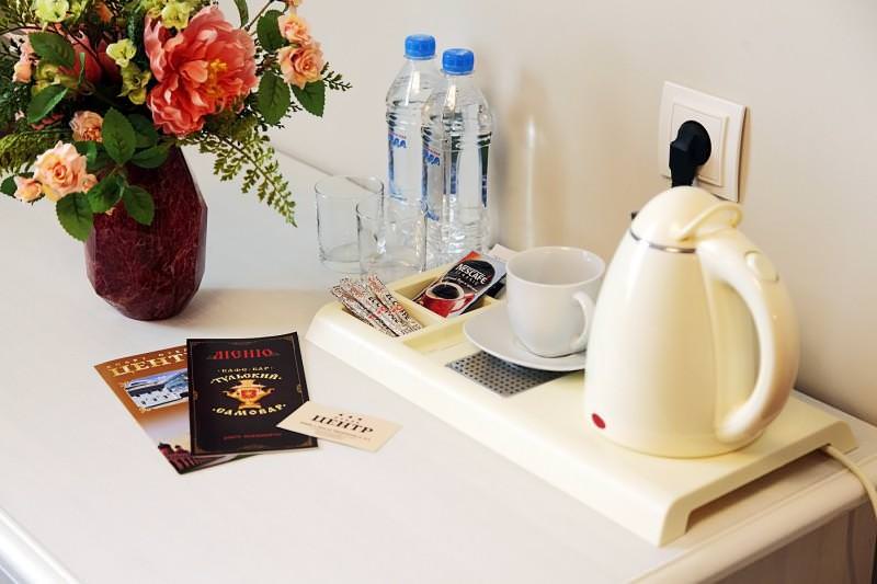 Все номера Отеля «Центр» отличает лаконичный дизайн - простые формы, нейтральные цвета, четкая геометрия пространства, многофункциональность предметов обстановки. Некоторые из номеров оборудованы собственной кухней-студией. Все номера оснащены комфортной, индивидуально регулируемой системой кондиционирования воздуха, ванной комнатой, кабельным телевидением, телефоном, бесплатным Wi-Fi Интернетом. Платная парковка (находится в 30 метрах, на территории Торгового центра "Триумф" по адресу ул. Советская 72. Вежливый и высокопрофессиональный персонал нашего отеля сделает все, чтобы Ваше пребывание у нас было максимально комфортным и приятным.
