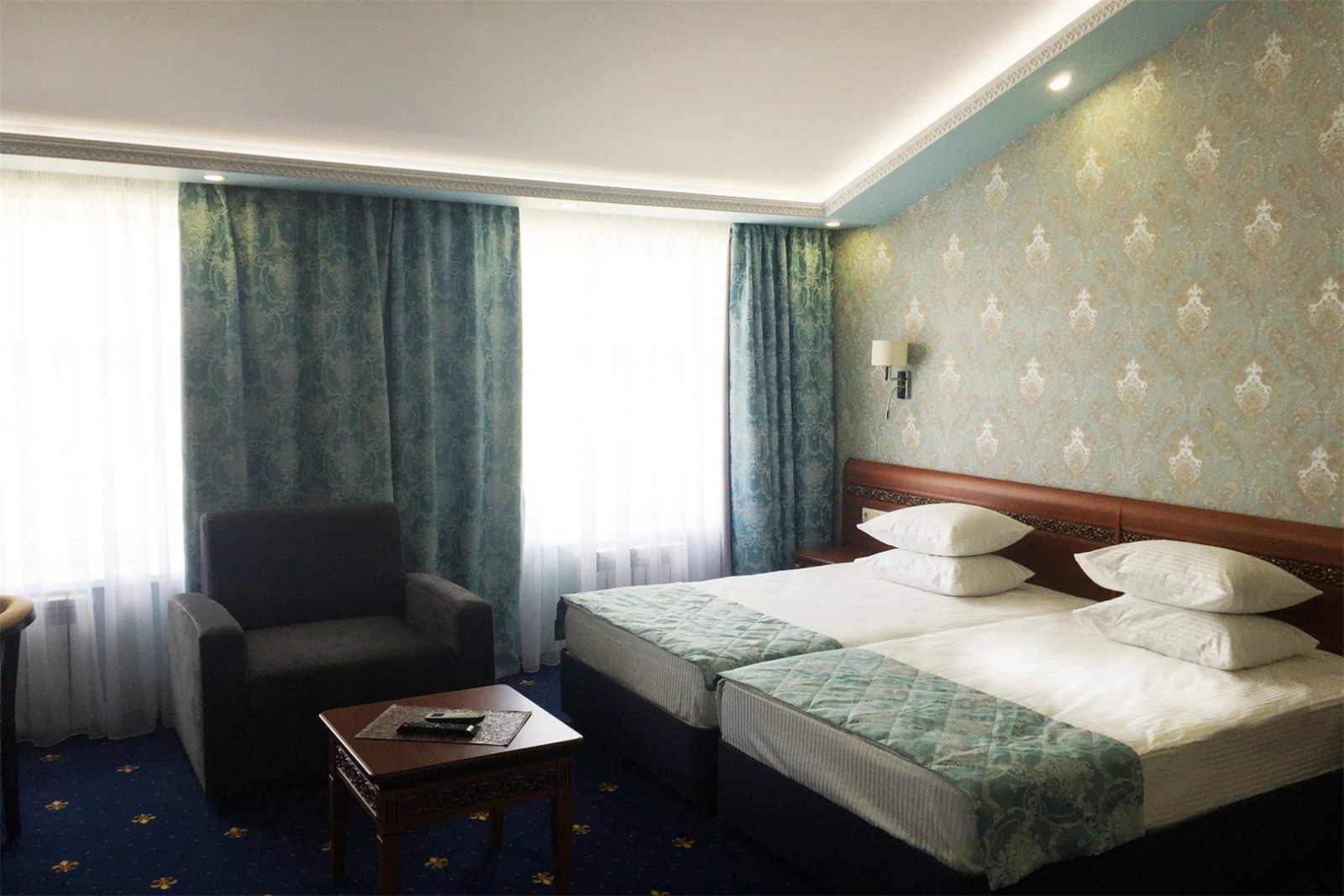 Номерной фонд представлен категориями стандарт, комфорт, люкс с кухней и двухкомнатный. В каждом анатомические матрасы, спутниковое телевидение, телефон, сейф, ЖК телевизор, кондиционер, чайная станция и мини-бар. Ванная комната с феном, гигиеническими принадлежностями, обновленная сантехника и ванна. При необходимости бесплатно даются утюг и гладильная доска.