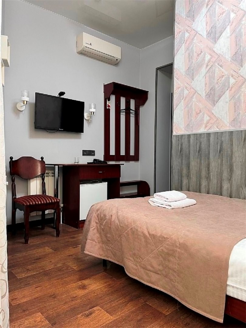 Номер категории "Standard "Single" отлично подходит для комфортного размещения одного человека. В номере имеется: одна полутороспальная кровать, тумба, письменный стол, стул, вешалки для одежды, обувная полка и зеркало. В каждом номере предусмотрены: душ, туалет, фен, комплект полотенец и гигиенические принадлежности. Номер оборудован: ТВ, телефоном, кондиционером, мини-холодильником, чайником и бесплатным Wi-Fi.