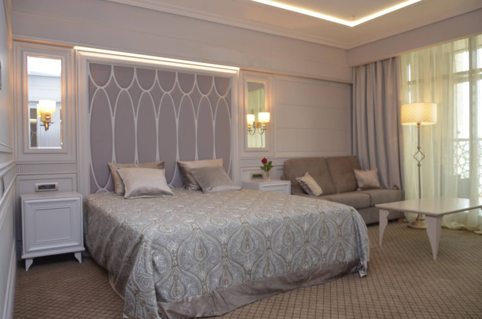 В просторных номерах категории "Стандарт с видом на Волгу" все продумано до мелочей. Элегантный интерьер, инновационные материалы и современные технологии призваны сделать отдых максимально комфортным. 80% номеров категории Стандарт являются смежными с соседним номером. В каждом номере есть балкон с ротанговой мебелью. - площадь номера от 43м2 - 85 номеров - кабельное телевидение - центральная система кондиционирования - станция для приготовления чая и кофе - минибар (оплачивается отдельно) - раскладной двухместный диван - банные принадлежности и аксессуары - кровать размером 180*220 см - гардеробный шкаф - стол с письменными принадлежностями - телефон - сейф - кофейный столик - ванная комната - сервис в номерах 24/7 -wi-fi