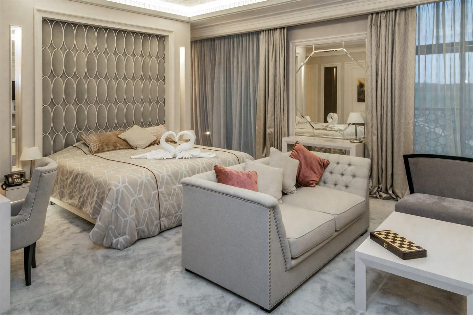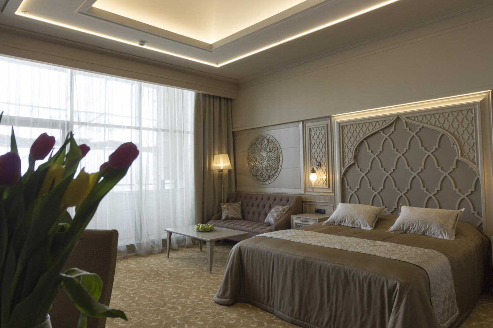 Изысканный интерьер номера Люкс c панорамным видом на Волгу приглашает прикоснуться к современной роскоши в лучших традициях Востока. Пространство номера удачно сочетает в себе гардеробную, оборудованную рабочую зону и удобное место для отдыха. Ванная комната с повышенным уровнем комфорта и широкий выбор напитков из собственного бара подчеркнет достоинство этого номера. Предоставляется ежедневный трёхчасовой доступ в термальную зону СПА. В каждом номере есть балкон с ротанговой мебелью. - площадь номера от 78м2 -18 номеров - кабельное телевидение - центральная система кондиционирования - станция для приготовления чая и кофе - минибар (оплачивается отдельно) - диван - банные принадлежности и аксессуары - кровать размером 200*220 см - гардеробный шкаф - стол с письменными принадлежностями - телефон - сейф - кофейный столик - ванная комната - сервис в номерах 24/7 -wi-fi
