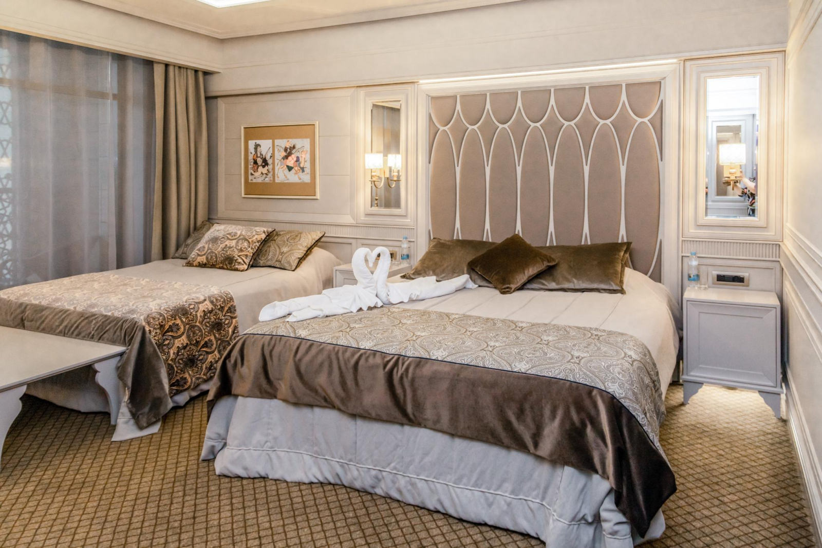 В стандартных категориях с 2 раздельными кроватями с видом на Волгу все продумано до мелочей. Элегантный интерьер, инновационные материалы и современные технологии призваны сделать отдых максимально комфортным. 80% номеров категории "стандарт" являются смежными с соседним номером. В каждом номере есть балкон с ротанговой мебелью. - площадь номера от 43м2 - 5 номеров с 2 раздельными кроватями с видом на Волгу - кабельное телевидение - центральная система кондиционирования - станция для приготовления чая и кофе - минибар (оплачивается отдельно)