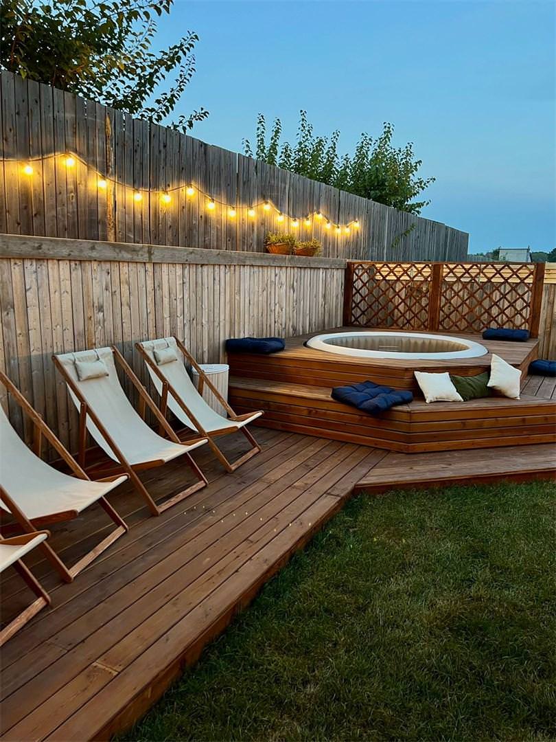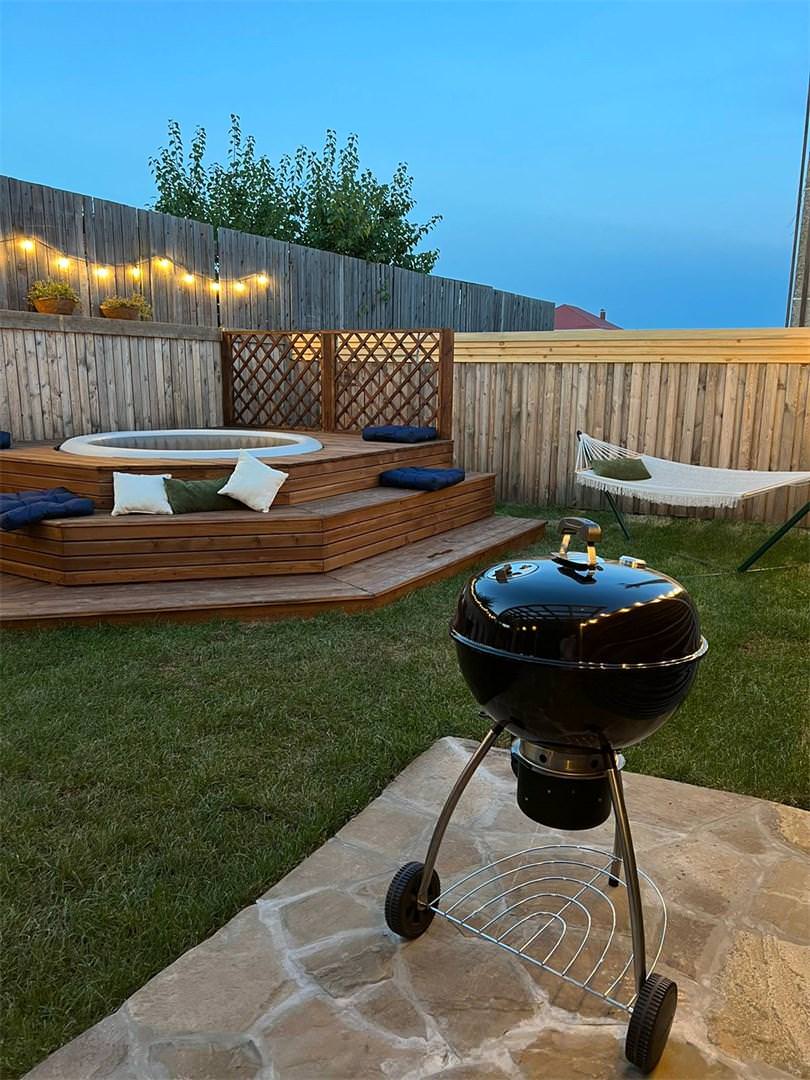 Двухэтажный барнхаус с дизайнерским интерьером и просторной террасой, где расположен гриль и собственный бассейн.