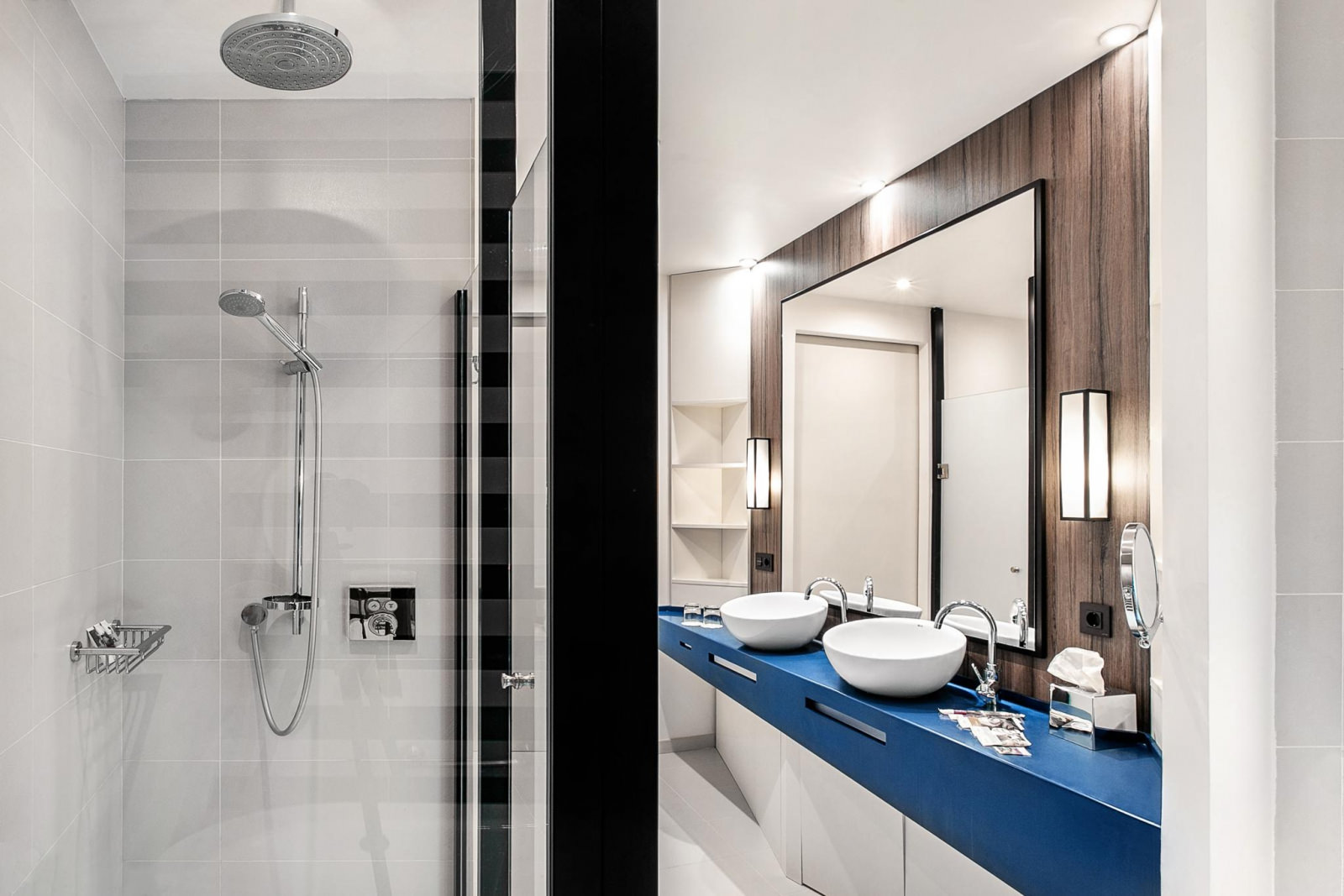 Двухкомнатный номер. Индивидуальный температурный контроль, Wi-Fi, TV 42, спутниковое ТВ, сейф, фен, кофе-машина Nespresso, тропический душ, банные принадлежности, халат, тапочки, минибар с ежедневным пополнением