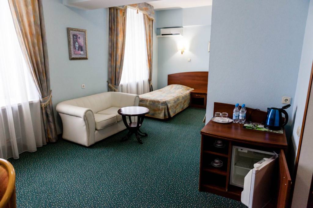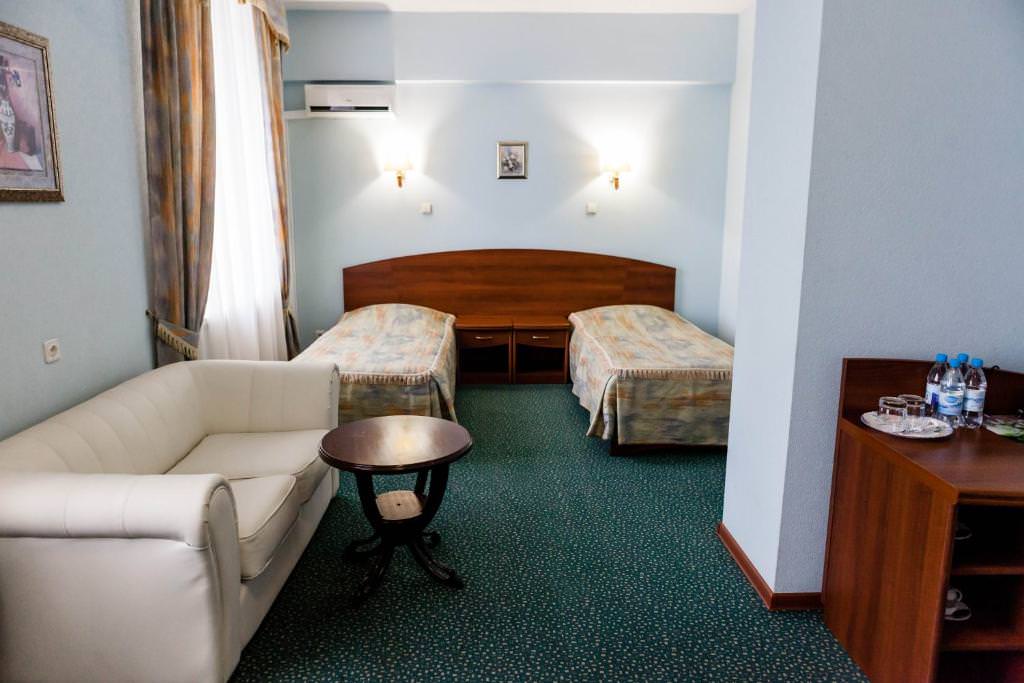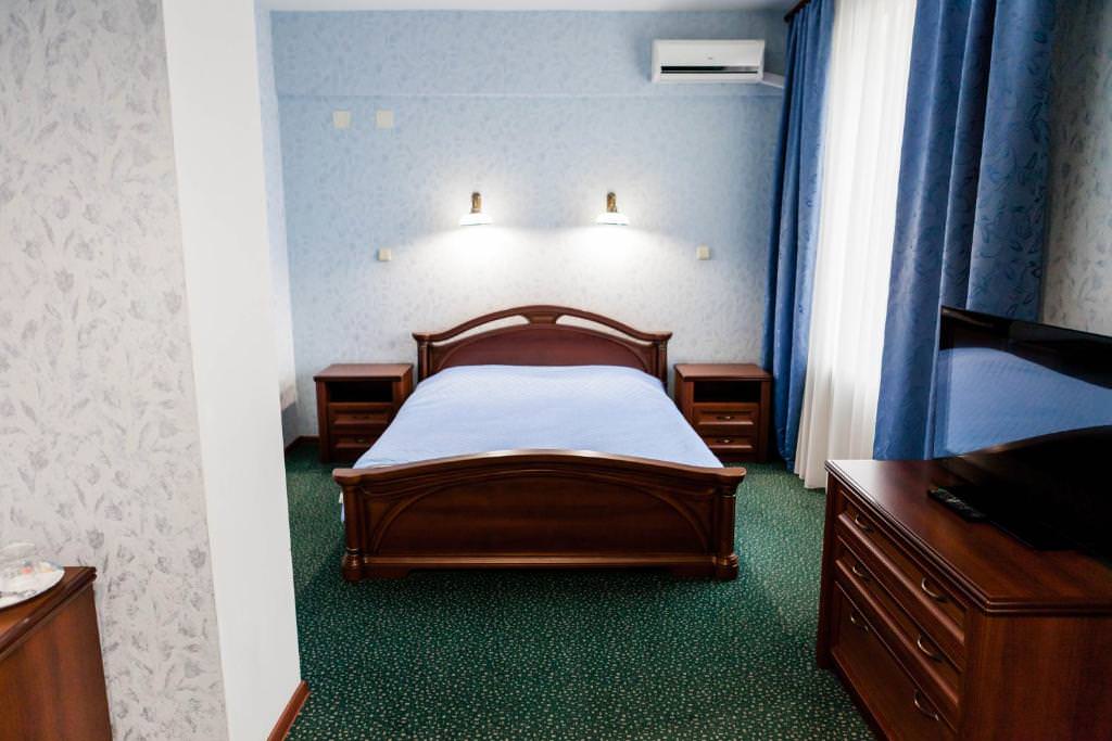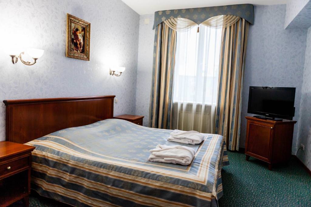 Номерной фонд включает стандартные номера с полутораспальной кроватью, джуниор сюит с king-size кроватью или односпальными и представительский люкс. Каждый оснащен: индивидуальной сплит-системой, чайной станцией, телевизором, wi-fi, холодильником. Санузлы с ванной или душевой оборудованы полотенцесушителями и феном, все кровати с ортопедическими матрасами.