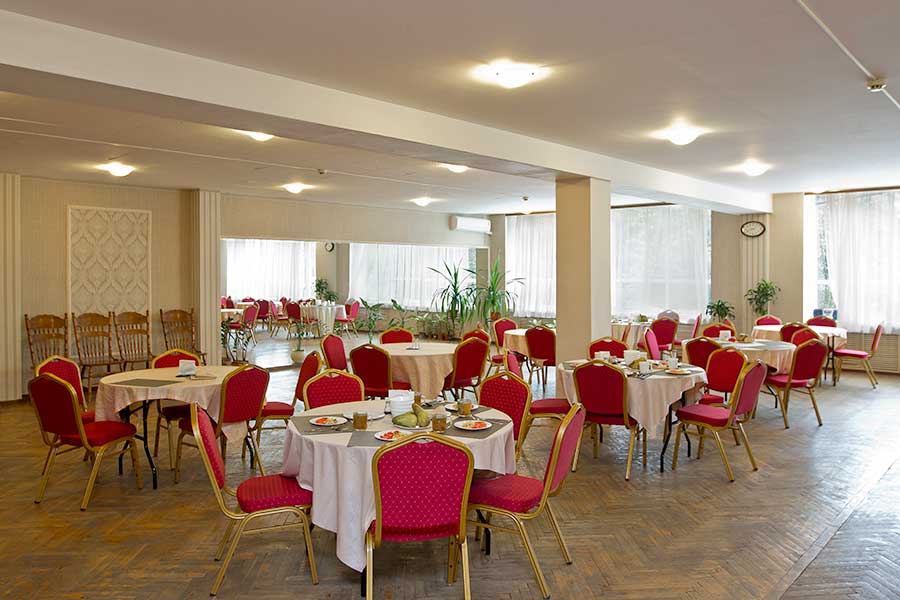 В санатории есть ресторан с разнообразными свежими блюдами, также есть обеденный зал с приятной атмосферой и широким выбором блюд.