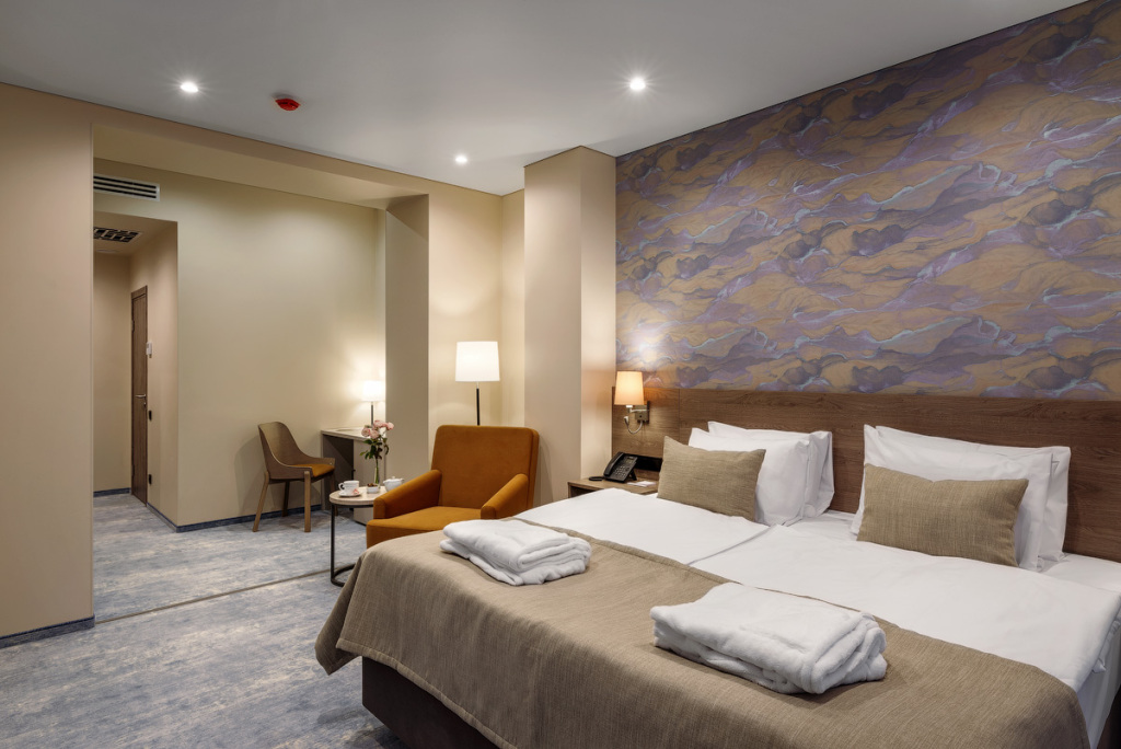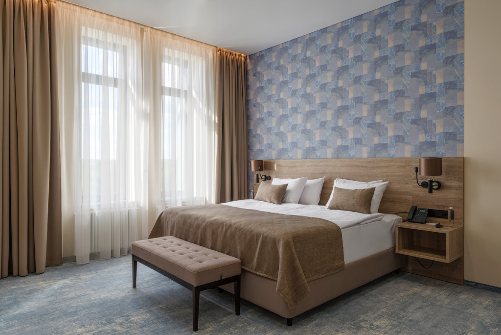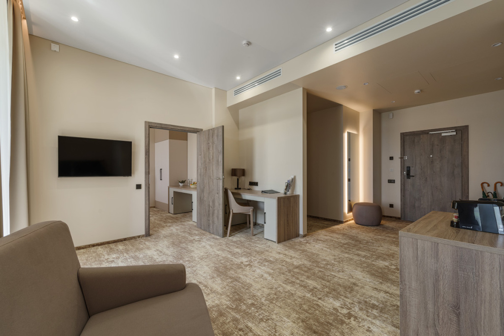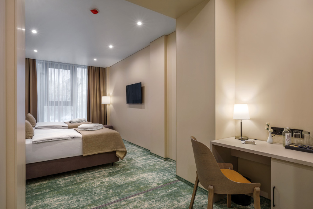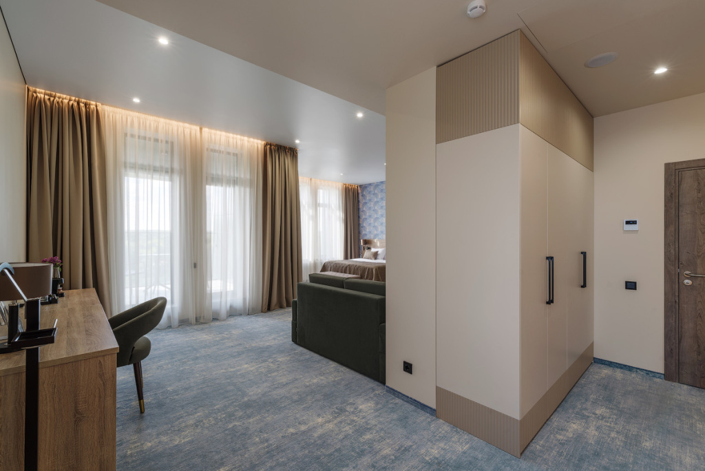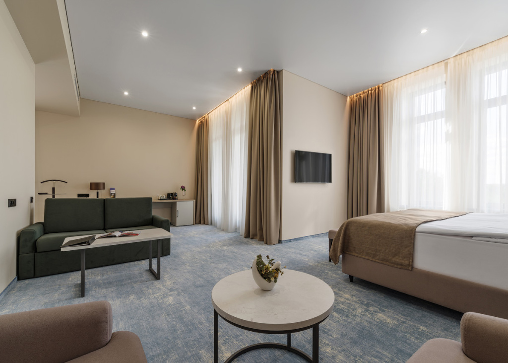 Номерной фонд санатория обладает комфортными и просторными номерами, оформленными в натуральных светлых оттенках. Номера оборудованы всем необходимым для проживания.