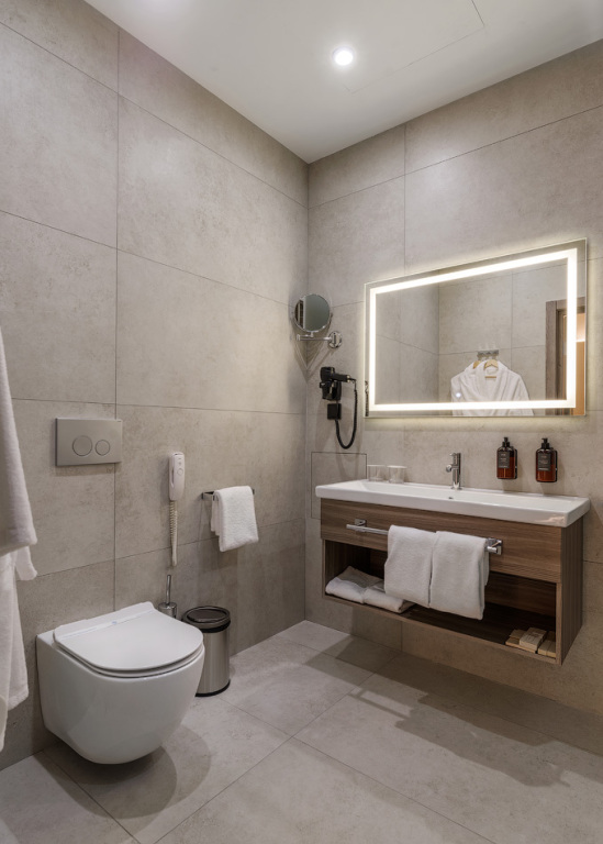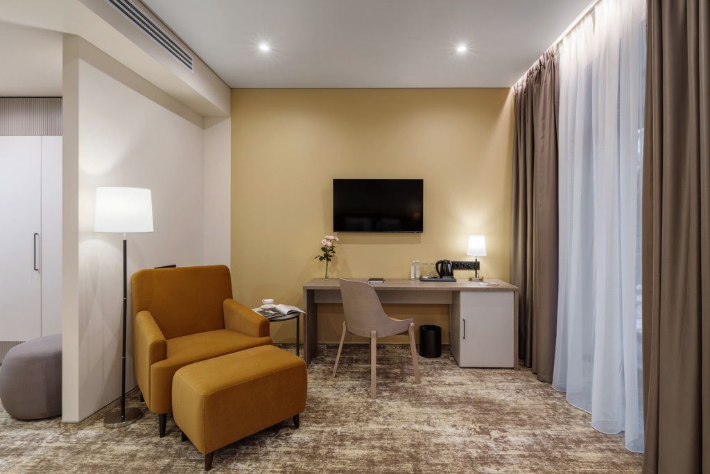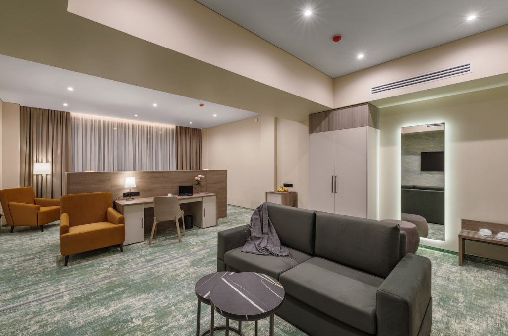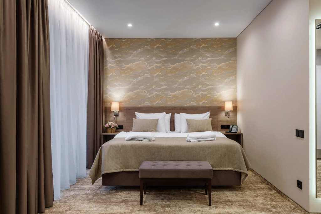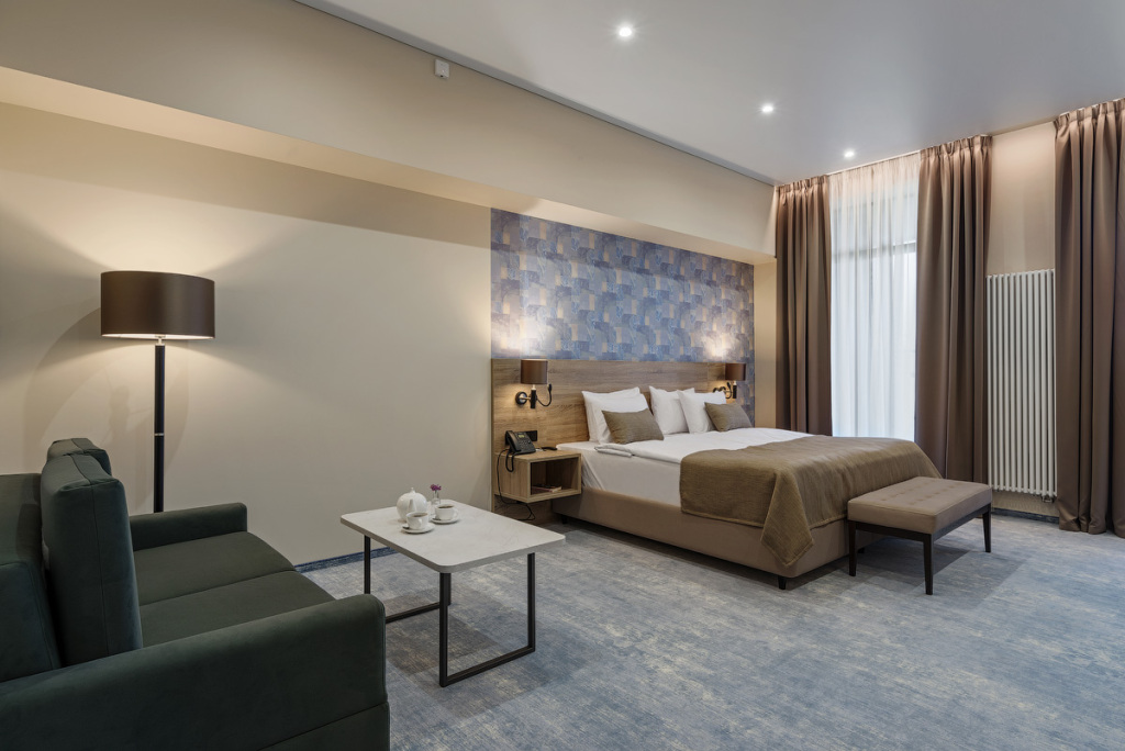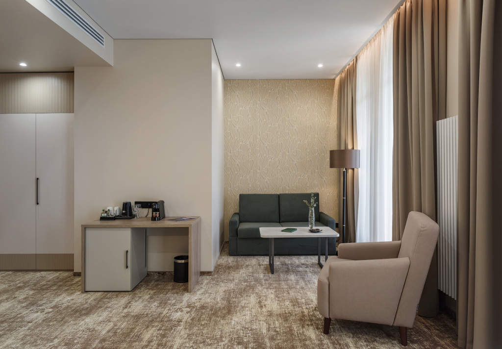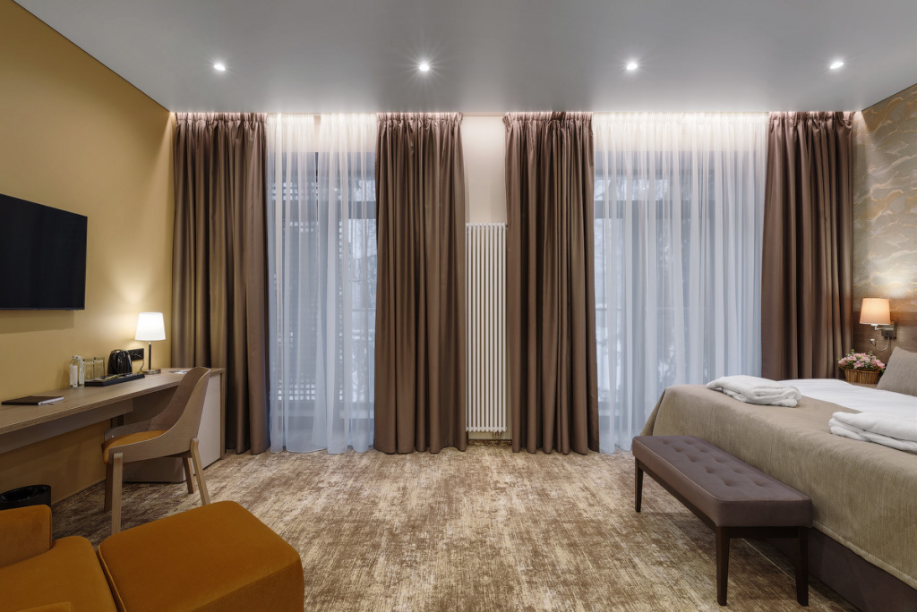 Номерной фонд санатория обладает комфортными и просторными номерами, оформленными в натуральных светлых оттенках. Номера оборудованы всем необходимым для проживания.