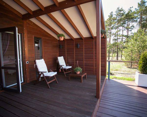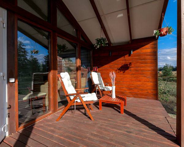 Уютный номер с большой двухспальной кроватью, с возможностью размещения дополнительного места. Собственная мебелированная терраса. Туалет и душевая в номере.