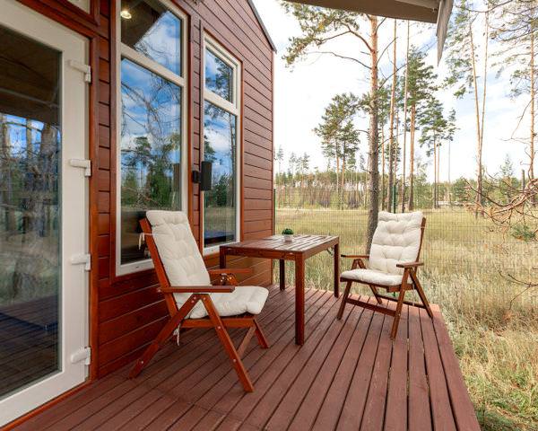 Домик поодаль в лесу в стиле Шале Модерн с панорамными окнами, кухней, спальной комнатой, уютной гостиной с камином, ванной комнатой и всеми удобствами. Единение с природой добавляет огромная крытая терраса, на которой можно накрыть стол или уютно посидеть под пледом слушая звуки природы. Дом оборудован кондиционером, к террасе примыкает мангальная зона. В случае, если Вы хотите побыть на природе большой компанией, возможно объединение с аналогичным домом «На опушке 1» для размещения в общей сложности до 12 человек.