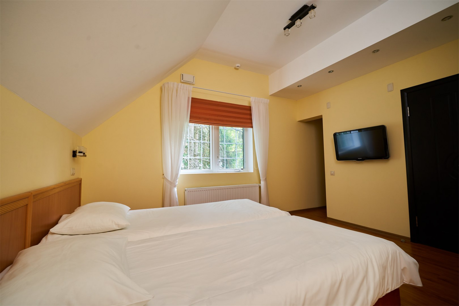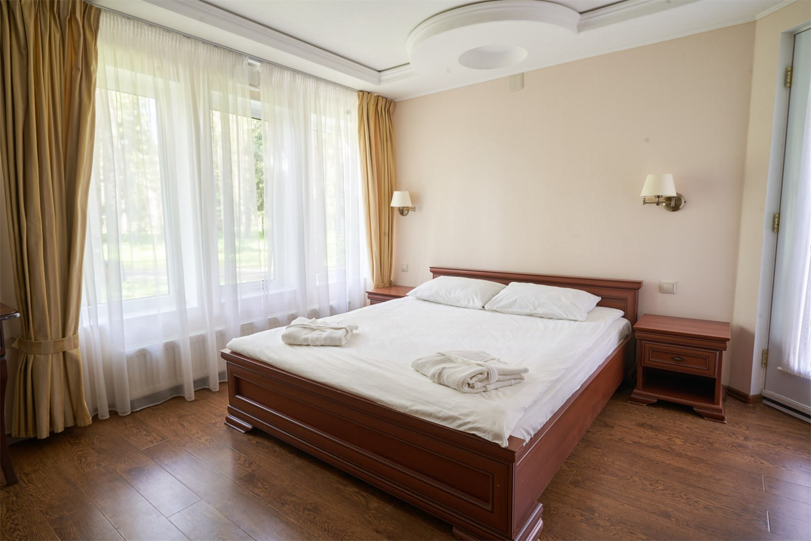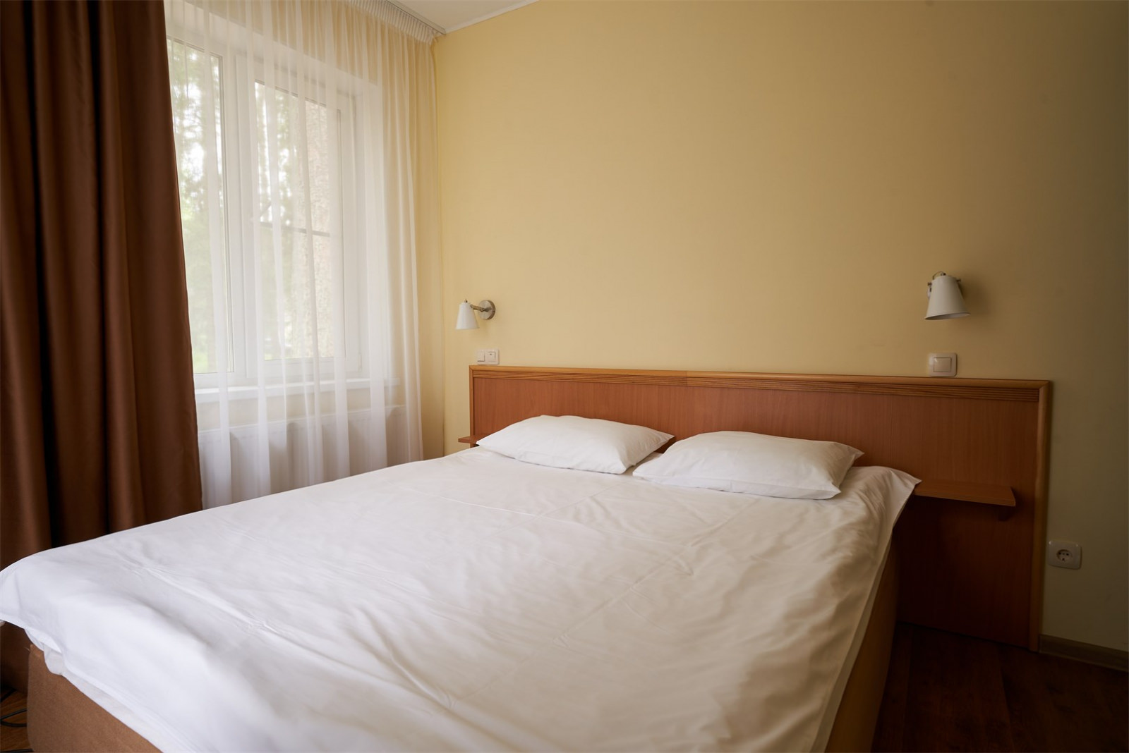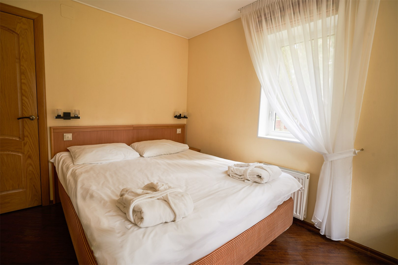 Номер очень уютный и оснащен удобной мебелью и телевизором, что сделает проживание двух гостей парк-отеля комфортным.