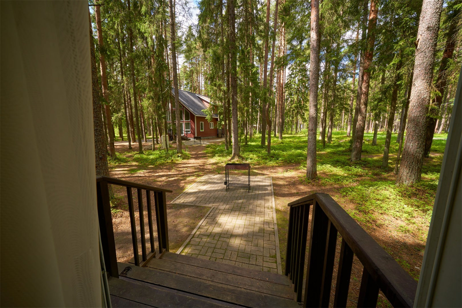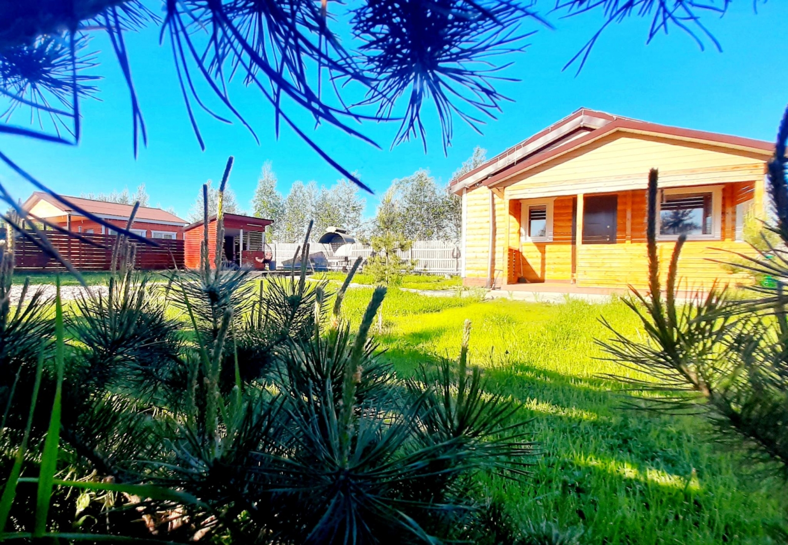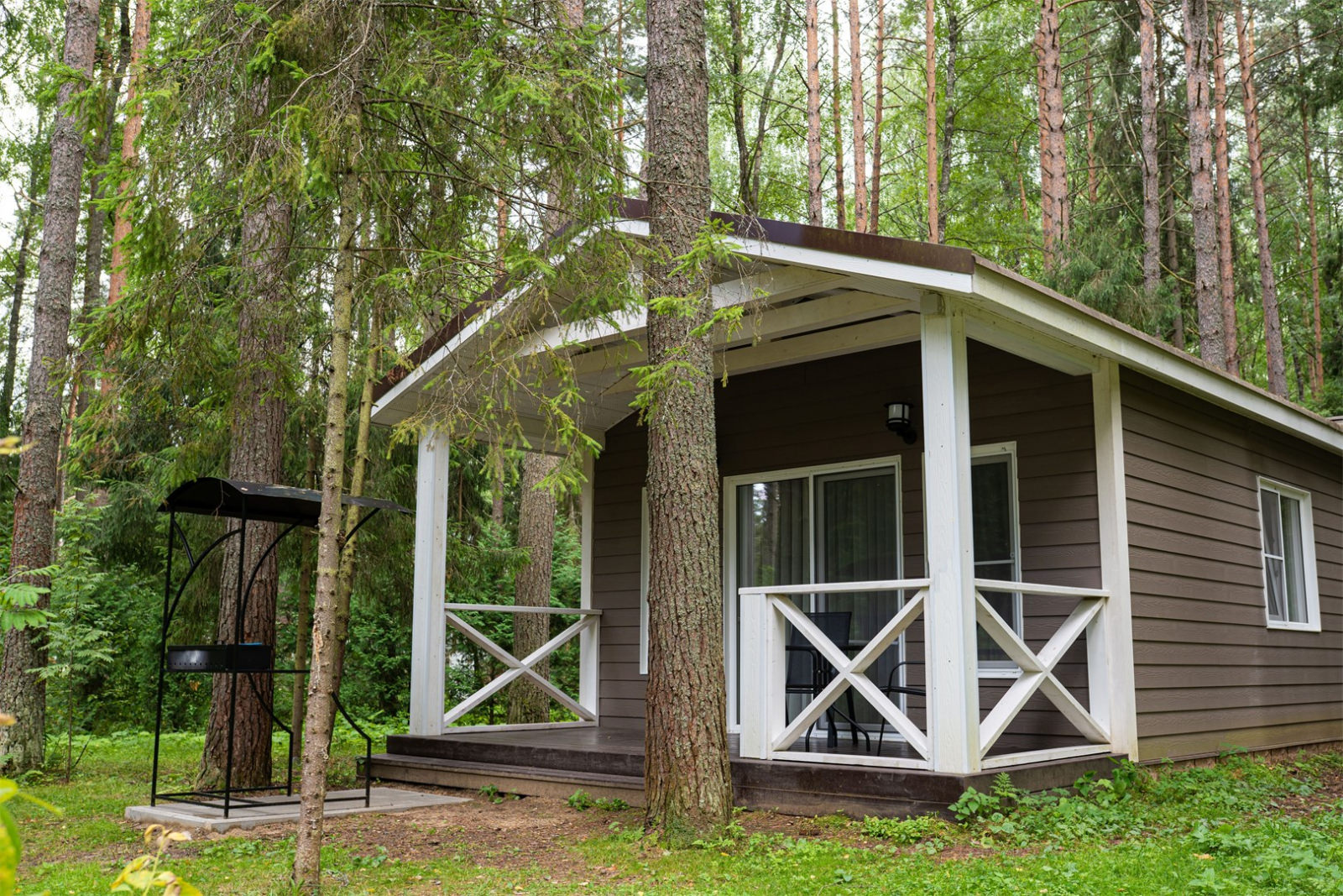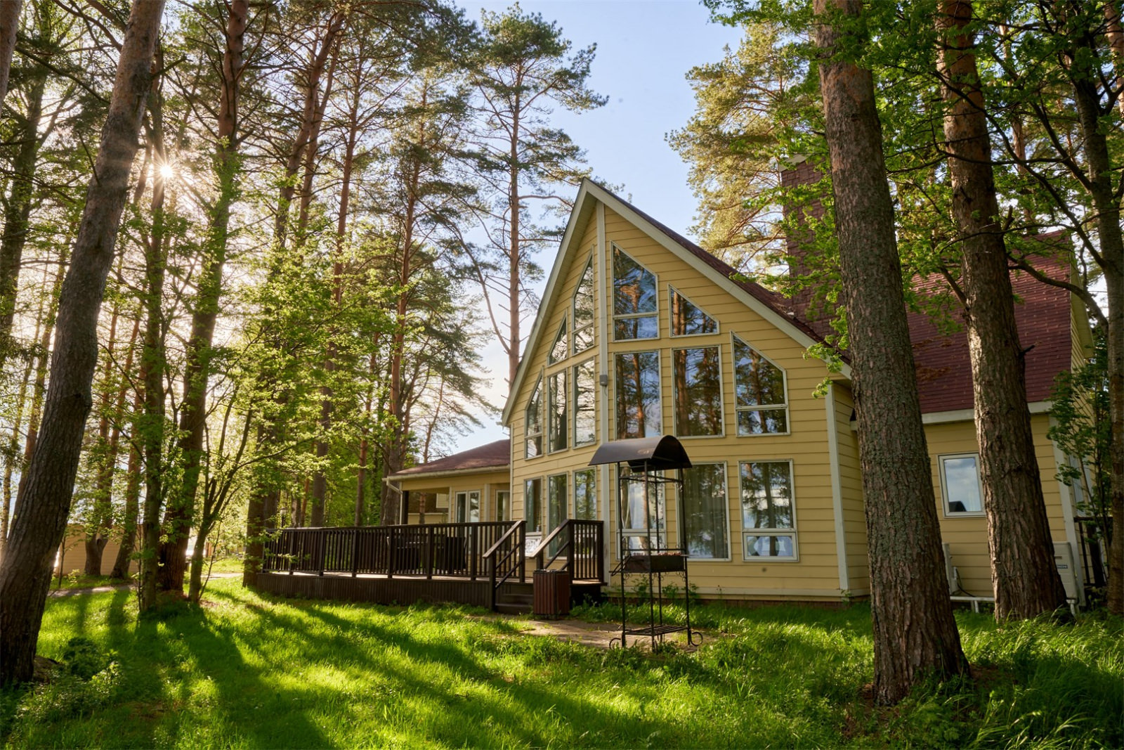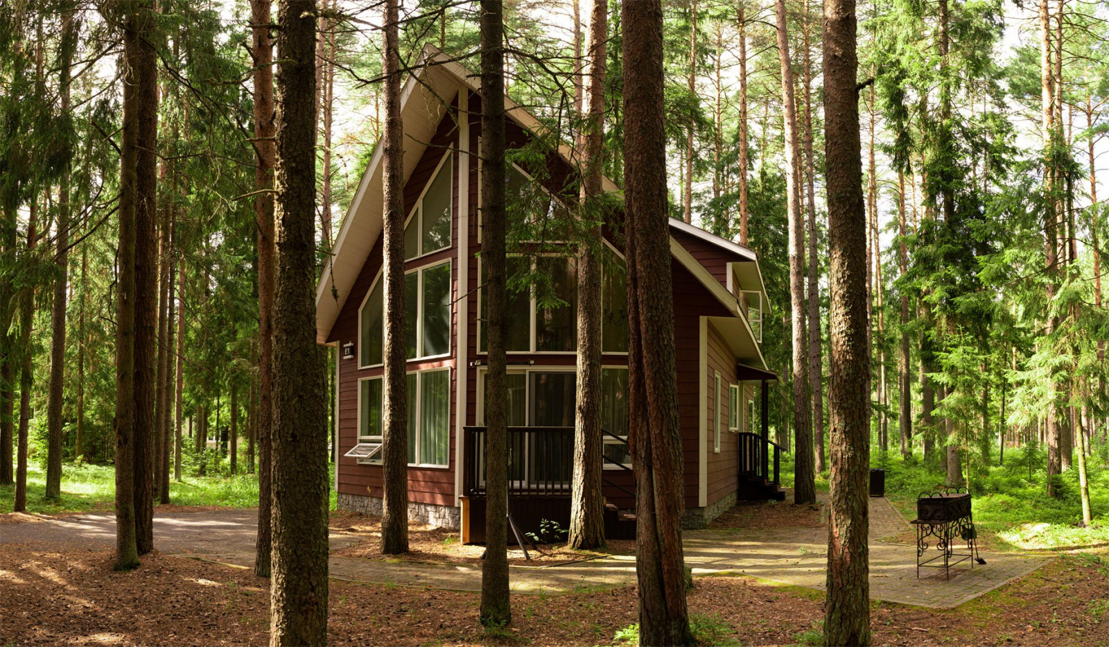 Номер представляет собой 1-этажный дом с площадью 114 кв. метров, и расположен он в сосновом лесу.