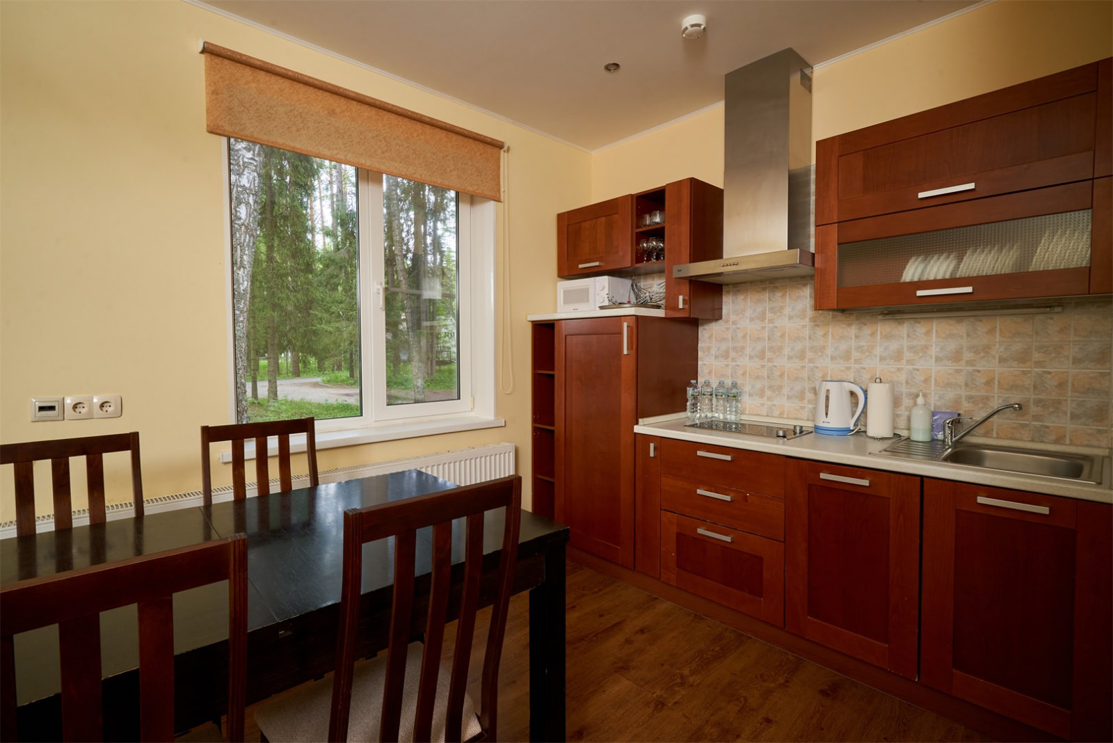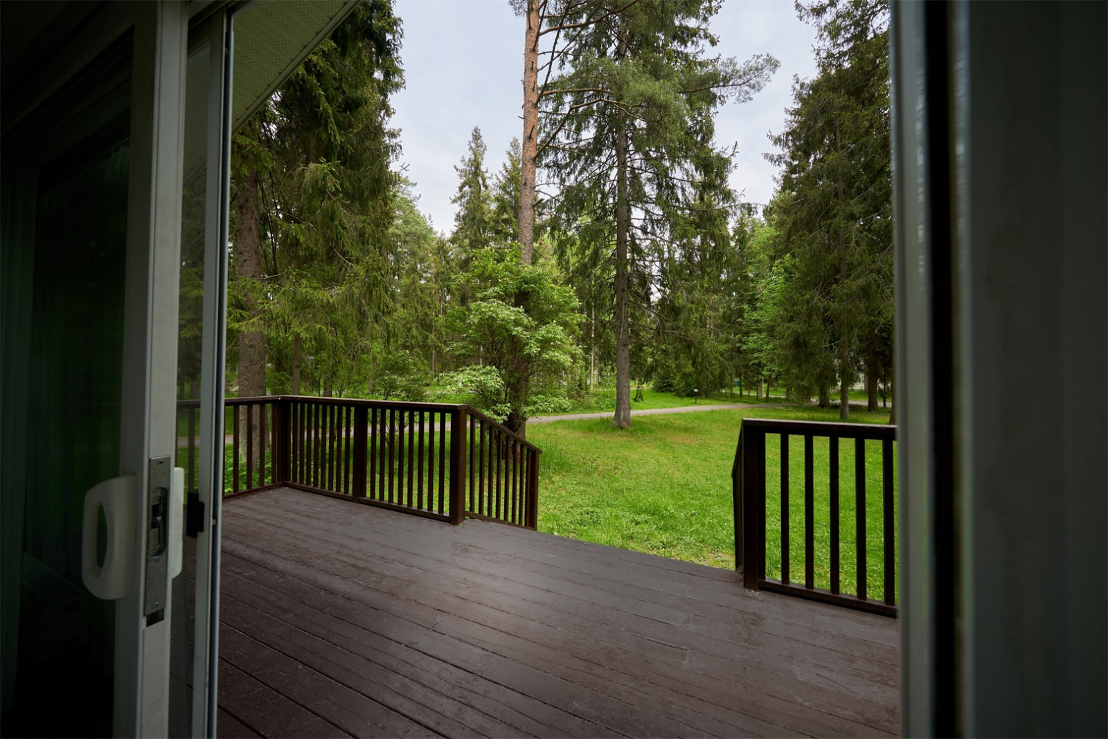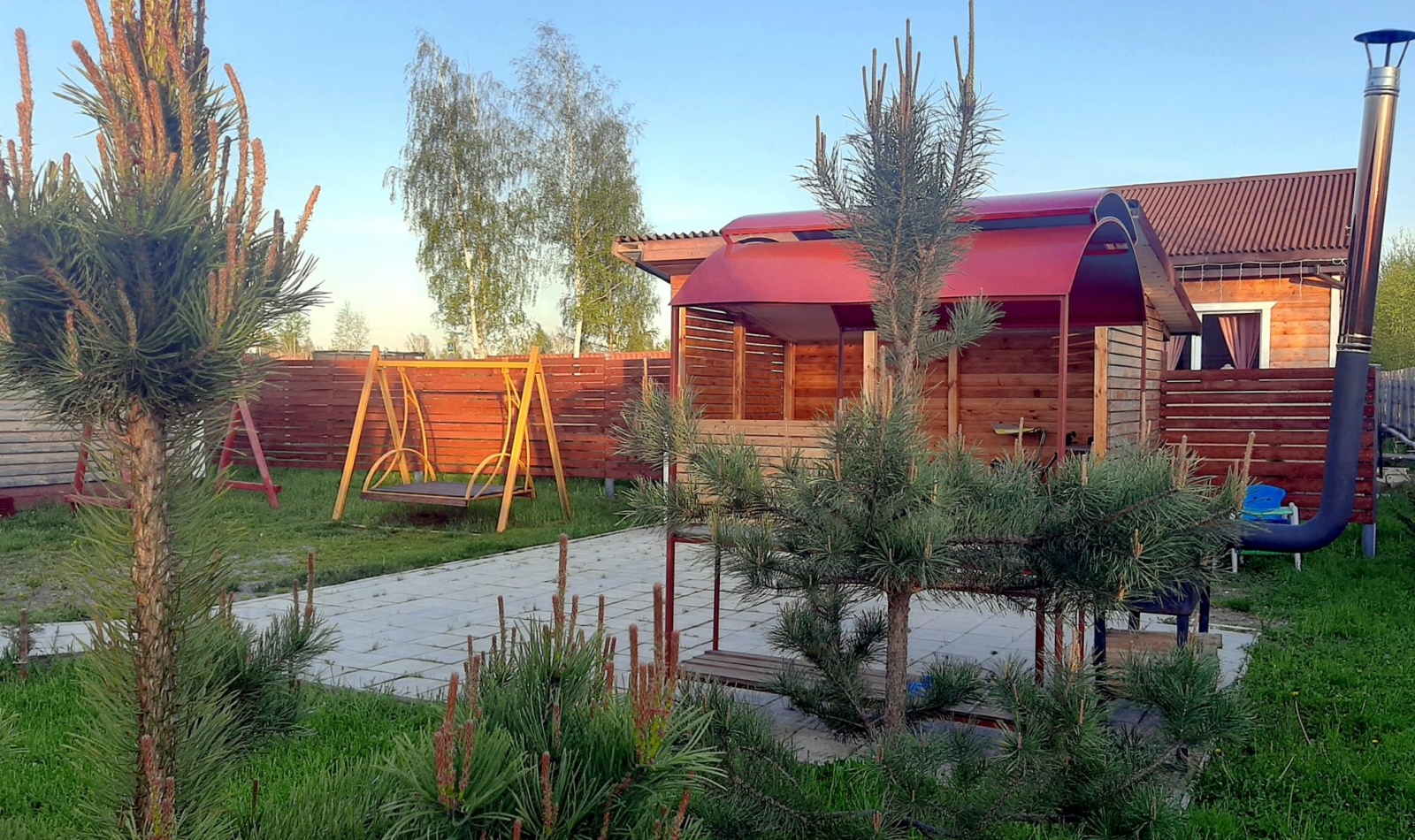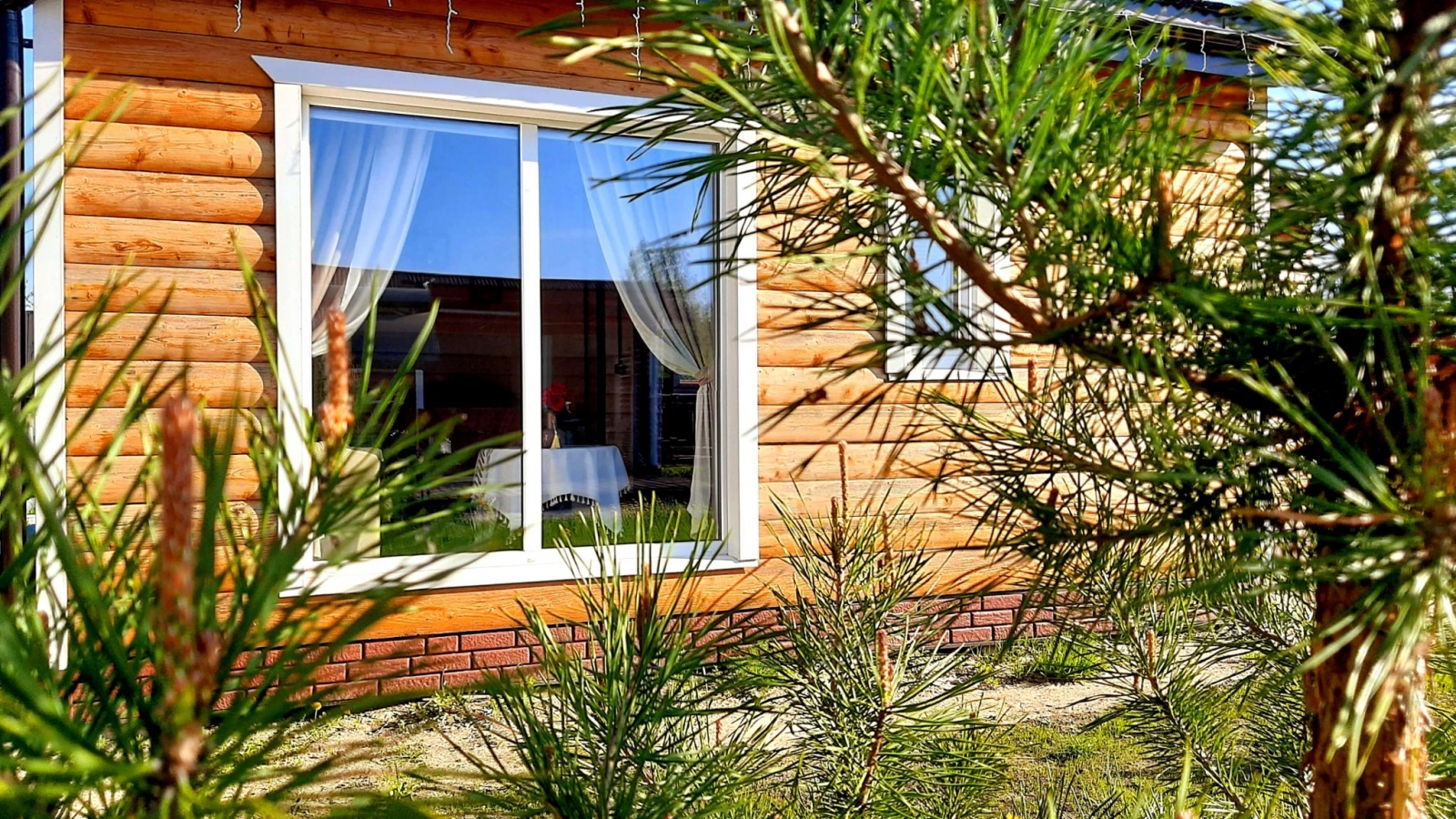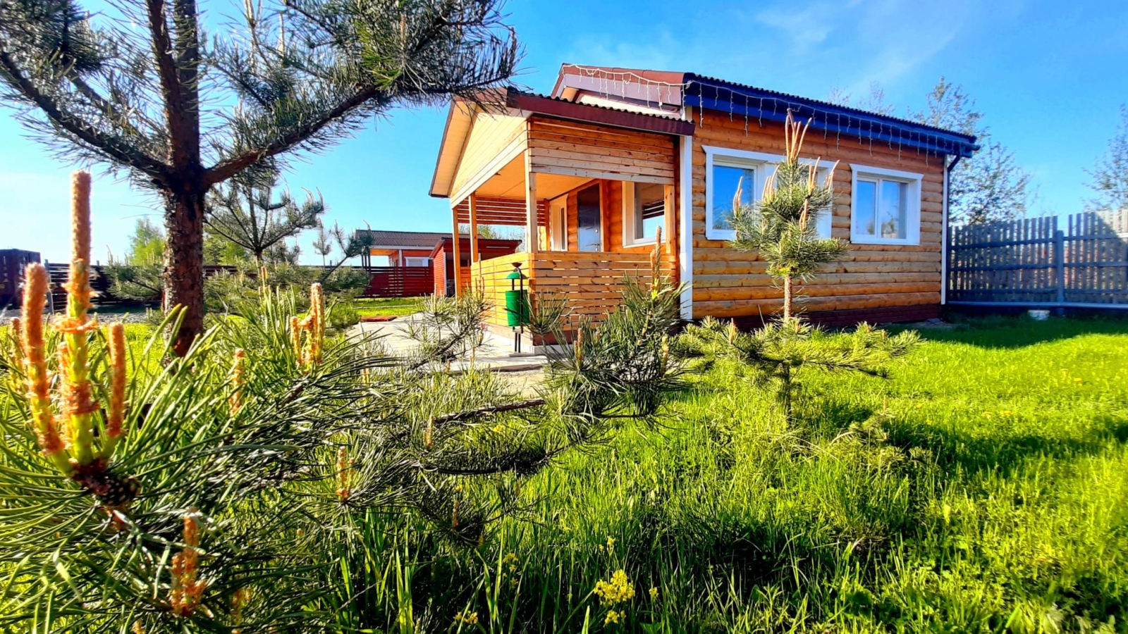 Номер представляет собой 1-этажный дом с площадью 114 кв. метров, и расположен он в сосновом лесу.
