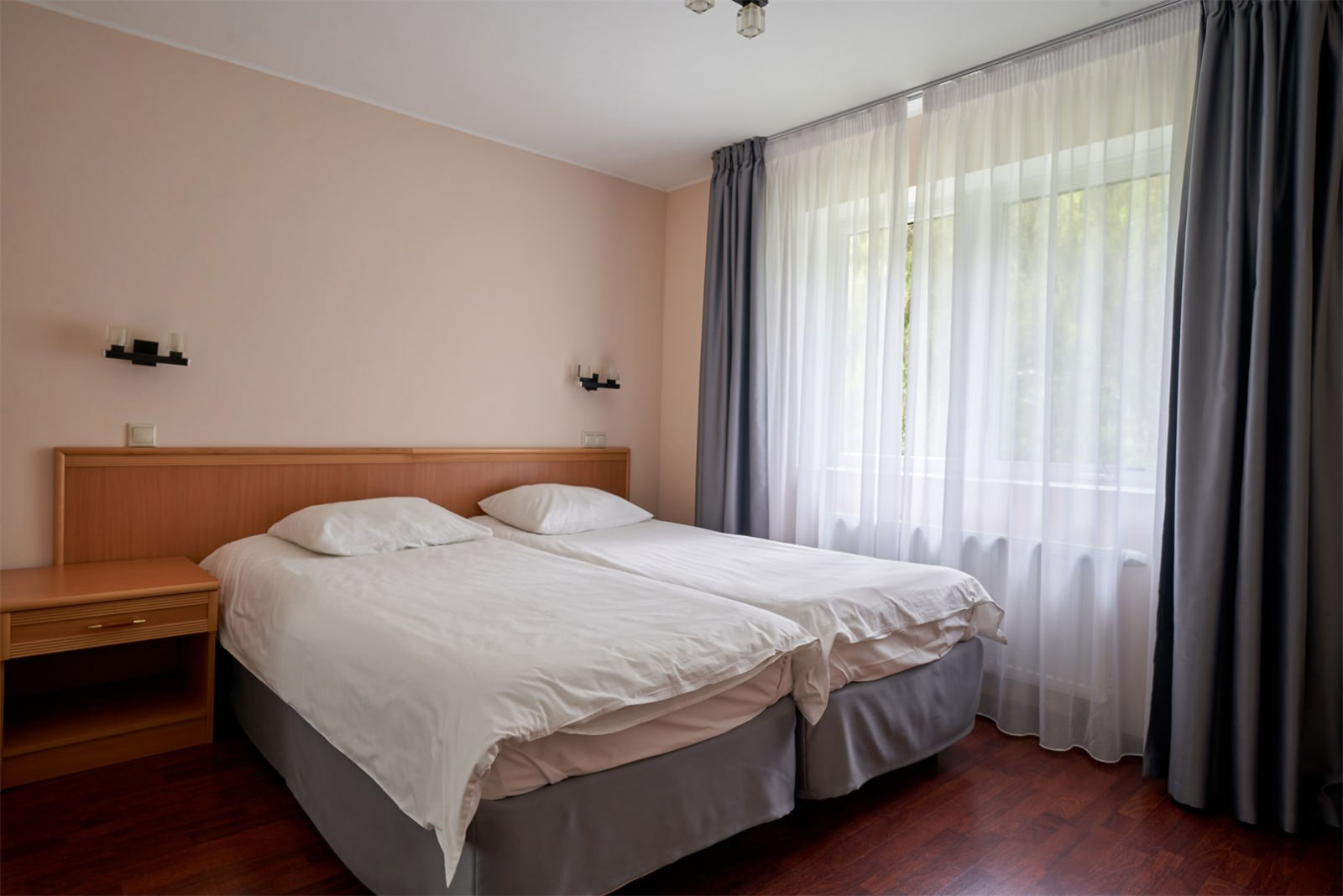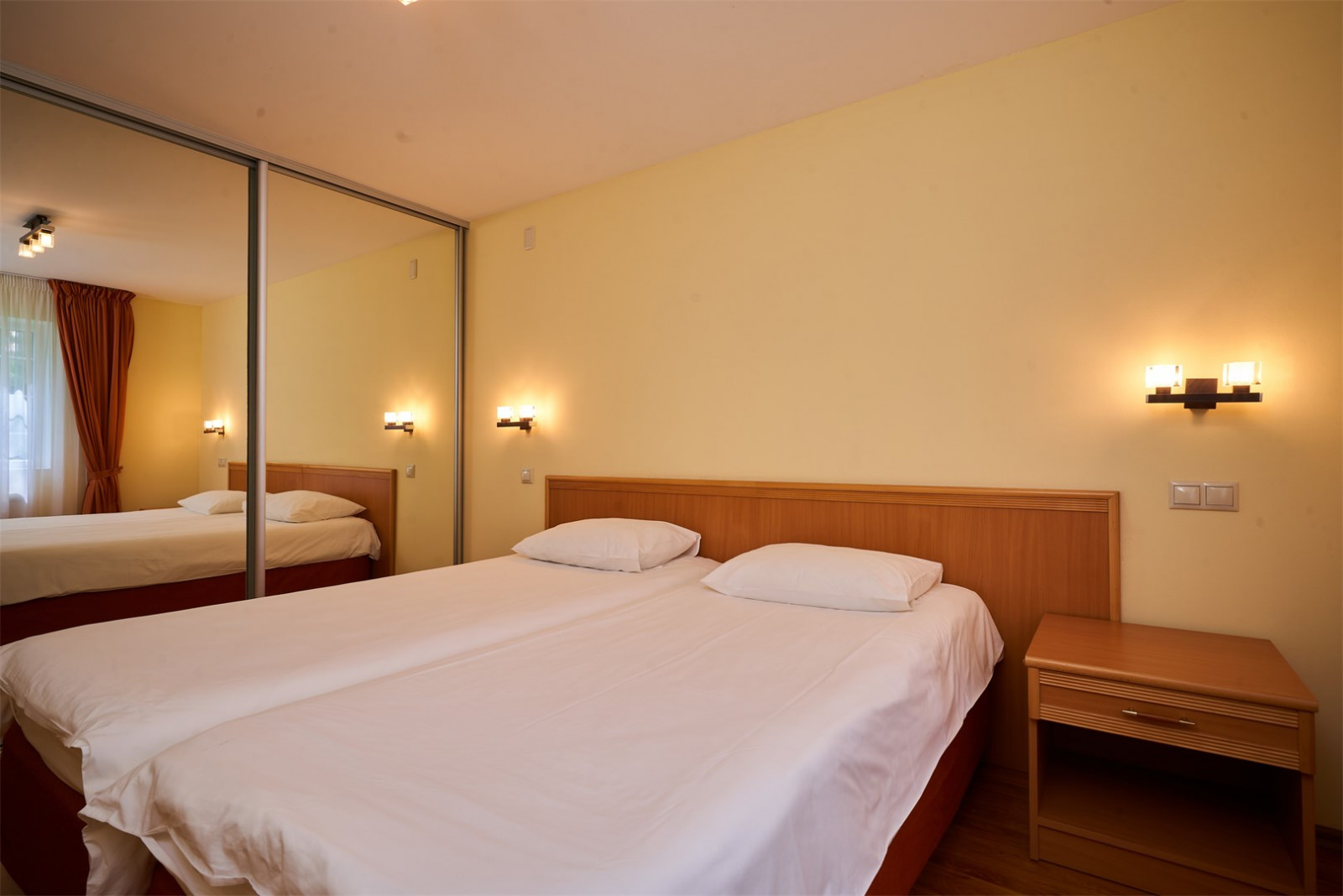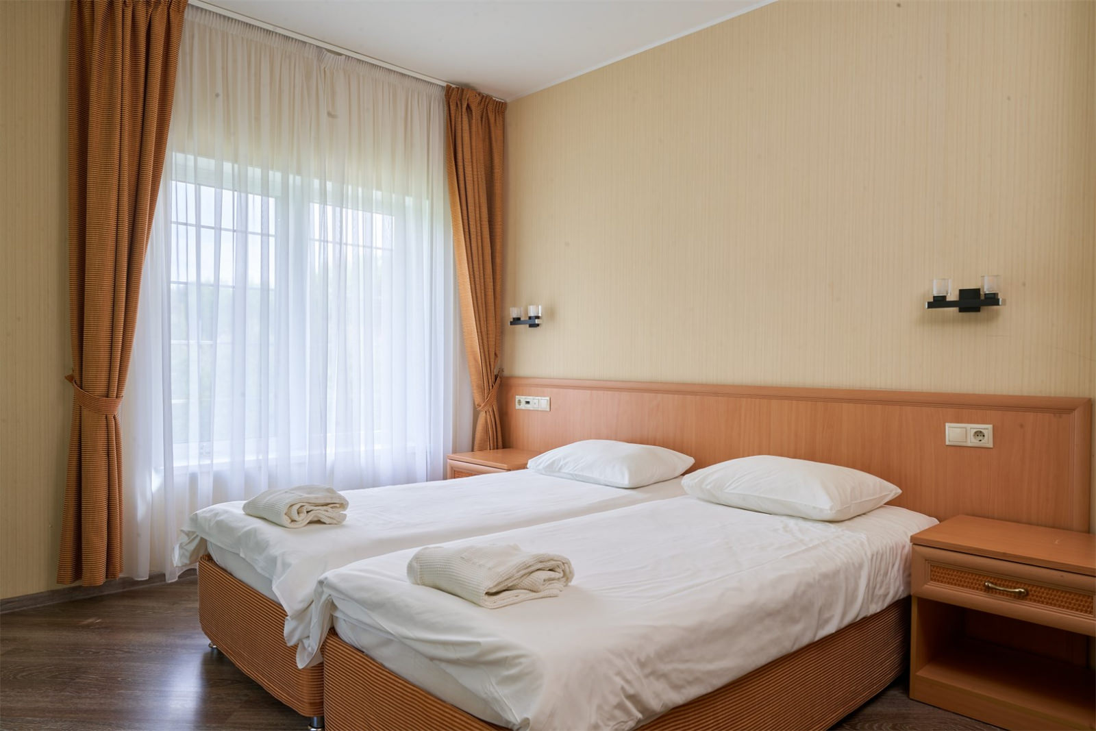 Уютный номер, идеальный для проведения незабываемого отдыха вдвоем. Номер площадью в 24 кв. метра оформлен в классическом стиле, который создает атмосферу теплоты и комфорта. В номере есть все необходимое: 2 односпальные кровати, телевизор, удобная мебель и, конечно же, душевая кабина в отдельной ванной комнате.