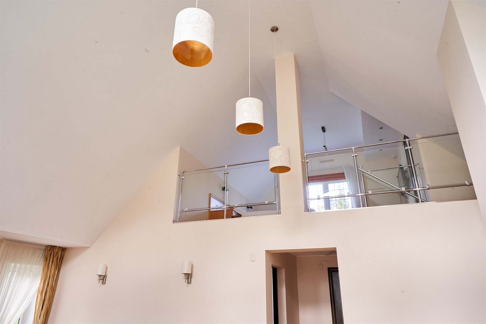 Дом имеет панорамное остекление, просторную гостиную и оборудован камином.