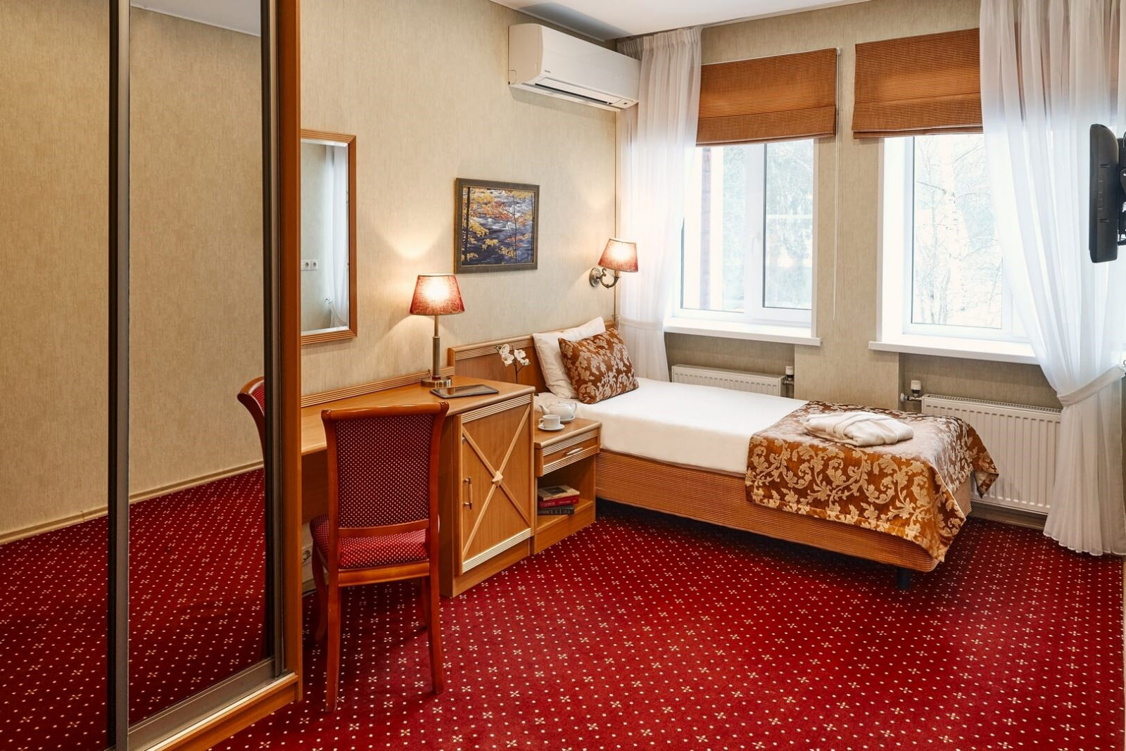 Классический дизайн номера и его приятное оформление создают внутри номера теплую атмосферу домашнего уюта.