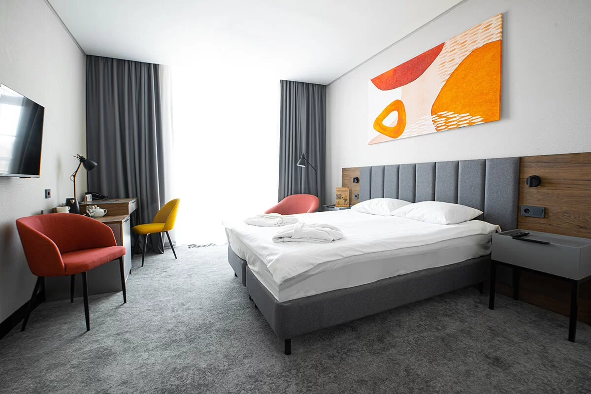 Этот тип номера был создан для идеального проживания двух гостей отеля, обеспечивая им комфорт и уют. Номер выполнен в классическом стиле и создает атмосферу, где прекрасно сочетаются эстетика и комфорт.