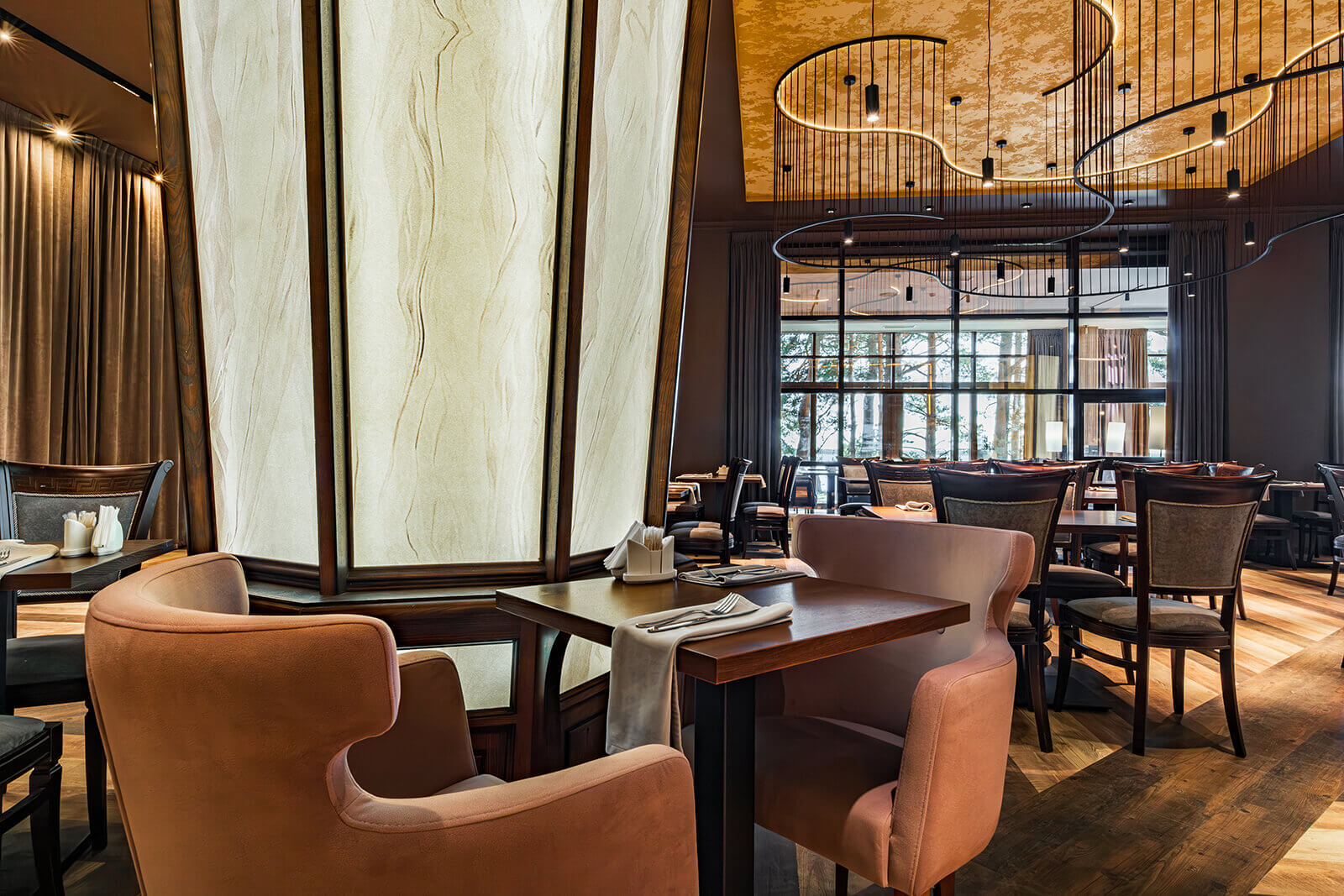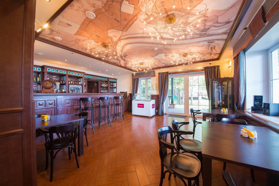 Питаться гости отеля смогут в основном ресторане, который расположен в доме на воде, в таверне с уютной атмосферой и оформлением в старо-английском стиле, а также в элегантном ресторане центральной части парка. В SPA-центре отеля его гости смогут отдохнуть и расслабиться в русской бане и финской сауне, а также у них будет возможность посетить массажный кабинет.