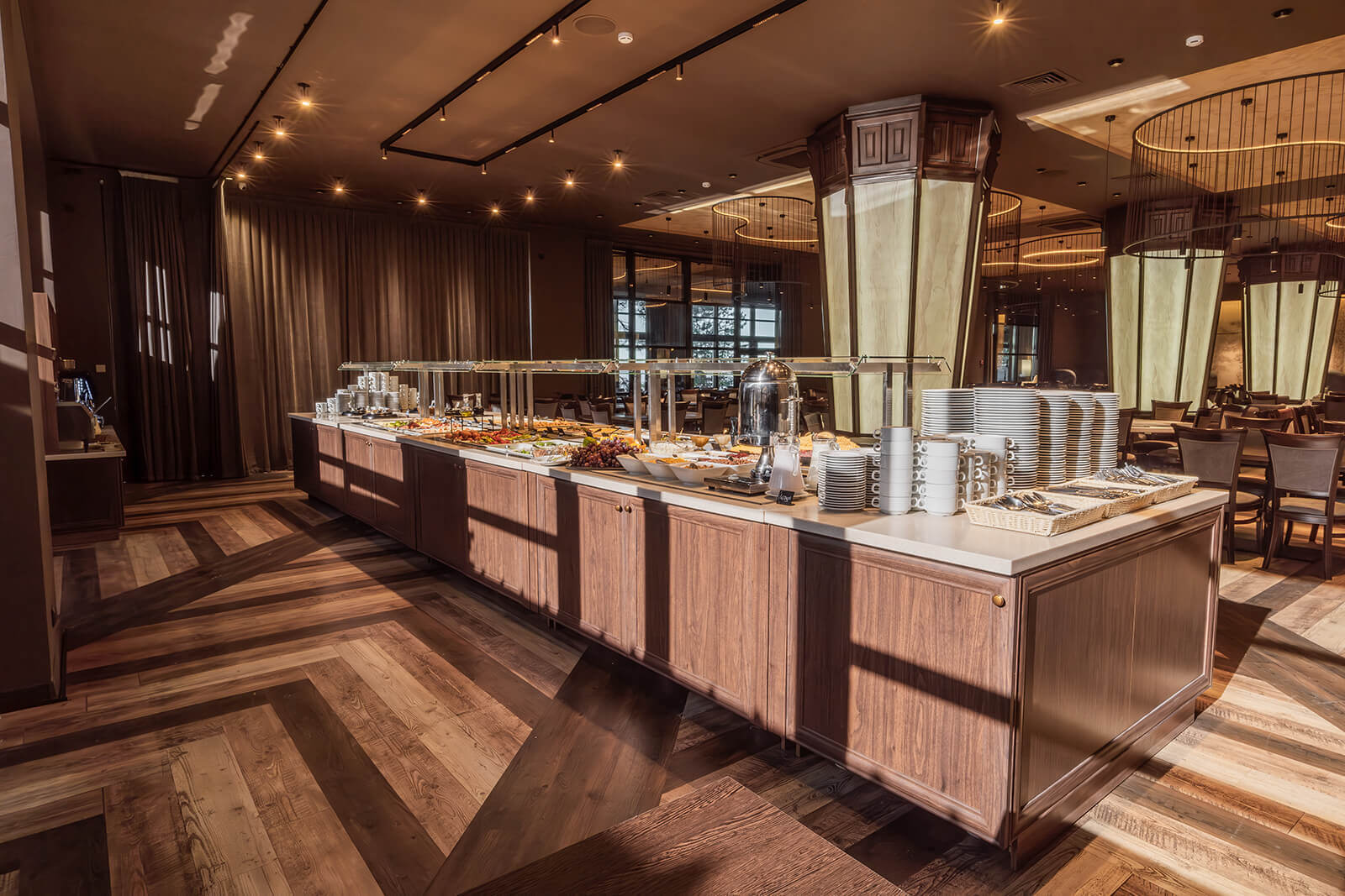 Питаться гости парк-отеля «Бухта Коприно» смогут в основном ресторане, который расположен в доме на воде, в элегантном ресторане с приятной атмосферой, находящемся в центральной части парка, а также в замечательной таверне с уютной атмосферой и оформлением в старо-английском стиле и отлично подходит для семейной трапезы.