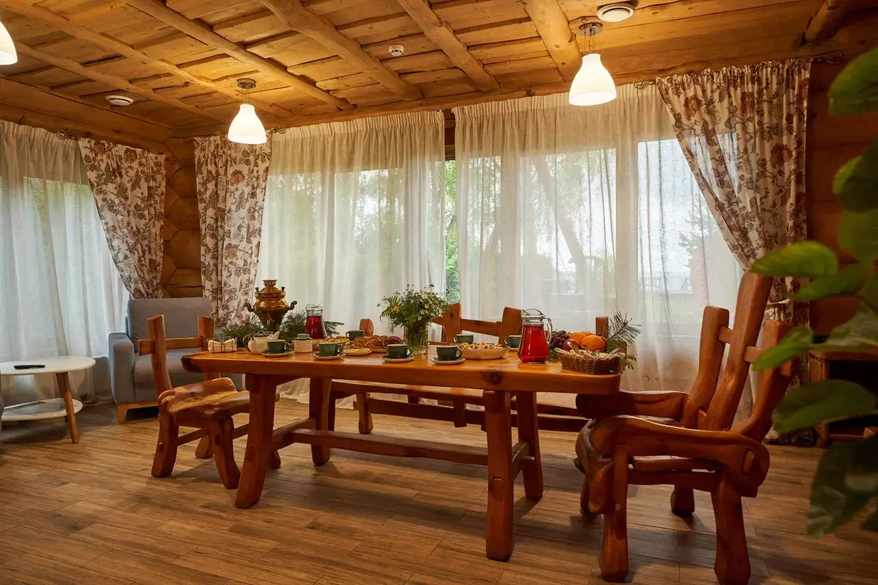 Коттедж вмещает 6-8 человек, что замечательно подойдет для проживания небольшой семьи или компании, имеет просторную и светлую гостиную.